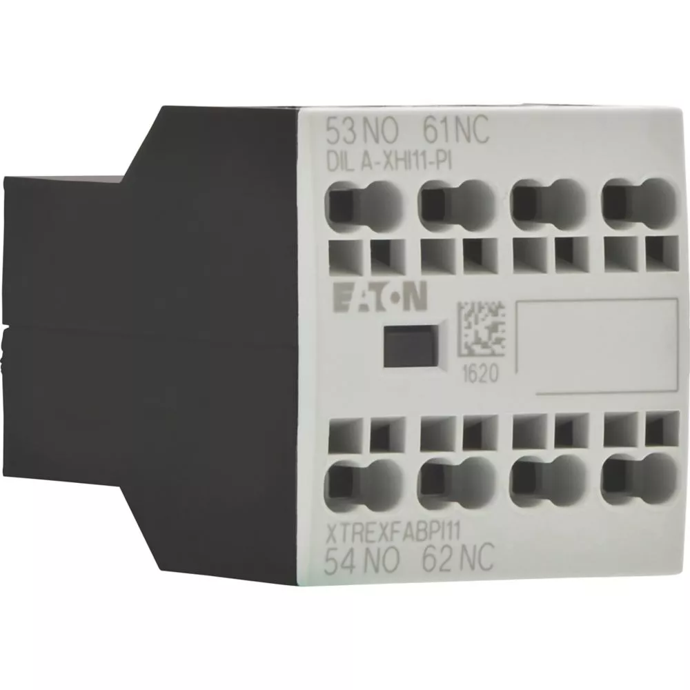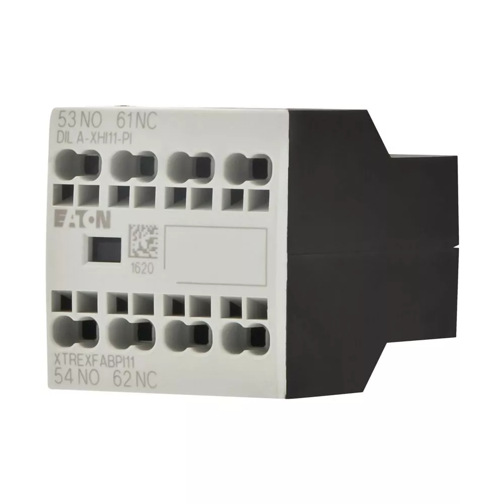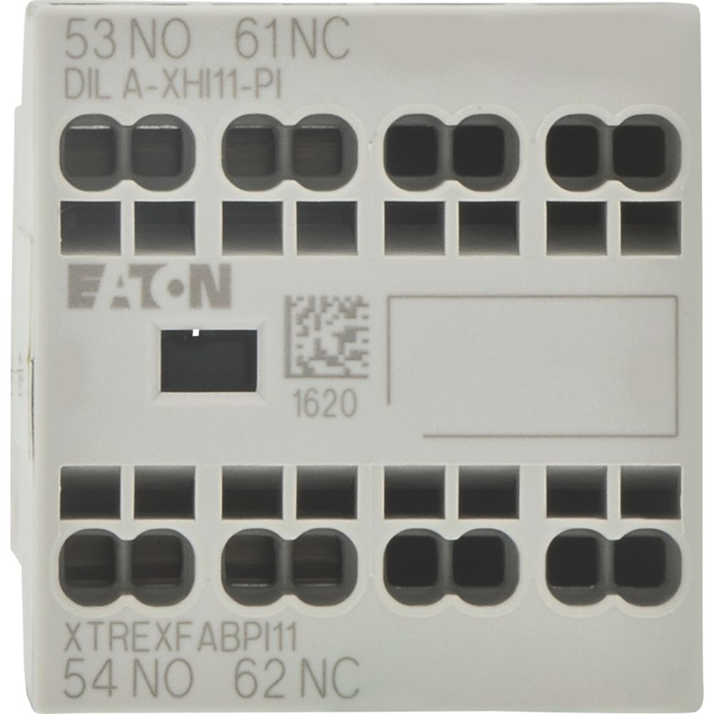 Moduły styków pomocniczych, z przeciwstawnymi sprzężonymi stykami, Funkcja: do zastosowań standardowych, 2-biegunowy, Sposób podłączenia: Zaciski wtykowe Push-In, Ith = 16 A, Znamionowy prąd roboczy AC-15, 220 V 230 V 240 V: Ie = 4 A, Znamionowy prąd roboczy AC-15, 380 V 400 V 415 V: Ie = 4 A, Zestyki Z = zwierne: 1 Z, Zestyki R = rozwierne: 1 R, Typ mocowania: Mocowanie z przodu, Do zastosowania z: DILA…-PI, DILM7…-PI, DILM9…-PI, DILM12…-PI, DILM15…-PI, DILM17…-PI, DILM25…-PI, DILM32…-PI, DILM38…-PI, DILMP20…-PI, DILMP32…-PI, DILMP45…-PI, DILM8…-PI, DILM11…-PI, DILM14…-PI, Typ: Styk pomocniczy do montażu przedniego