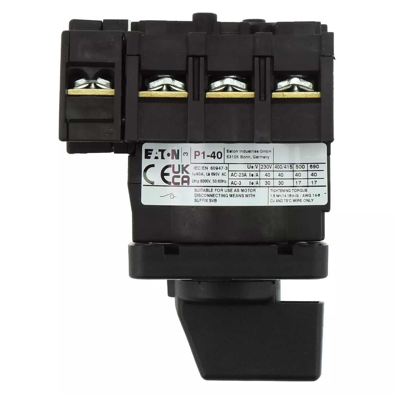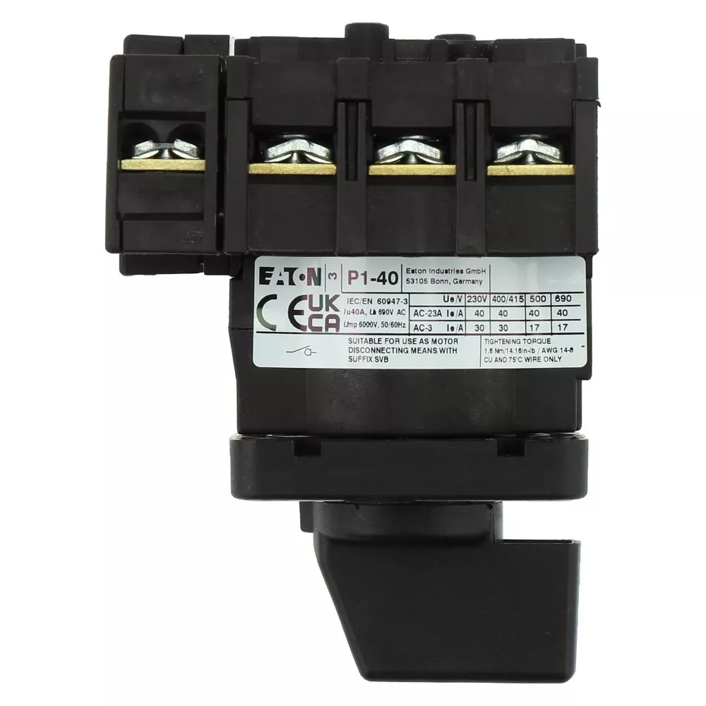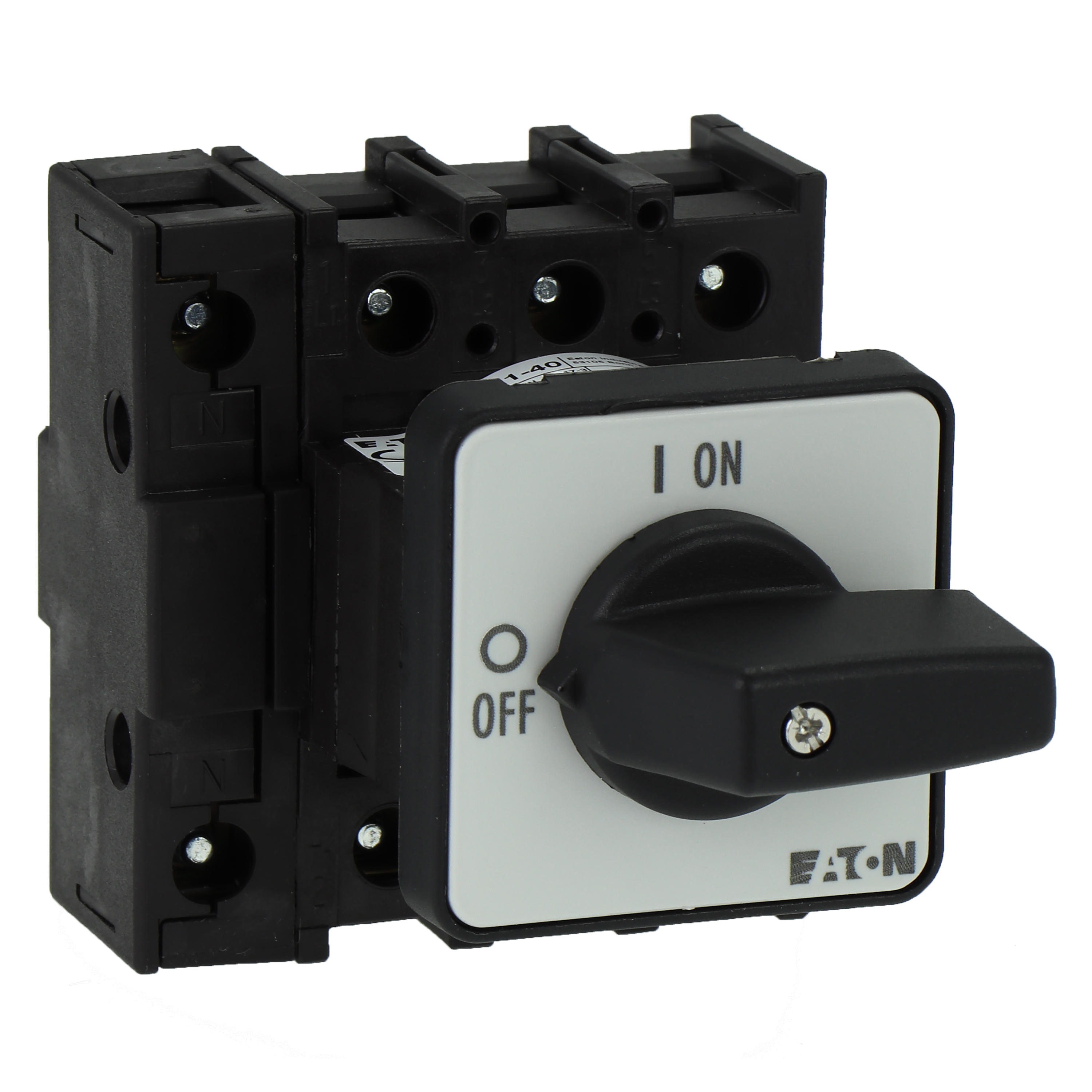 P1-40/E/N Rozłącznik ZAŁ-WYŁ, 3 bieg.+N, 40A, montaż natablicowy, pokrętło czarne bez możliwości blokady