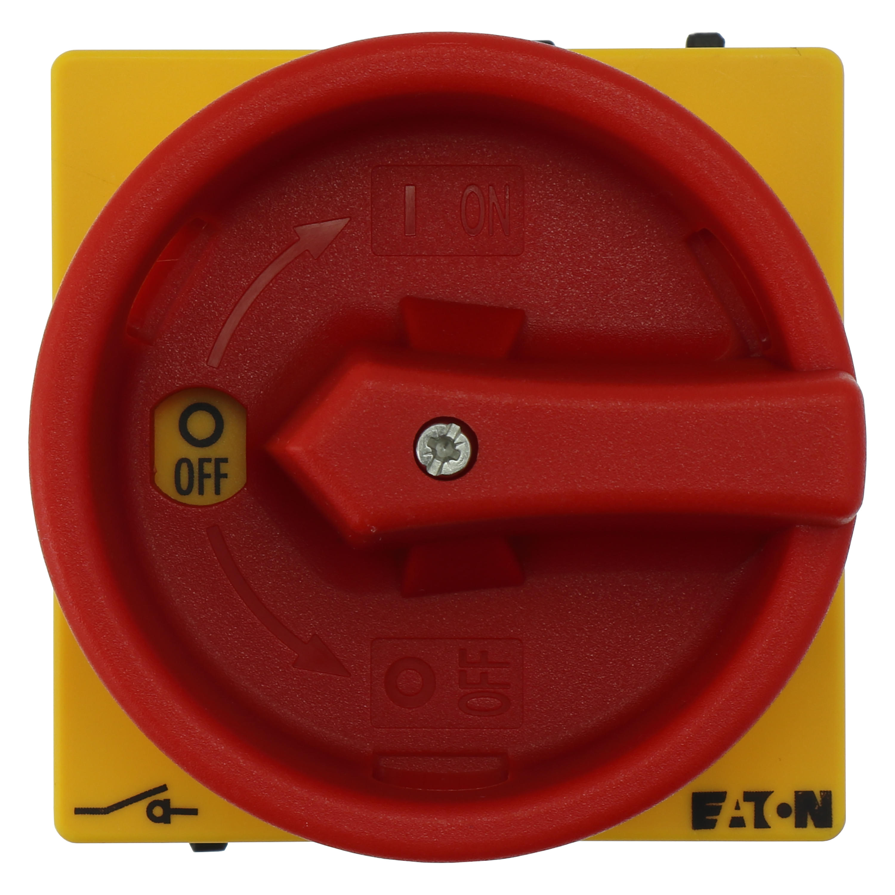 P1-40/EA/SVB Rozłącznik główny, 3 bieg., 40 A, montaż natablicowy, pokrętło czerwono-żółte z blokadą na kłódkę