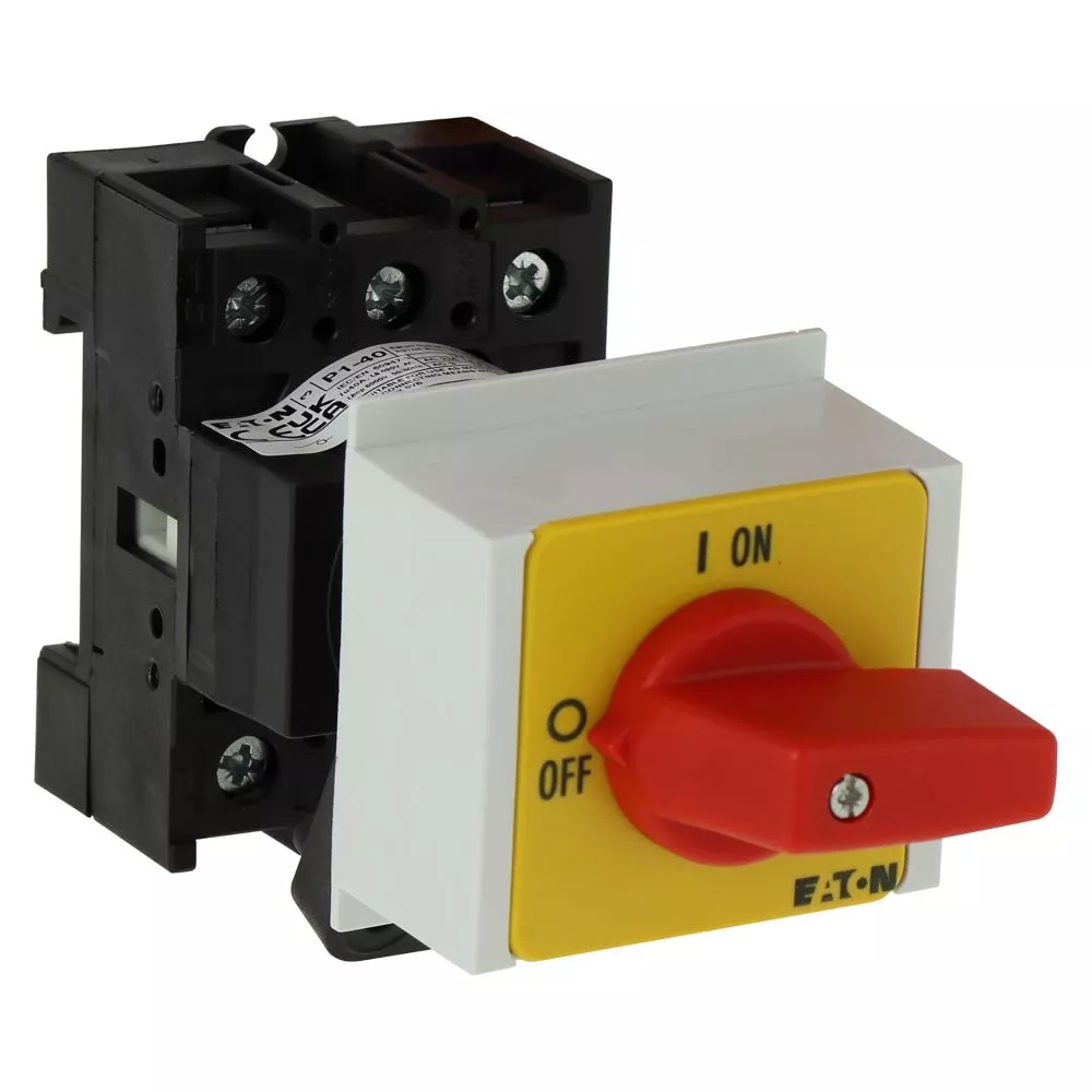 P1-40/IVS-RT Rozłącznik ZAŁ-WYŁ, 3 bieg., 40A, montaż na szynę TH, pokrętło czerwono-żółte bez możliwości blokady