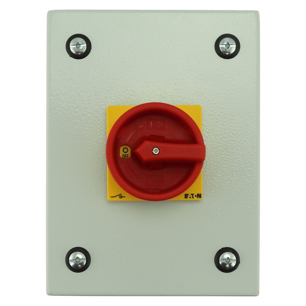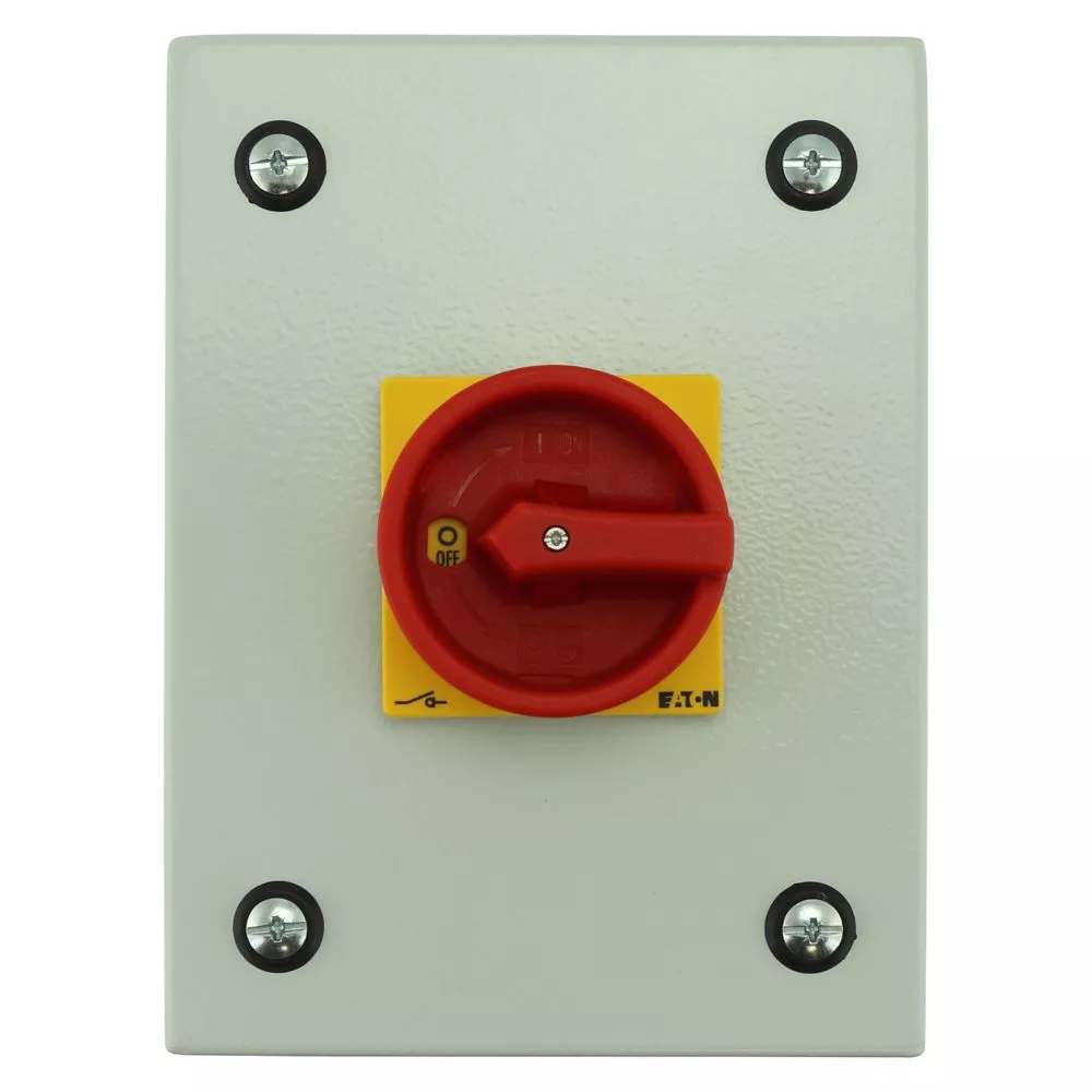 P1-40/SE1/SVB/HI11 Rozłącznik ZAŁ-WYŁ, 3 bieg.+1NO+1NC, 40A, w obudowie ze stali, pokrętło czerwono-żółte z blokadą na kłódkę