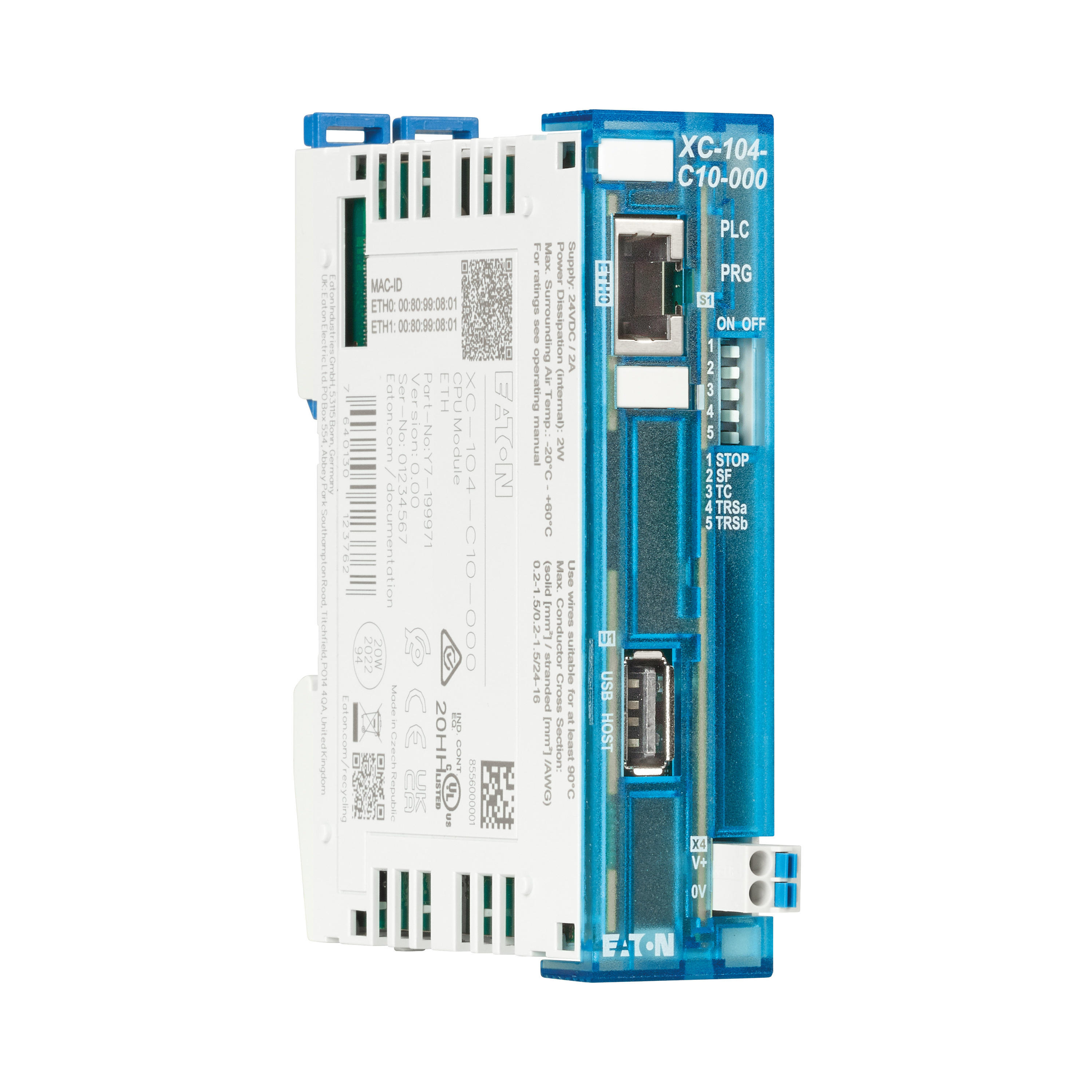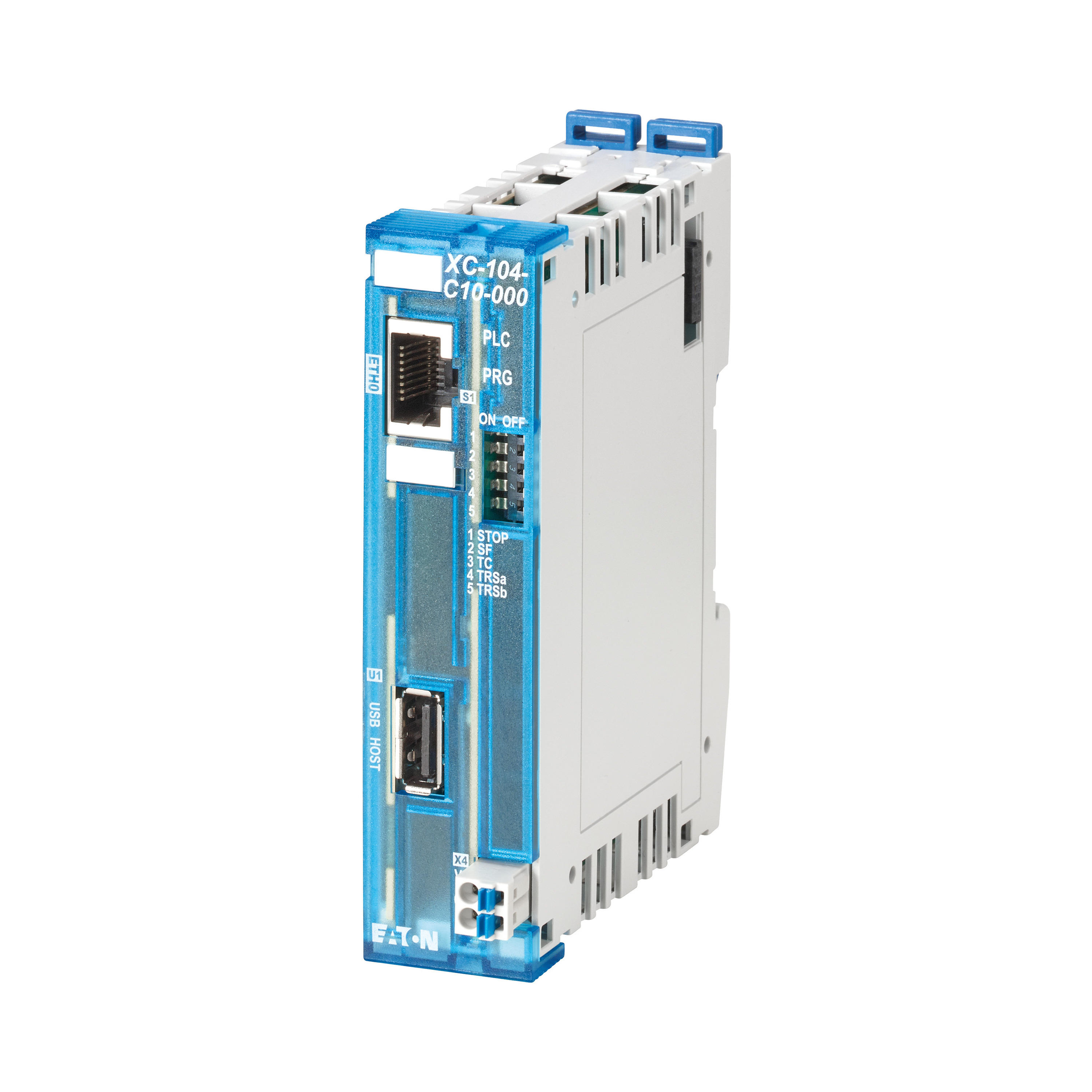 Modułowy sterownik PLC XC104, stopień ochrony: IP20, 1 interfejs USB, obsługa protokołów dla: EtherNet/IP, MODBUS, inne systemy magistrali, TCP/IP, XN300 IO z możliwością rozbudowy