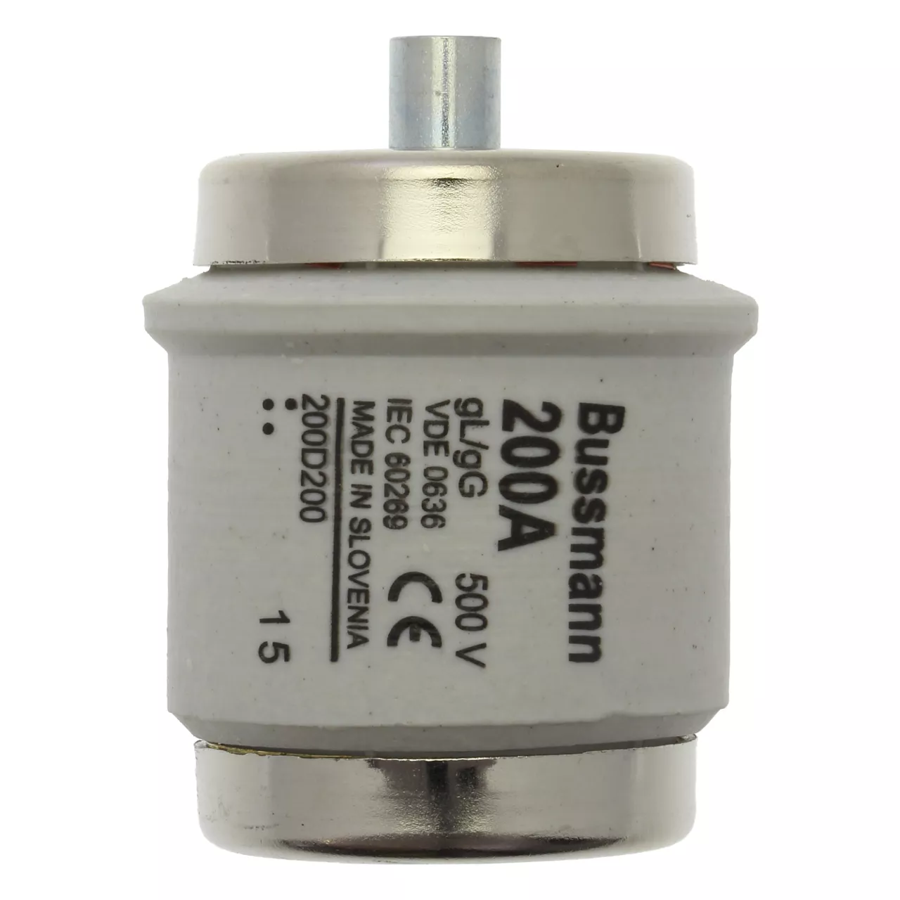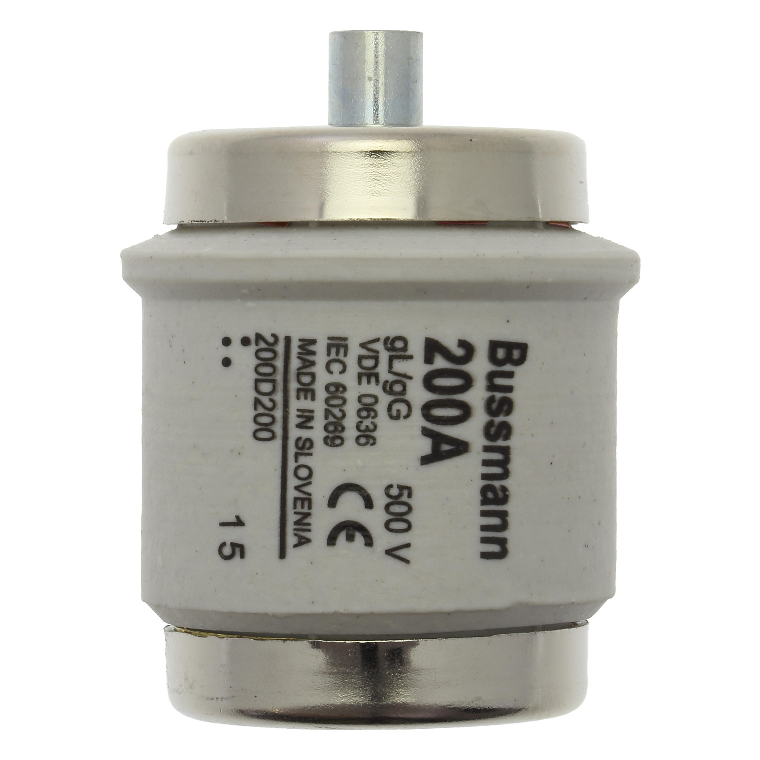 Zekering, zekeringelement, laagspanning, 200 A, AC 500 V, D5, 56 x 46 mm, gL/gG, DIN, IEC, traag, fles, voor zekeringhouder R2, IEC 60269-3, VDE 0636, afschakelvermogen 50 kA