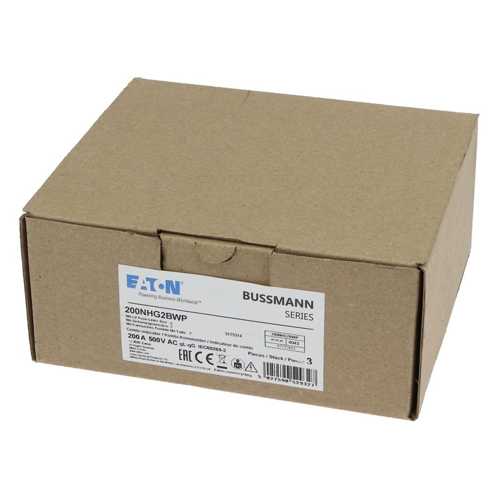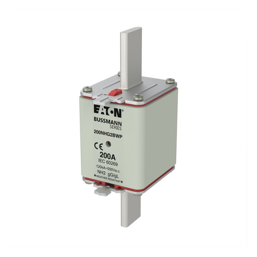 Bezpiecznik, Wkładka bezpiecznikowa, Niskie napięcie, 200 A, AC 500 V, NH2, odporność na warunki pogodowe, gL/gG, IEC, sygnalizator podwójny, korpus kwadratowy ze stykami nożowymi, ruchome uchwyty, IEC 60269-2 układ bezpiecznikowy A, DIN 43620, VDE 0636-2, Zdolność wyłączania 120 kA, Opcjonalne akcesoria, podstawa bezpiecznikowa SD2-D i SD2-S