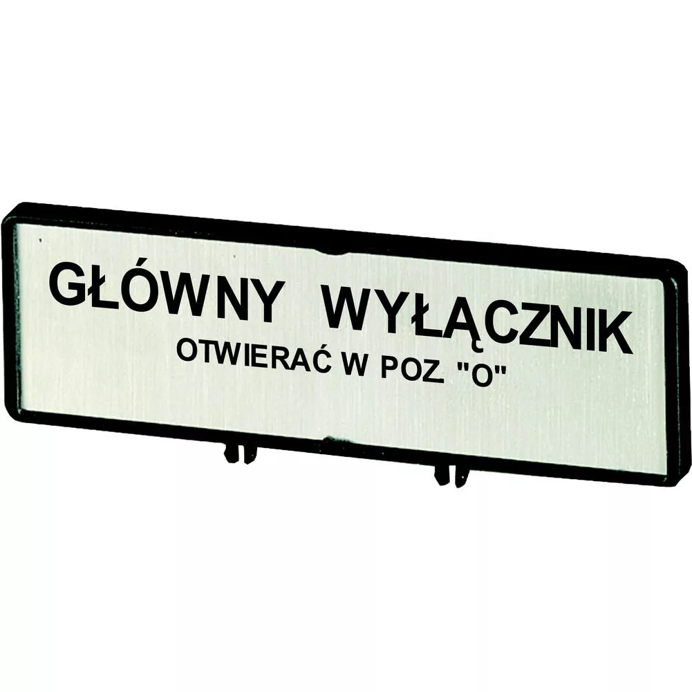 ZFS71-P3 Tabliczka czołowa z napis standardowym "Otwierać wyłącznik główny tylko w pozycji 0", dla T5, T5B, P3, język polski