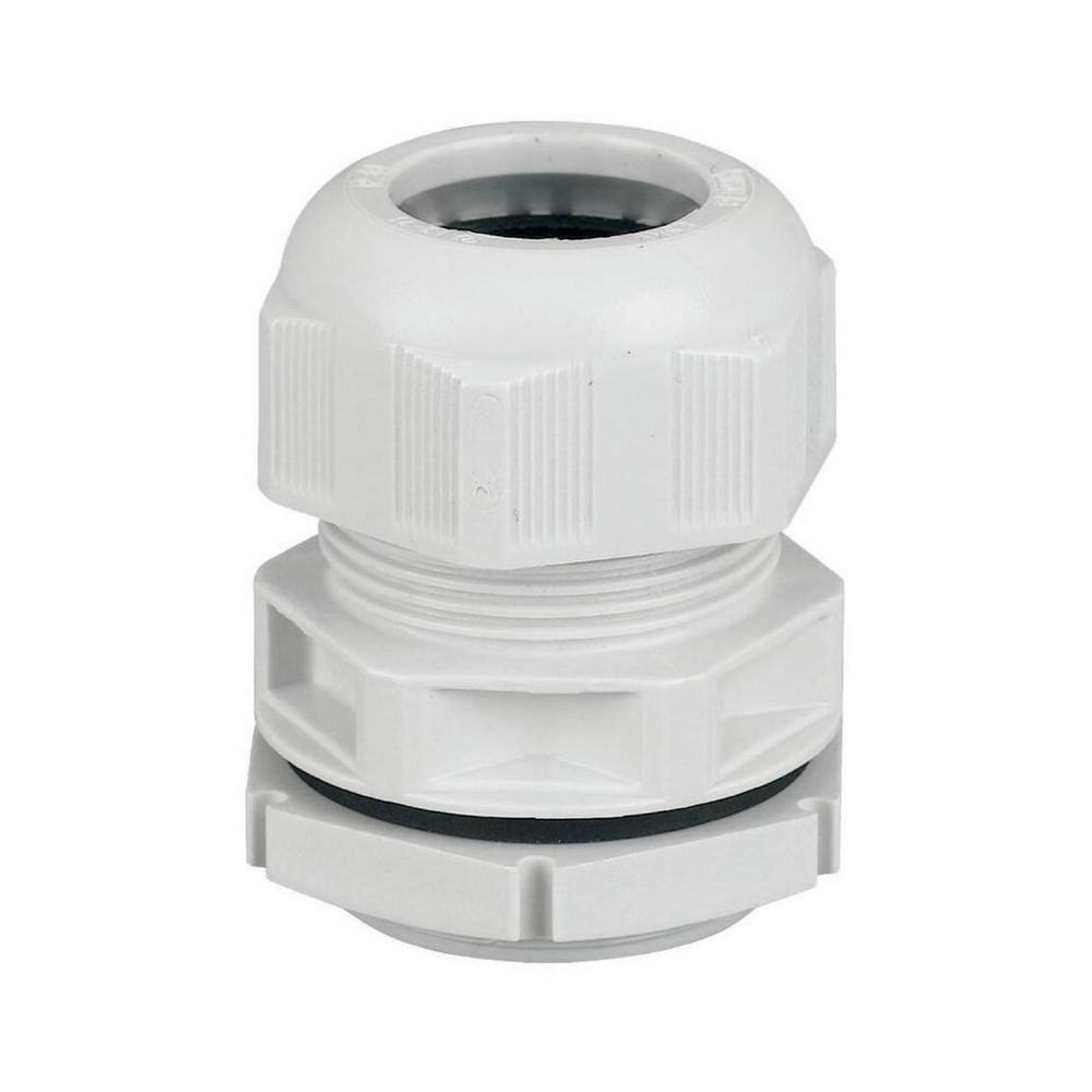 Dławik kablowy, przepust kablowy = M32, wymiary wiercenia = 32,5mm, użytkowy NYM/NYY, 4-żyłowy = NYM 5 x 10mm², stopień ochrony IP68 do 5 bar (30 min), poliamid, bezhalogenowy, RAL 7035, z nakrętką łożyskową i wbudowanym odciążeniem, klasa palności V2 wg UL94