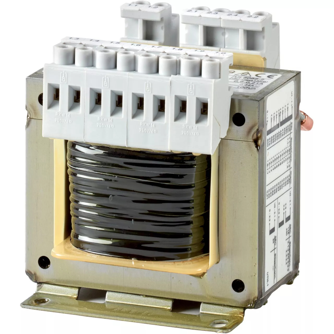 Transformator sterujący, Zacisk śrubowy: Jednofazowe transformatory wielouzwojeniowe UTI, Znamionowe napięcie wejściowe: 208 – 600 V, Znamionowe napięcie wyjściowe: 2 x 115 V, Moc znamionowa: 1 kVA, Stopień ochrony: IP00, Normy: skonstruowano i przetestowano zgodnie z: (uniwersalne) sterujące, transformatory separacyjne i bezpieczeństwa do, VDE 0550, IEC/EN 61558-2-2/2-4/2-6, VDE 0570 część 2-2/2-6 (transformatory bezpieczeństwa), VDE 0570 Część 2-4 (transformator separacyjny), Odpowiednie do używania zgodnie z: IEC/EN 60204-1, ÖVE-EN 13, VDE 0113, VDE 0100 Część 410