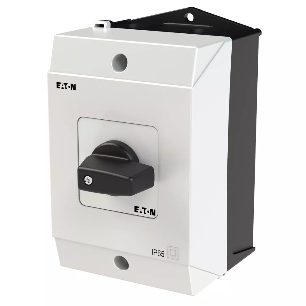 Włącznik, Zacisk śrubowy: Łączniki sterownicze, Normy: IEC/EN 60947, VDE 0660, IEC/EN 60204, Rozłącznik izolacyjny zgodny z IEC/EN 60947-3, Odniesienie grupy części T0, z czarnym pokrętłem z tabliczką czołową, Zestyki: 3, Samopowrót: Samopowrót w pozycji 1, Stopień ochrony: IP65, Projekt: montaż powierzchniowy, Kąt przełączania: 45°, Przebieg łączenia: z samopowrotem, Z samopowrotem z pozycji 1, 2 zespół montażowy/zespoły montażowe, Znamionowy prąd ciągły: Iu = 20 A, tabliczka czołowa: I<1