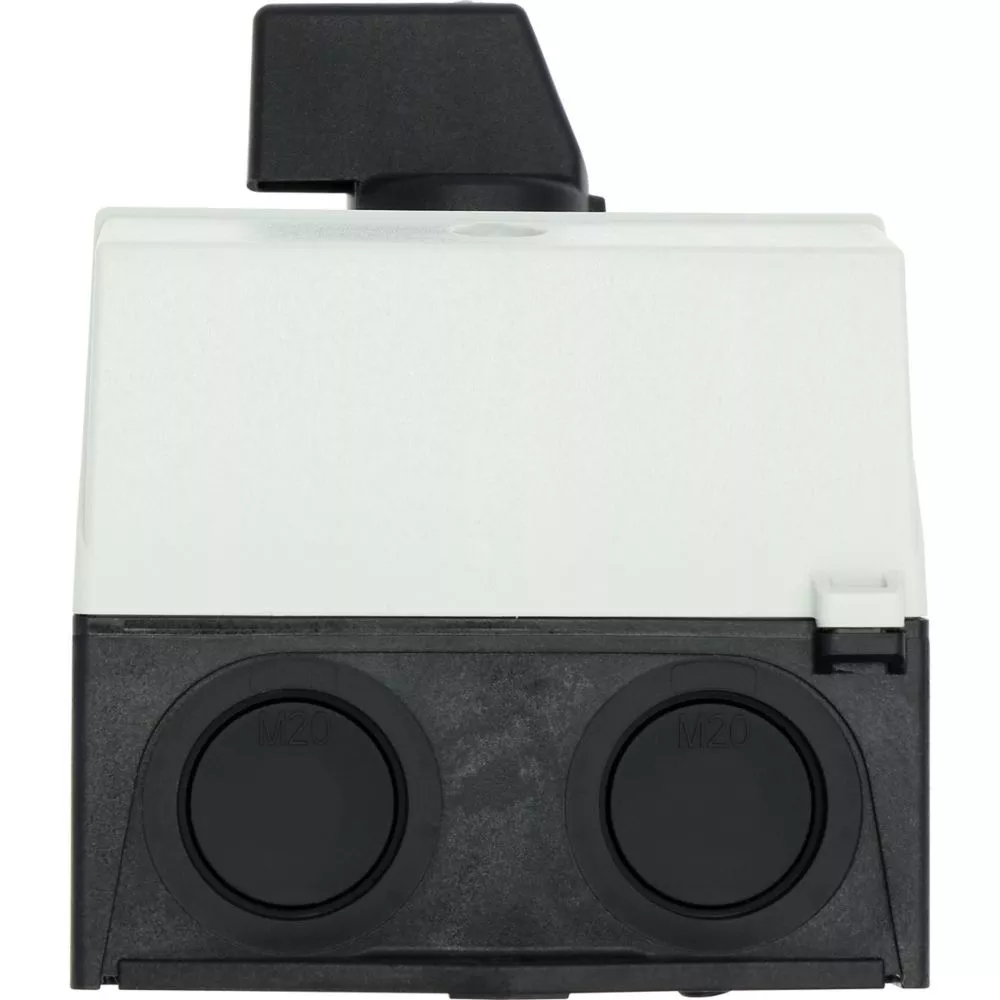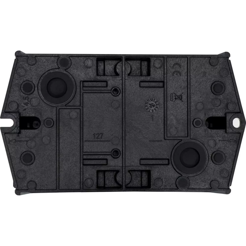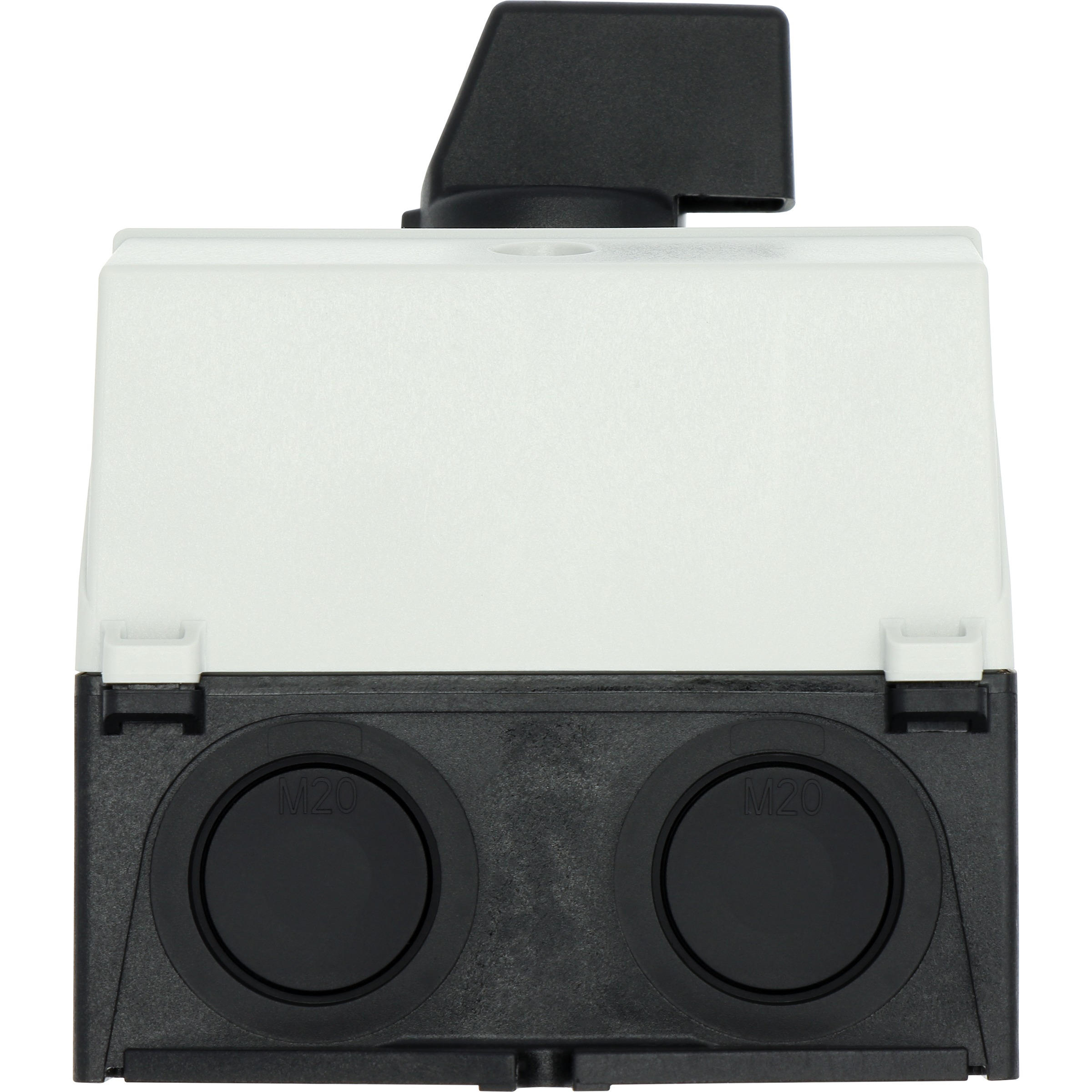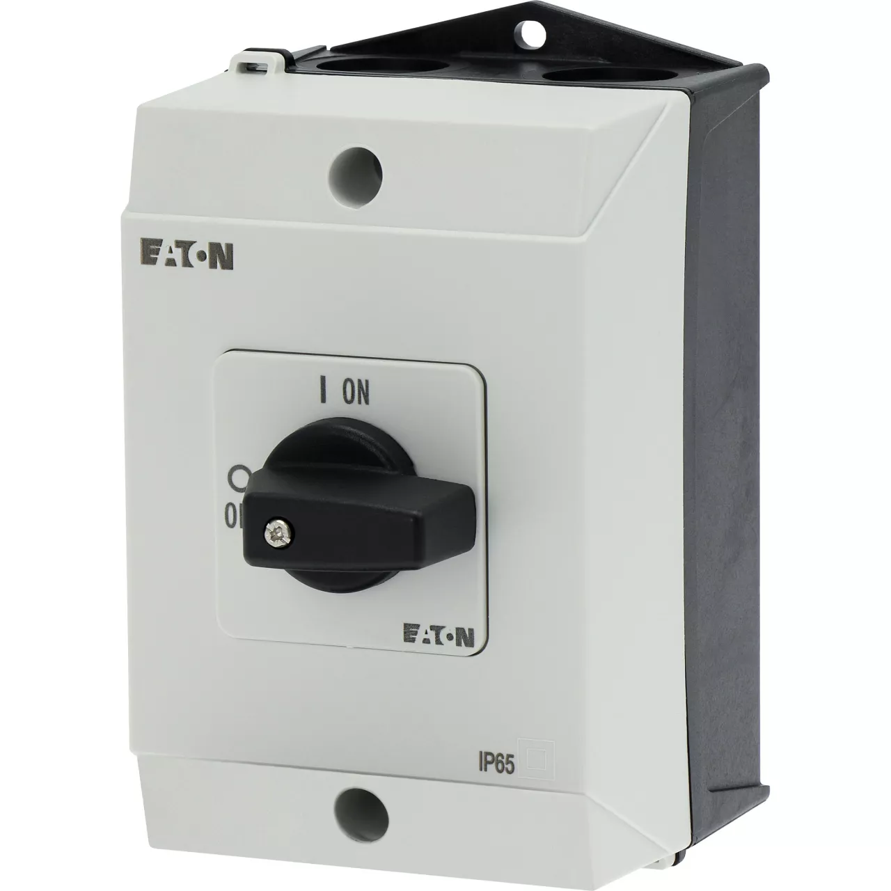 Przełącznik wł.-wył., Zacisk śrubowy: Przełącznik wł.-wył., Odniesienie grupy części T0, z czarnym pokrętłem z tabliczką czołową, 3-biegunowy + N, Stopień ochrony: IP65, Projekt: montaż powierzchniowy, Kąt przełączania: 90°, Przebieg łączenia: bez samopowrotu, tabliczka czołowa: 0-1, Moc znamionowa AC-23A, 50 - 60 Hz 400 V: P = 5,5 kW, Znamionowy prąd ciągły: Iu = 20 A, 2 zespoł montażowy, Normy: IEC/EN 60947, VDE 0660, IEC/EN 60204, Rozłącznik izolacyjny zgodnie z normą IEC/EN 60947-3