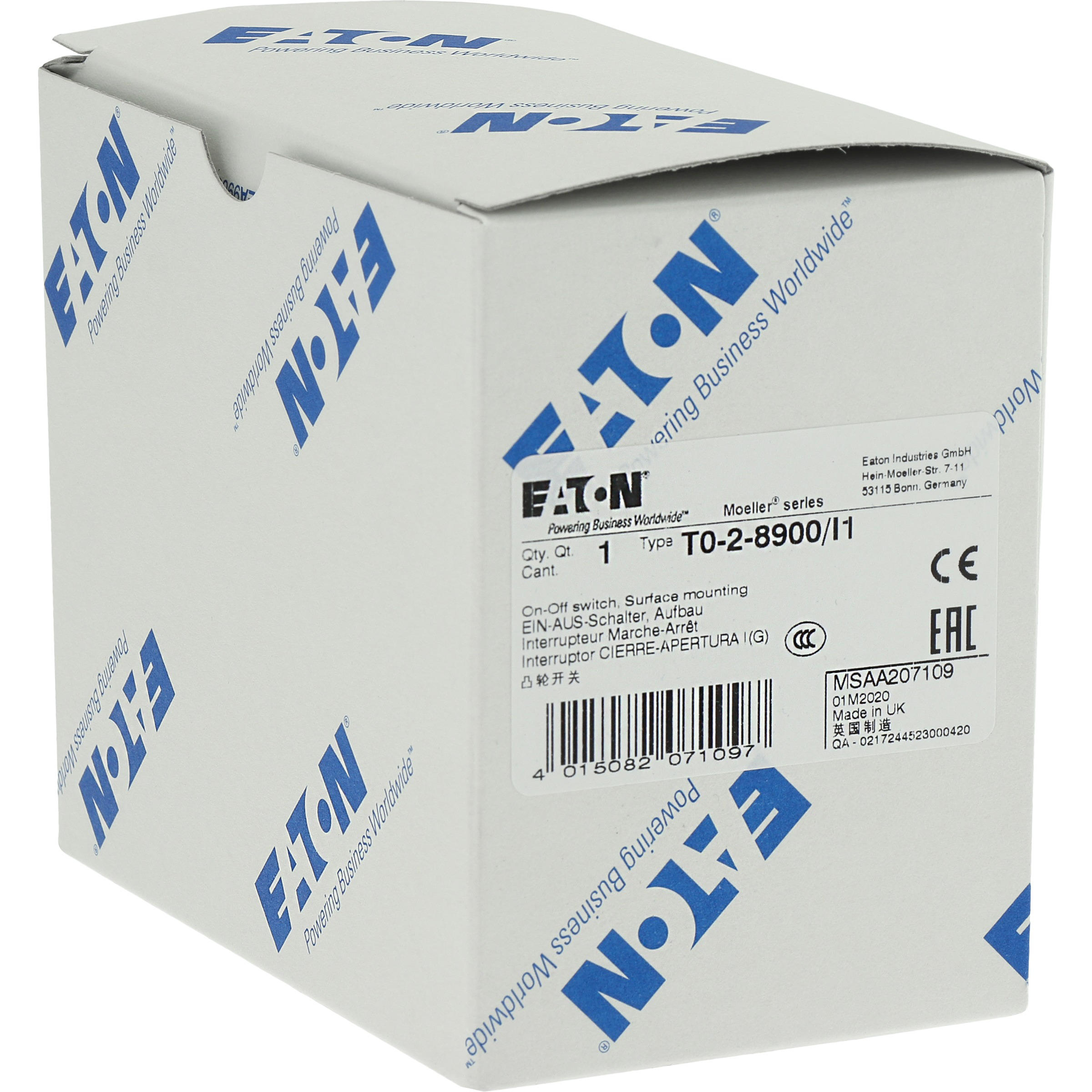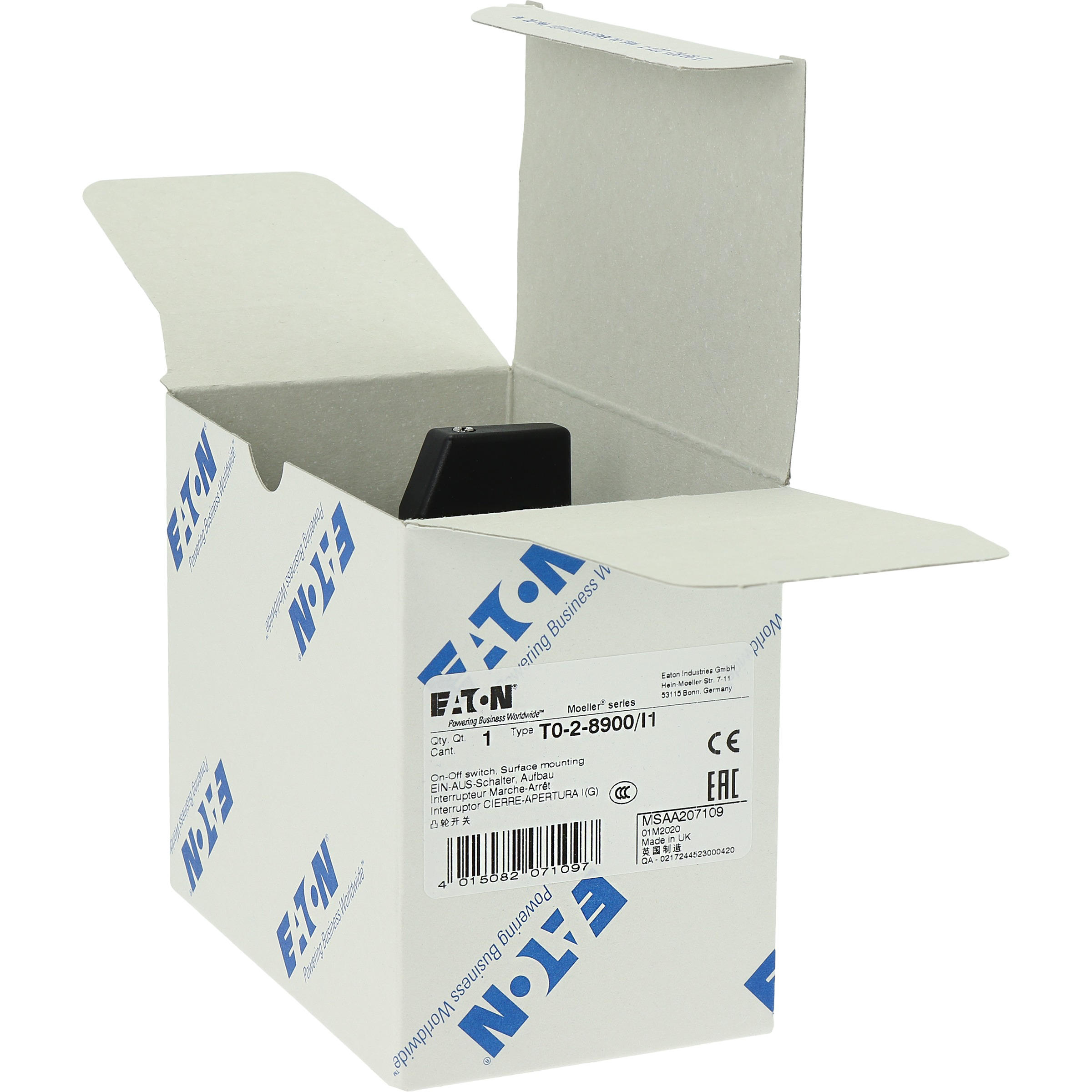 T0-2-8900/I1 Przełącznik Zał.-Wył., 3 bieg. + N, 20 A, 90 °, w obudowie IP65, pokrętło czarne bez możliwości blokady