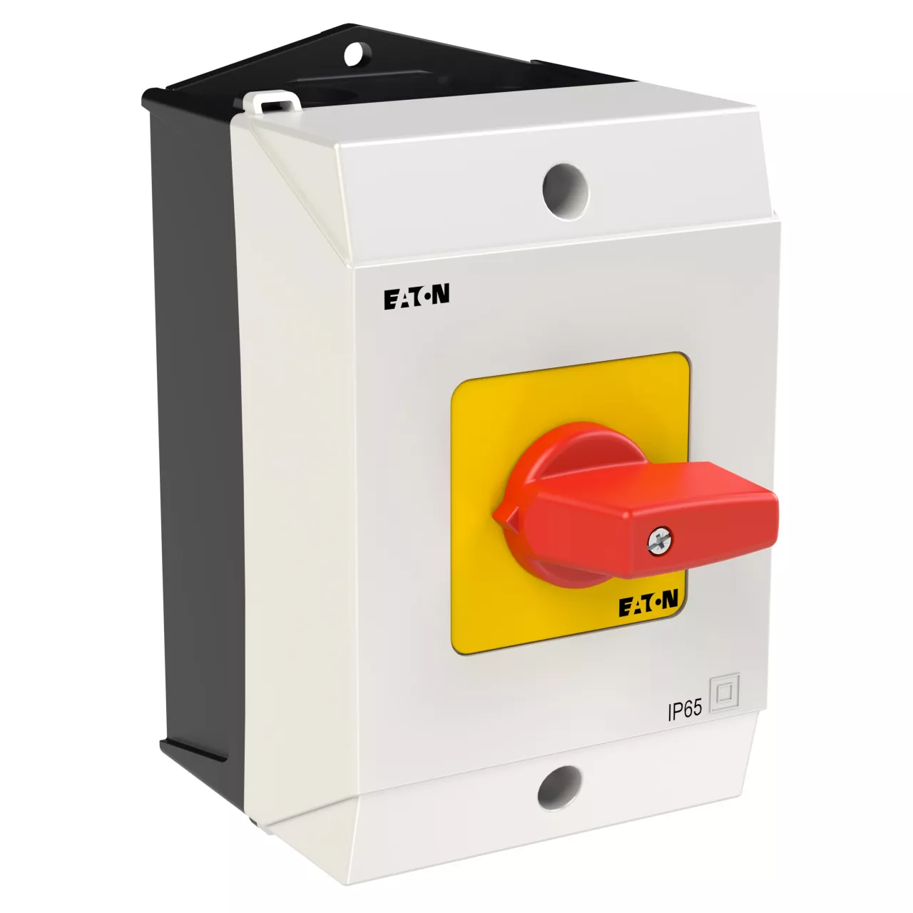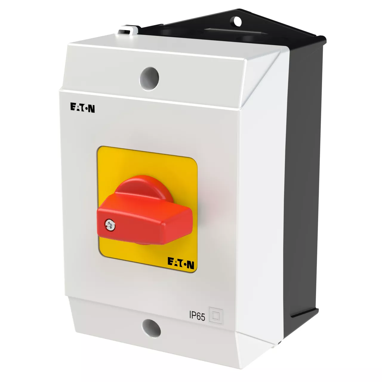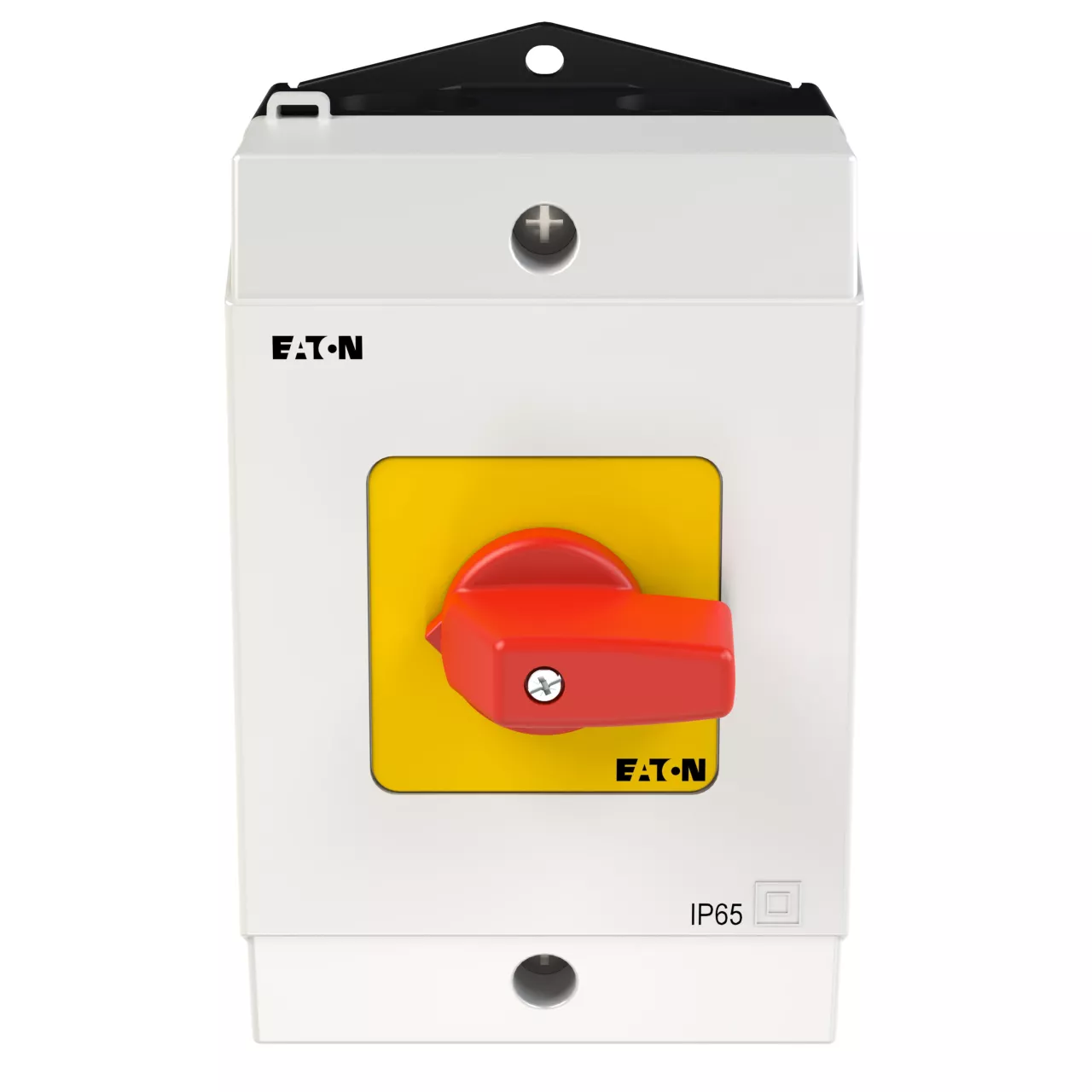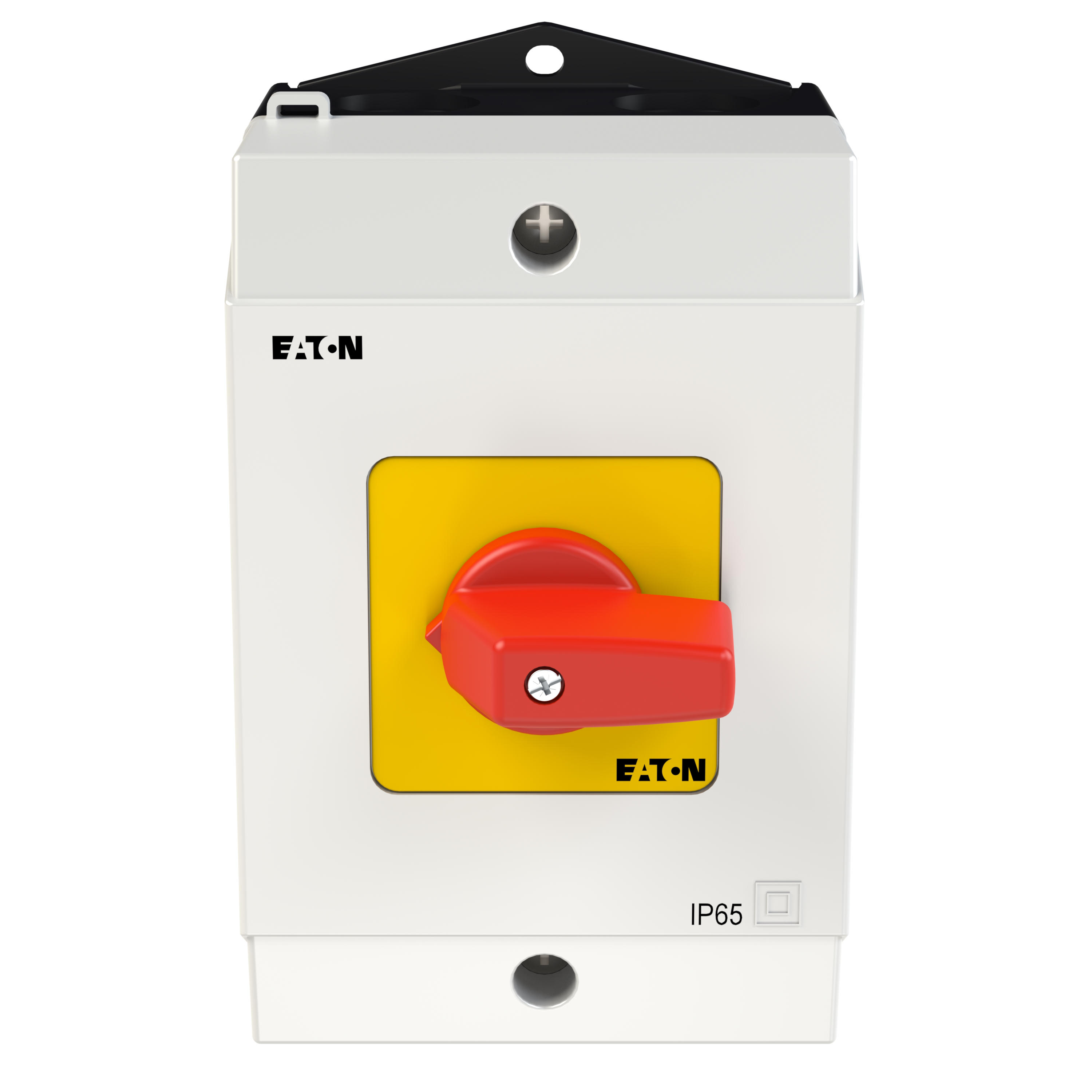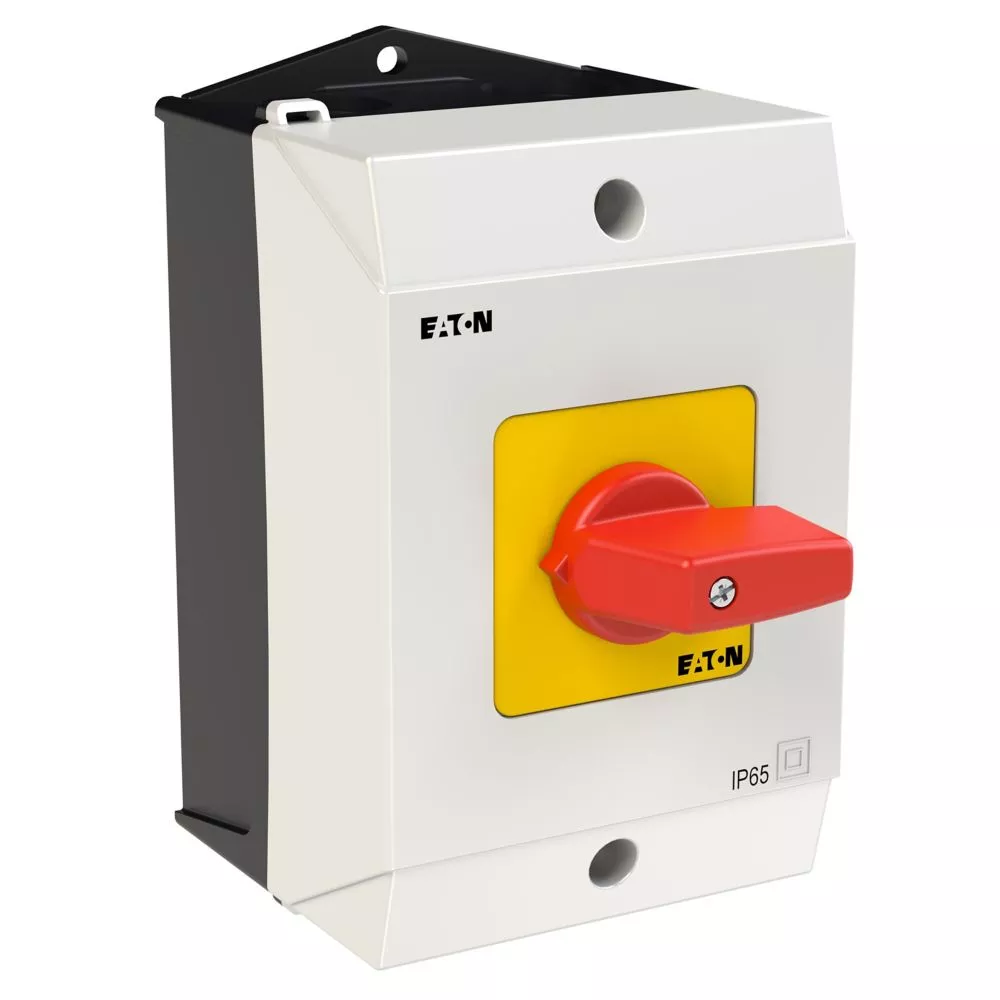 Przełącznik wł.-wył., Zacisk śrubowy: Przełącznik wł.-wył., Odniesienie grupy części T0, Funkcja zatrzymania: Funkcja wyłączania awaryjnego, z czerwonym pokrętłem z żółtą tabliczką czołową, 3-biegunowy + N, Stopień ochrony: IP65, Projekt: montaż powierzchniowy, Kąt przełączania: 90°, Przebieg łączenia: bez samopowrotu, tabliczka czołowa: 0-1, Moc znamionowa AC-23A, 50 - 60 Hz 400 V: P = 5,5 kW, Znamionowy prąd ciągły: Iu = 20 A, 2 zespoł montażowy, Normy: IEC/EN 60947, VDE 0660, IEC/EN 60204, Rozłącznik izolacyjny zgodnie z normą IEC/EN 60947-3