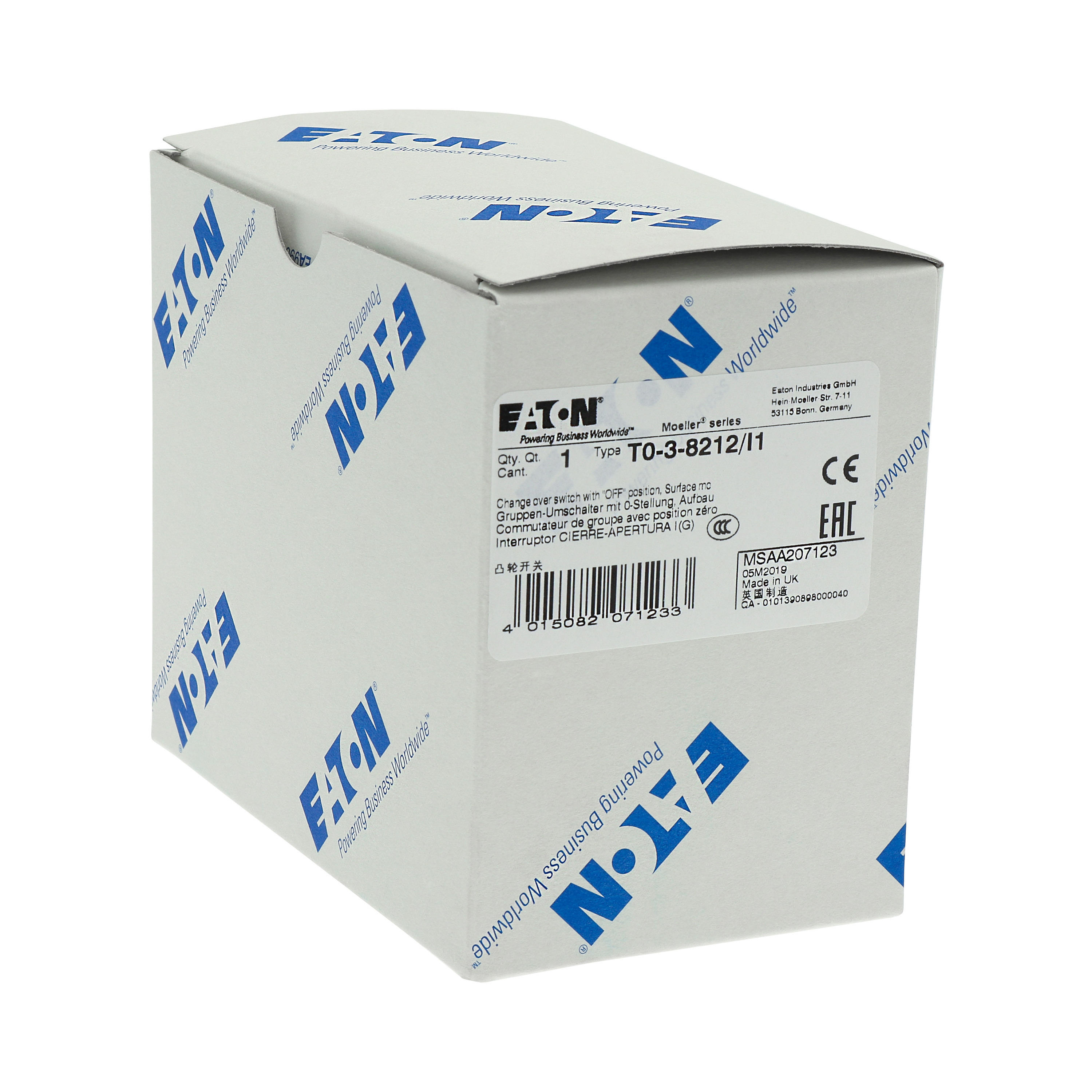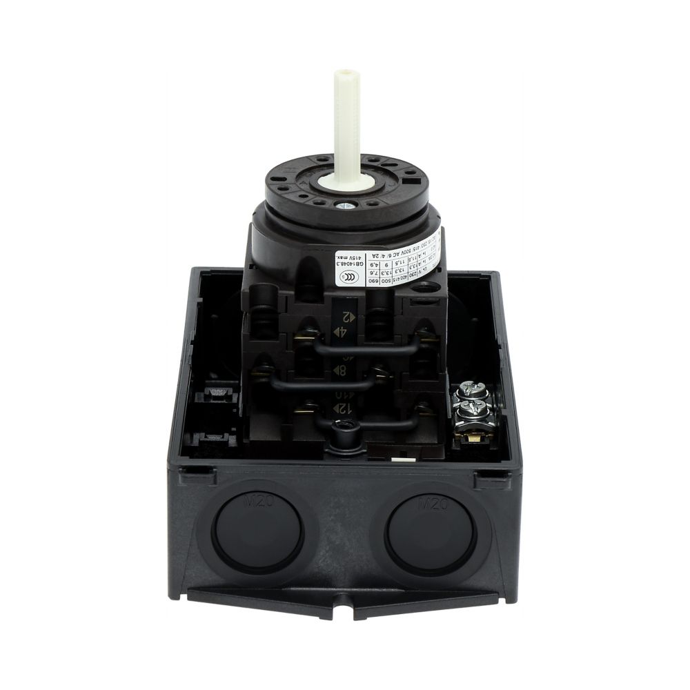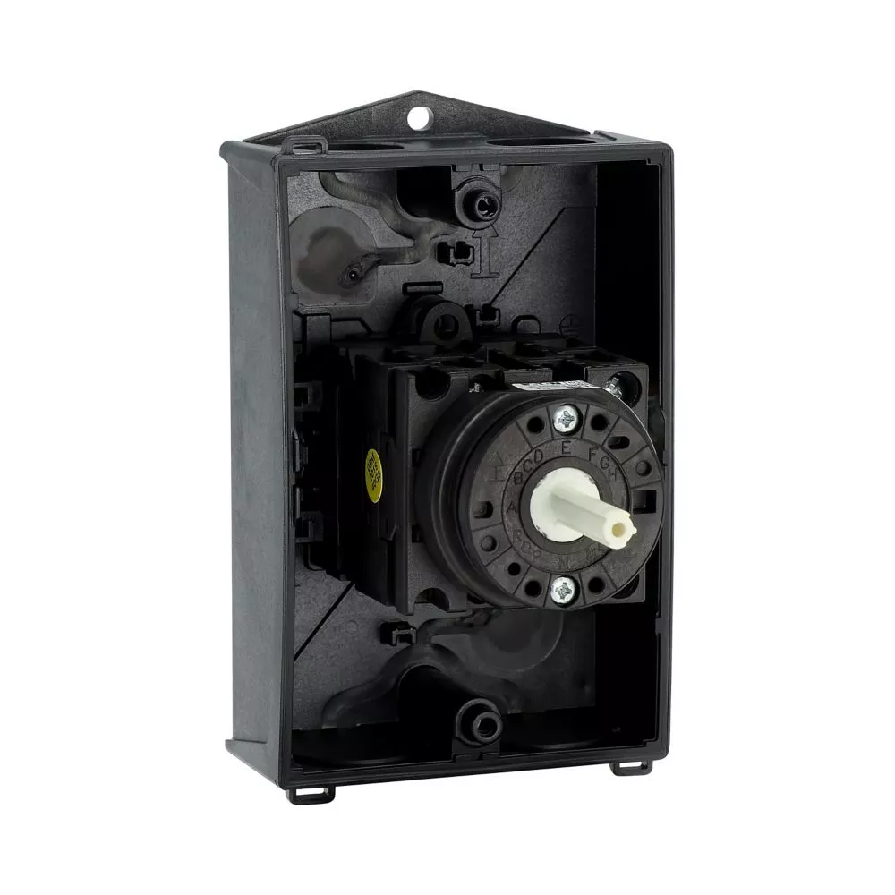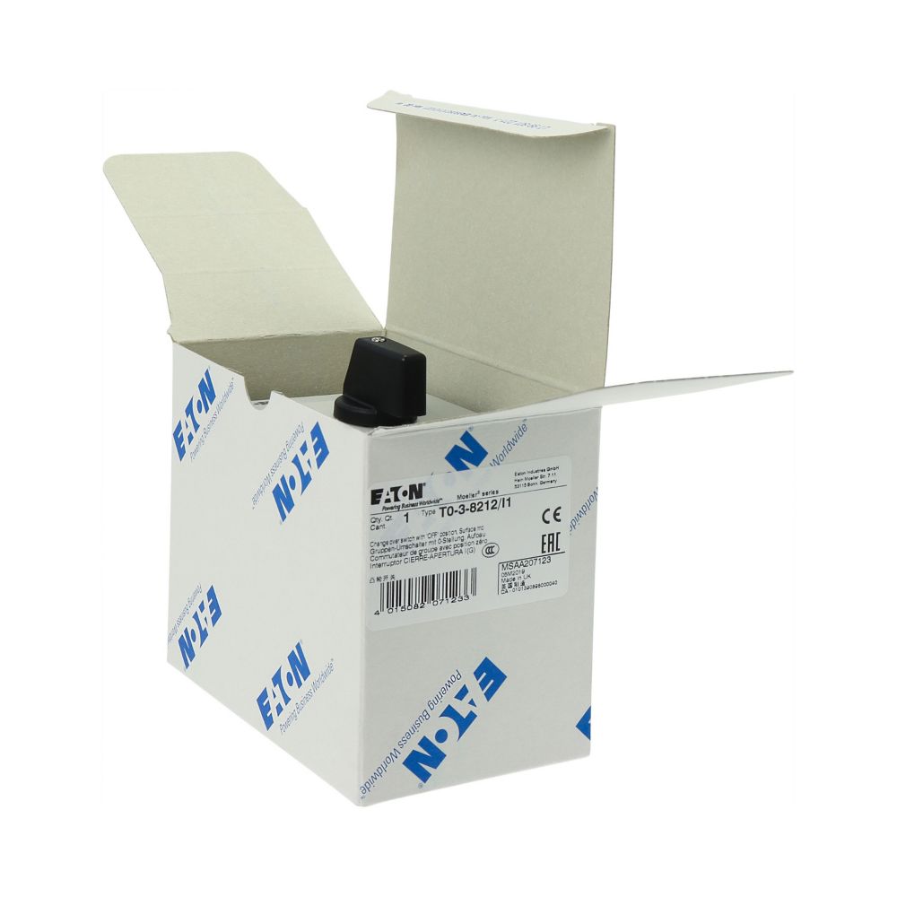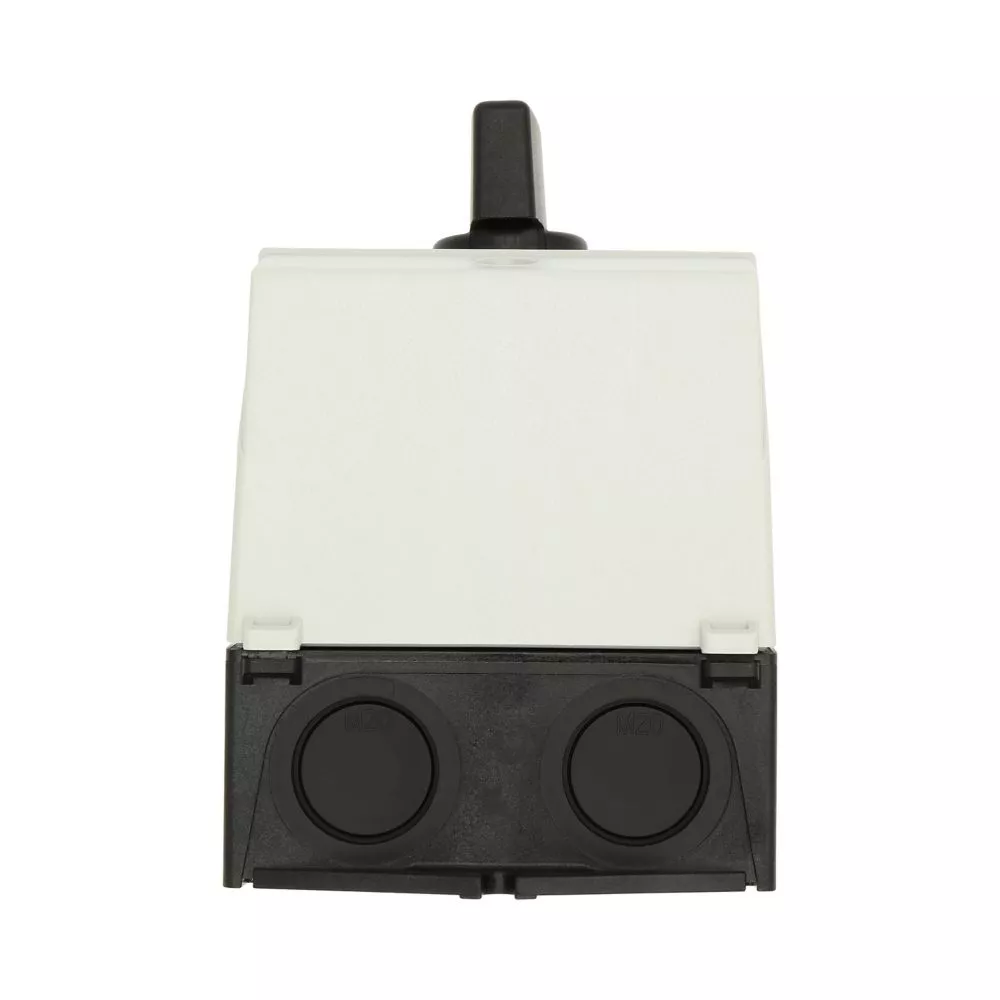 T0-3-8212/I1 Przełącznik zasilania, Styki: 6, 20 A, tabliczka: 1-0-2, 60 °, bez samopowrotu, w obudowie IP65, pokrętło czarne bez możliwości blokady