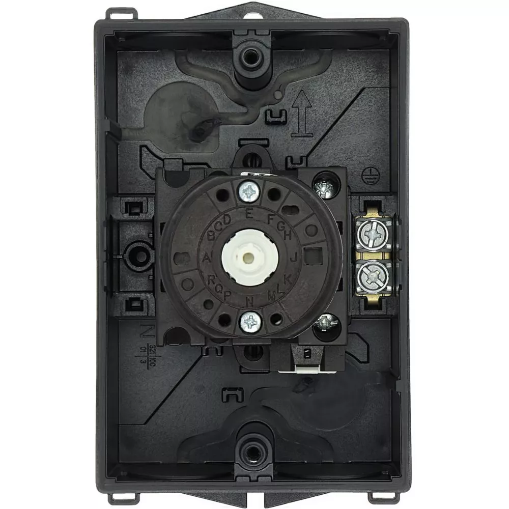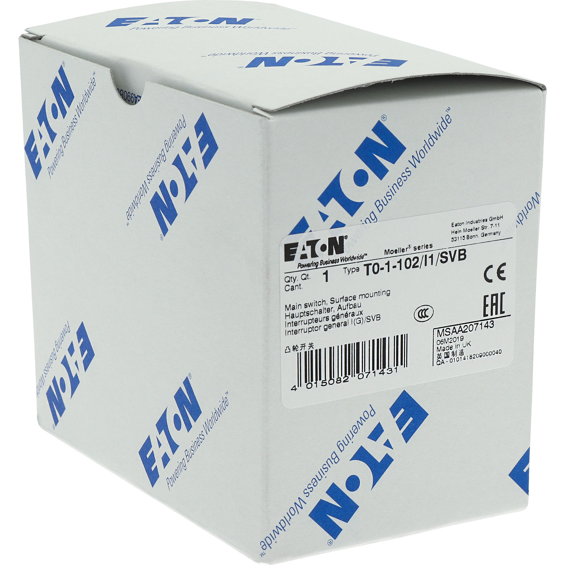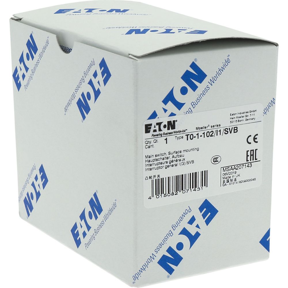 Wyłącznik główny, Zacisk śrubowy: Wyłącznik główny, wyłącznik serwisowy, Wyłącznik naprawczy, Odniesienie grupy części T0, Funkcja zatrzymania: Funkcja wyłączania awaryjnego, z czerwonym uchwytem obrotowym i żółtym pierścieniem blokującym, 2-biegunowy, Element blokujący: Możliwość zablokowania w położeniu 0 (Wył.), Stopień ochrony: IP65, Projekt: montaż powierzchniowy, Kąt przełączania: 90°, Moc znamionowa AC-23A, 50 - 60 Hz 400 V: P = 5,5 kW, Znamionowy prąd ciągły: Iu = 20 A, 1 zespoł montażowy, Normy: IEC/EN 60947, VDE 0660, IEC/EN 60204, Rozłącznik izolacyjny zgodnie z normą IEC/EN 60947-3