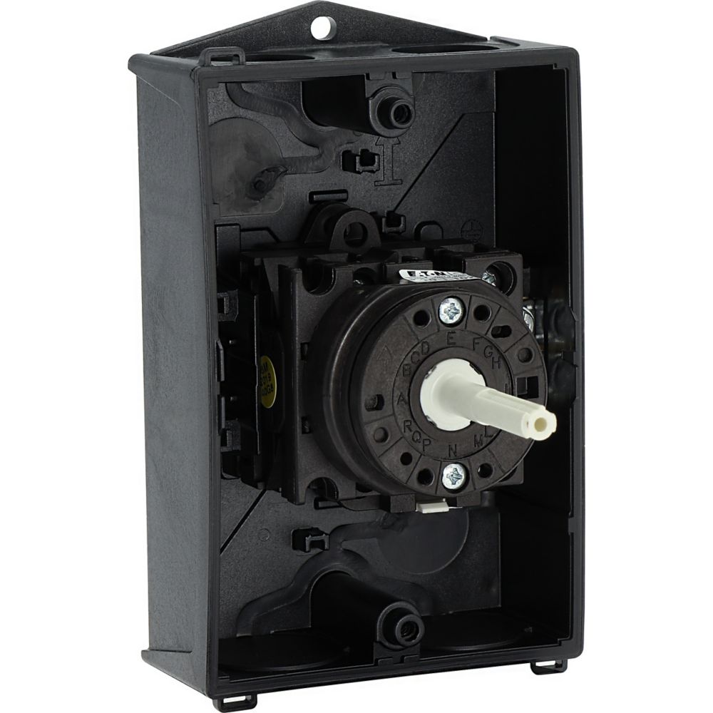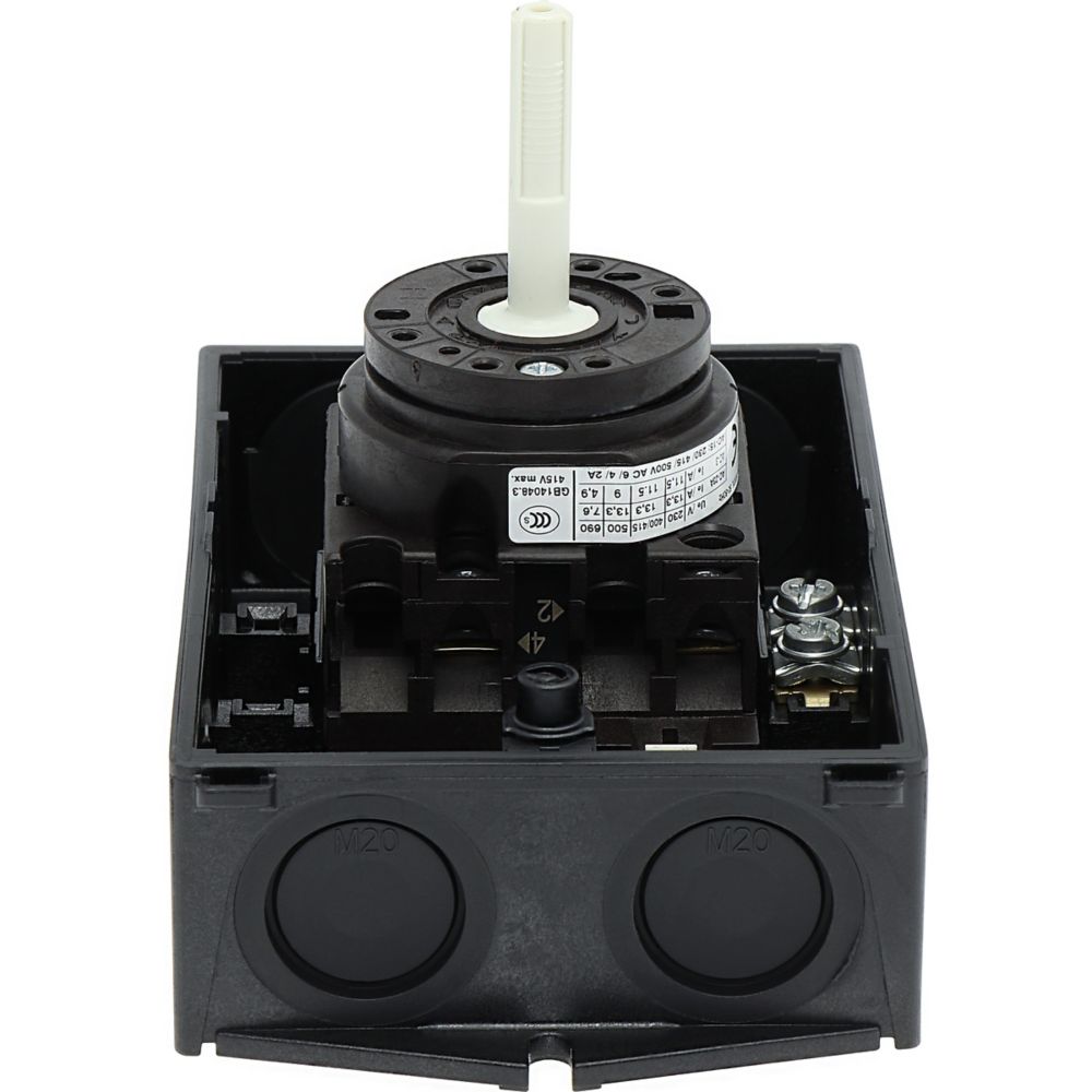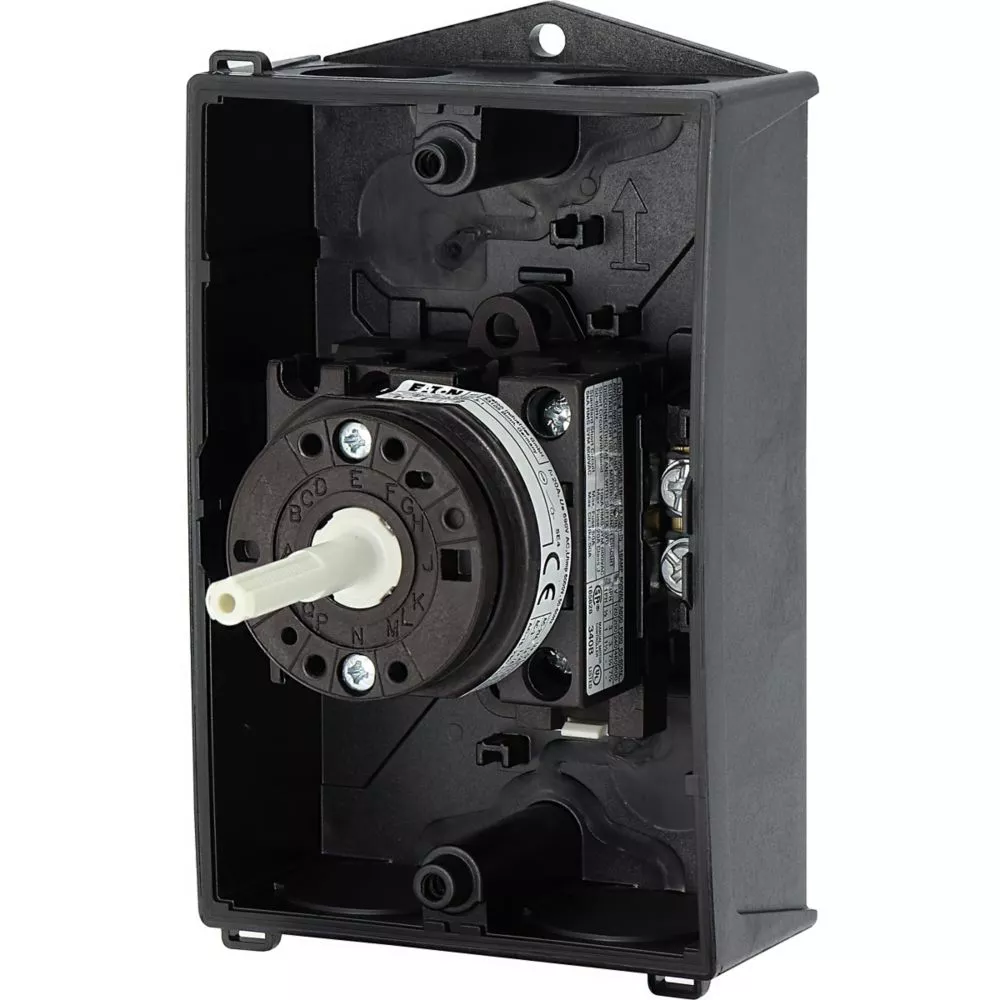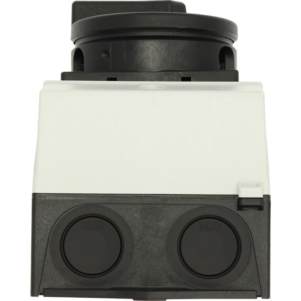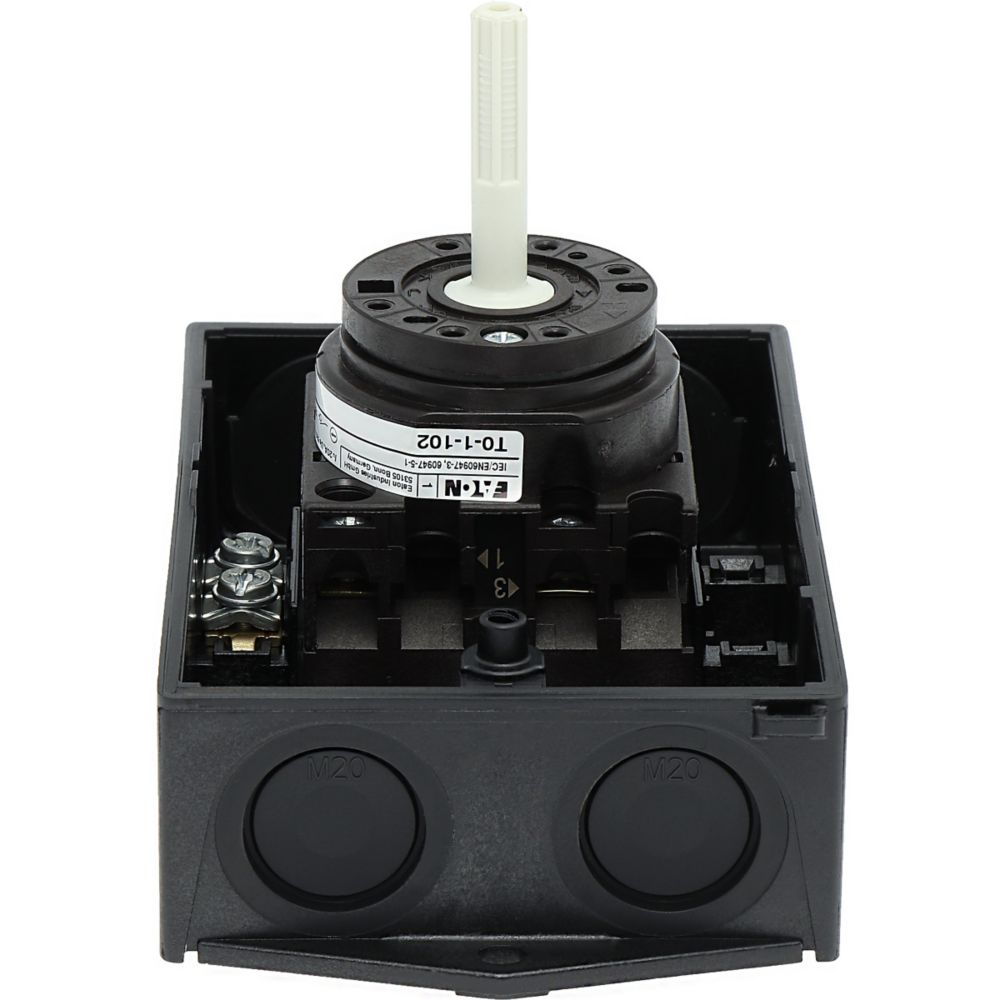 Wyłącznik główny, Zacisk śrubowy: Wyłącznik główny, wyłącznik serwisowy, Wyłącznik naprawczy, Odniesienie grupy części T0, Funkcja zatrzymania: Funkcja STOP, Z czarnym uchwytem obrotowym i pierścieniem blokującym, 2-biegunowy, Element blokujący: Możliwość zablokowania w położeniu 0 (Wył.), Stopień ochrony: IP65, Projekt: montaż powierzchniowy, Kąt przełączania: 90°, Moc znamionowa AC-23A, 50 - 60 Hz 400 V: P = 5,5 kW, Znamionowy prąd ciągły: Iu = 20 A, 1 zespoł montażowy, Normy: IEC/EN 60947, VDE 0660, IEC/EN 60204, Rozłącznik izolacyjny zgodnie z normą IEC/EN 60947-3
