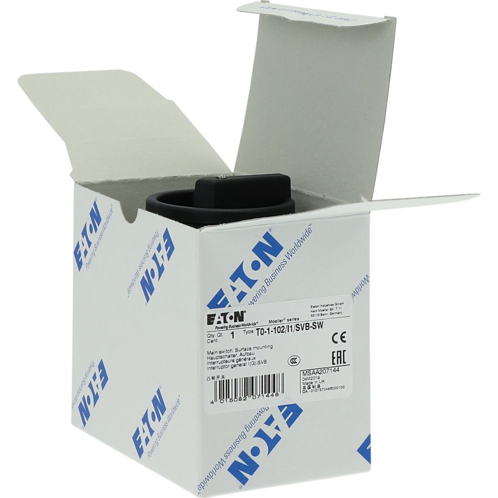 T0-1-102/I1/SVB-SW Przełącznik Zał.-Wył., 2 bieg., 20 A, 90 °, w obudowie IP65, pokrętło czarne z blokadą na kłódkę