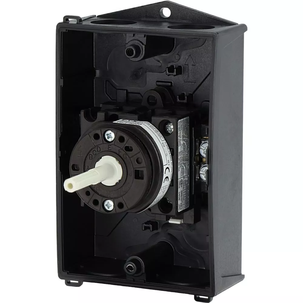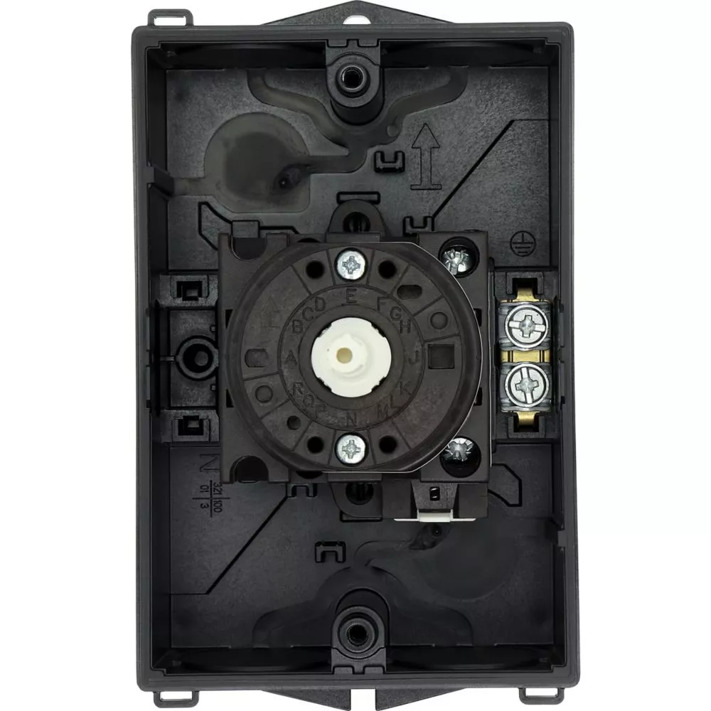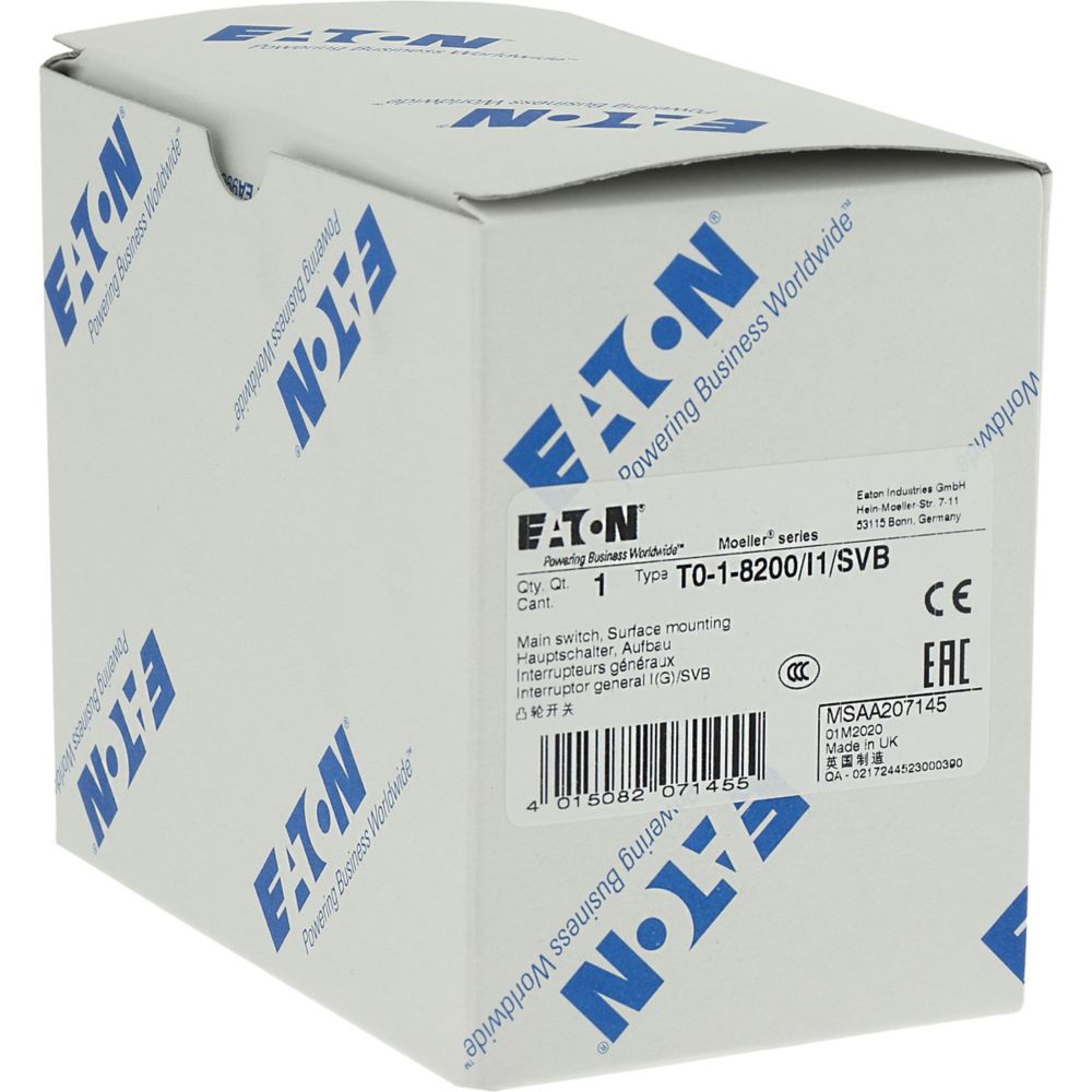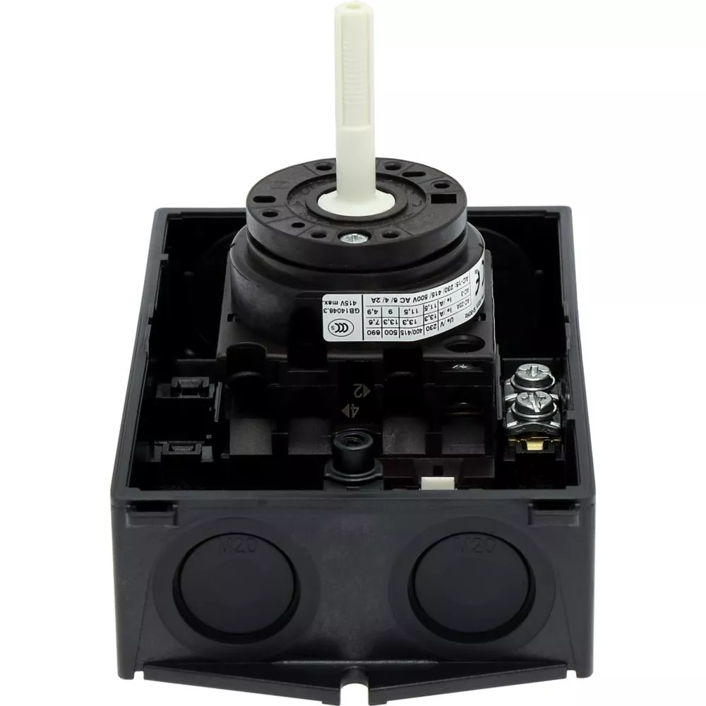 Wyłącznik główny, Zacisk śrubowy: Wyłącznik główny, wyłącznik serwisowy, Wyłącznik naprawczy, Odniesienie grupy części T0, Funkcja zatrzymania: Funkcja wyłączania awaryjnego, z czerwonym uchwytem obrotowym i żółtym pierścieniem blokującym, 1-biegunowy, Element blokujący: Możliwość zablokowania w położeniu 0 (Wył.), Stopień ochrony: IP65, Projekt: montaż powierzchniowy, Kąt przełączania: 90°, Moc znamionowa AC-23A, 50 - 60 Hz 400 V: P = 5,5 kW, Znamionowy prąd ciągły: Iu = 20 A, 1 zespoł montażowy, Normy: IEC/EN 60947, VDE 0660, IEC/EN 60204, Rozłącznik izolacyjny zgodnie z normą IEC/EN 60947-3