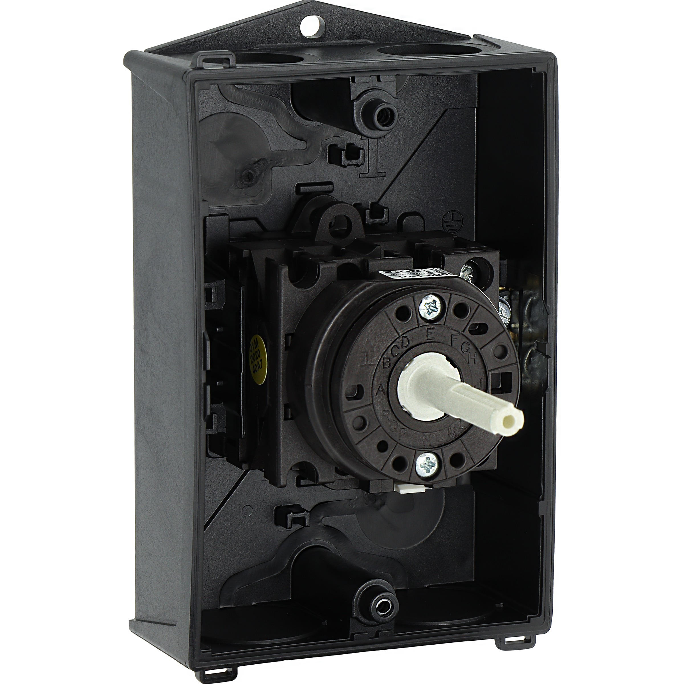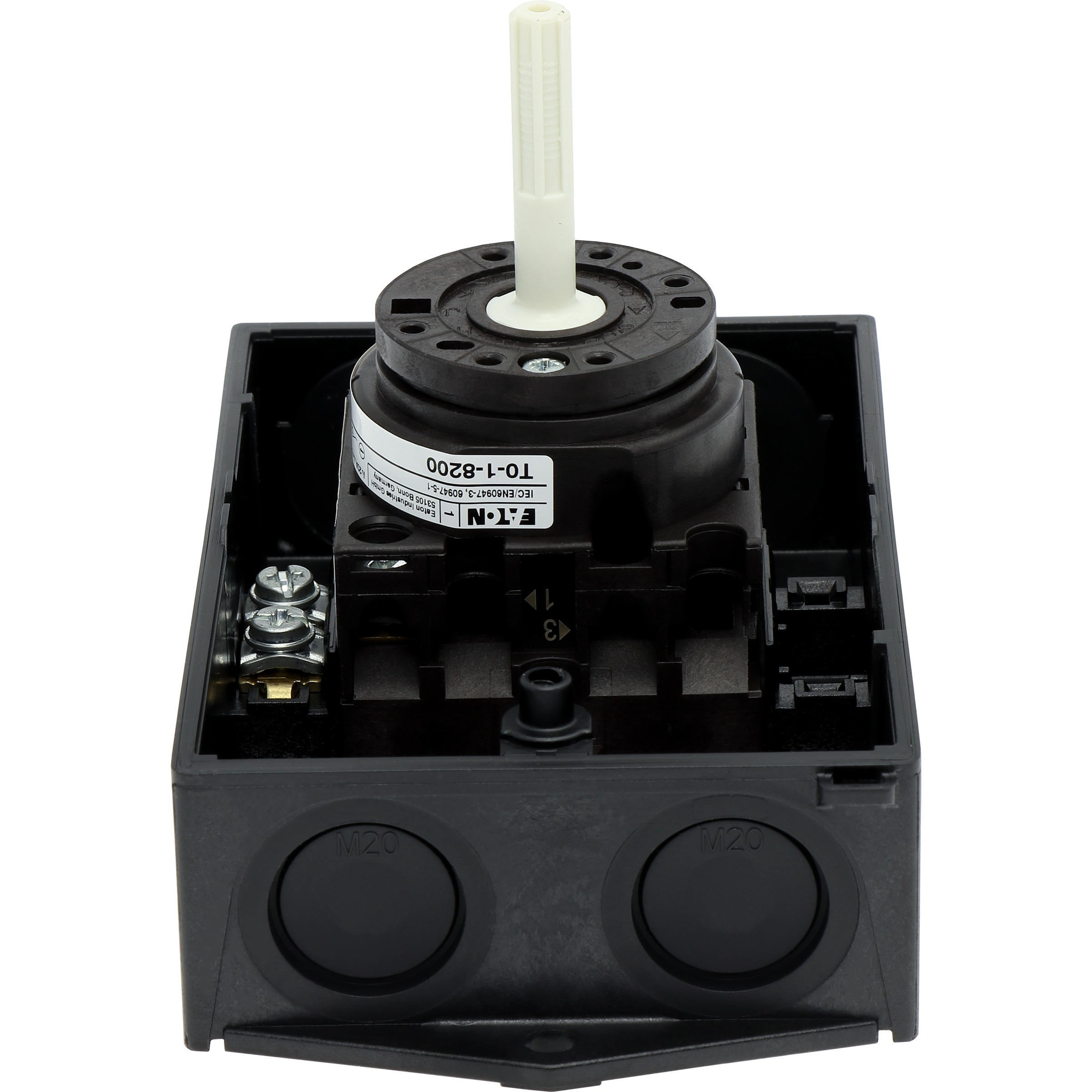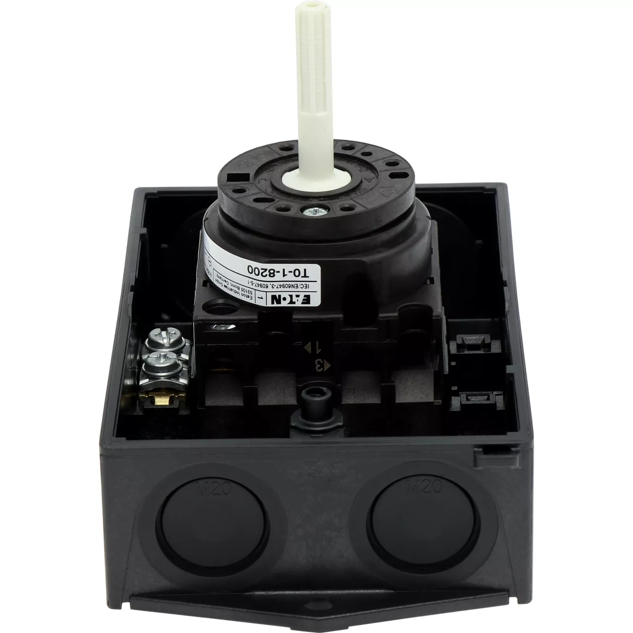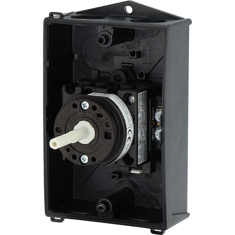 Wyłącznik główny, Zacisk śrubowy: Wyłącznik główny, wyłącznik serwisowy, Wyłącznik naprawczy, Odniesienie grupy części T0, Funkcja zatrzymania: Funkcja wyłączania awaryjnego, z czerwonym uchwytem obrotowym i żółtym pierścieniem blokującym, 1-biegunowy, Element blokujący: Możliwość zablokowania w położeniu 0 (Wył.), Stopień ochrony: IP65, Projekt: montaż powierzchniowy, Kąt przełączania: 90°, Moc znamionowa AC-23A, 50 - 60 Hz 400 V: P = 5,5 kW, Znamionowy prąd ciągły: Iu = 20 A, 1 zespoł montażowy, Normy: IEC/EN 60947, VDE 0660, IEC/EN 60204, Rozłącznik izolacyjny zgodnie z normą IEC/EN 60947-3