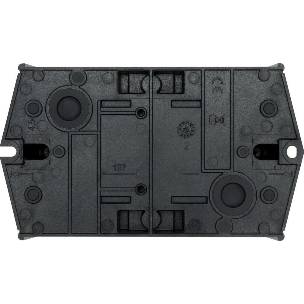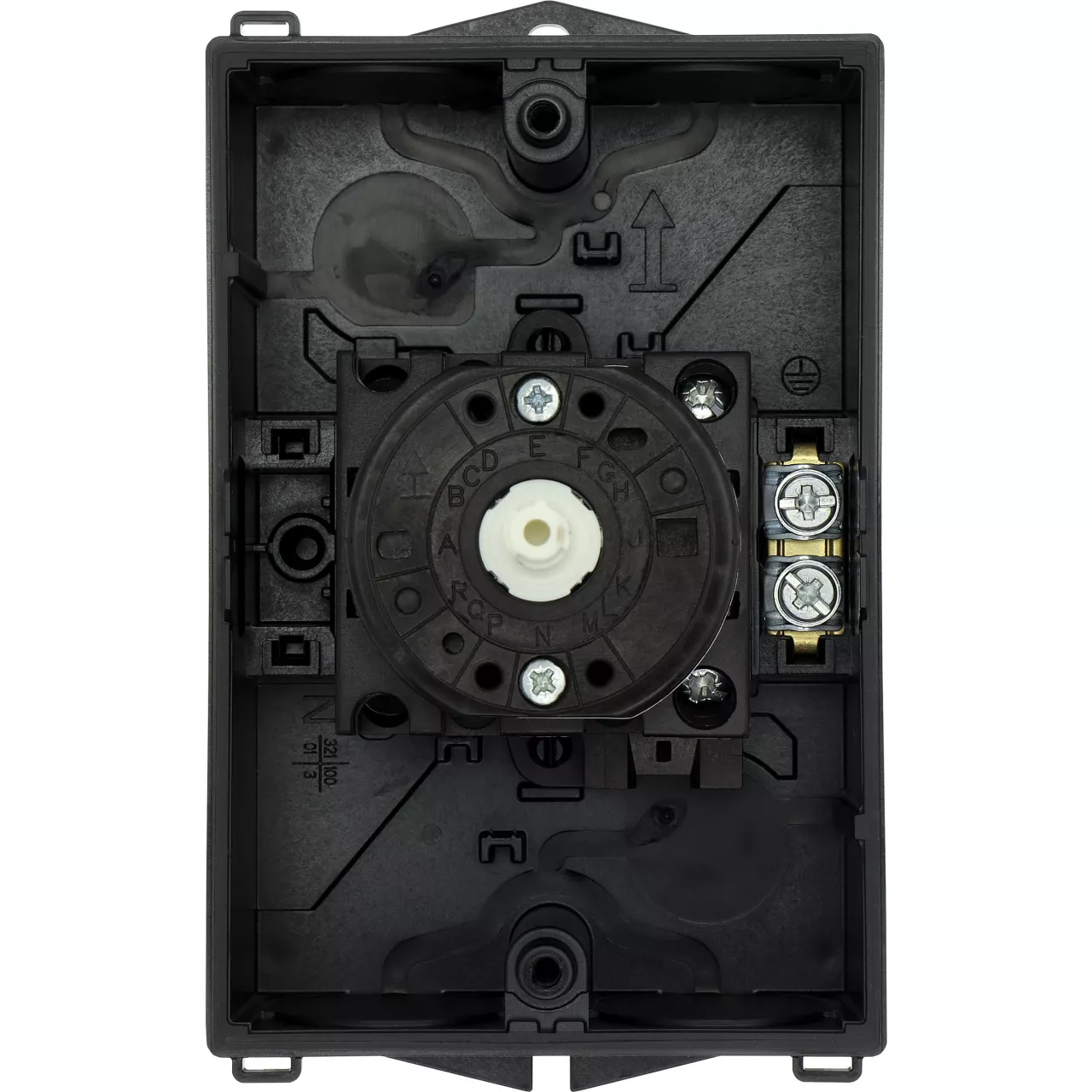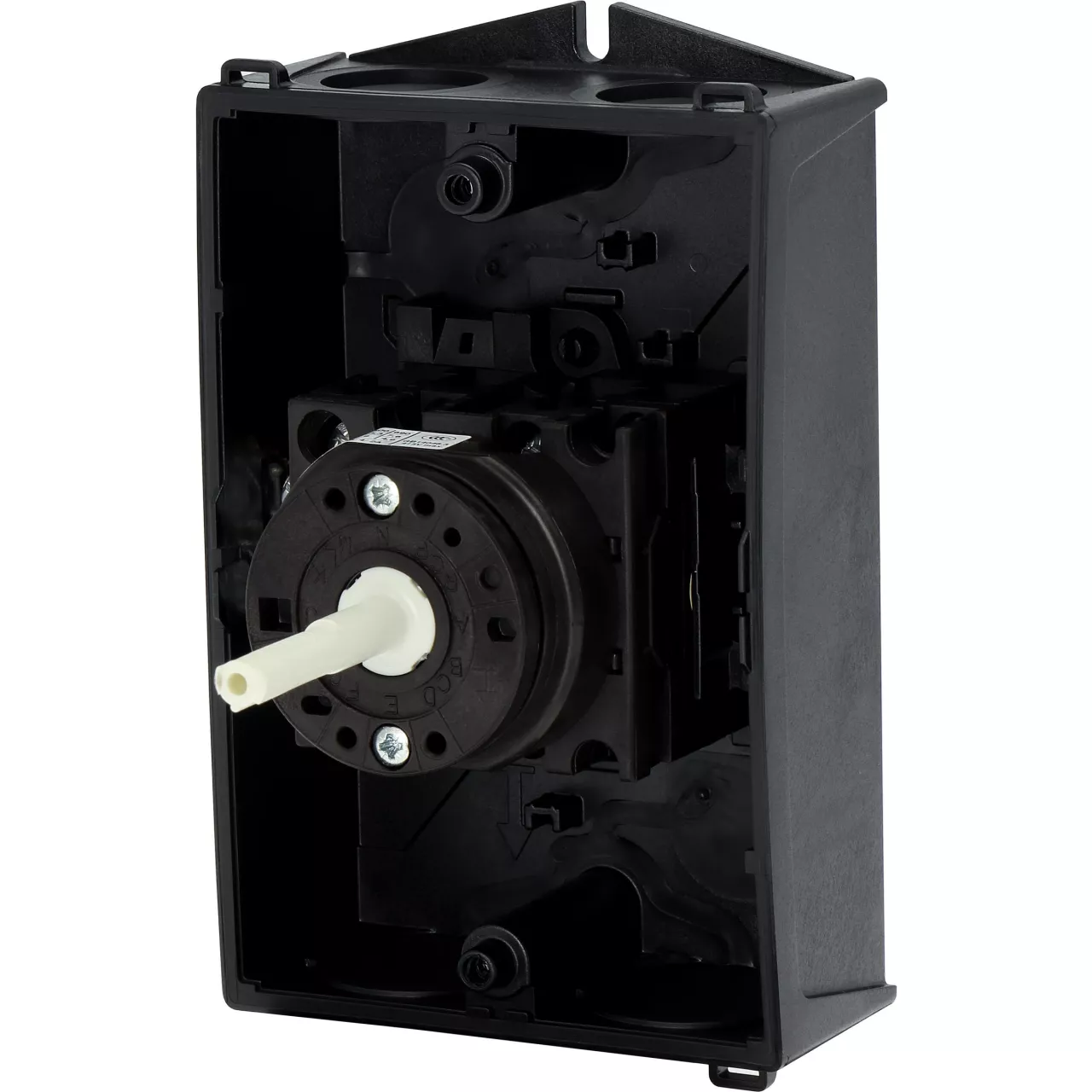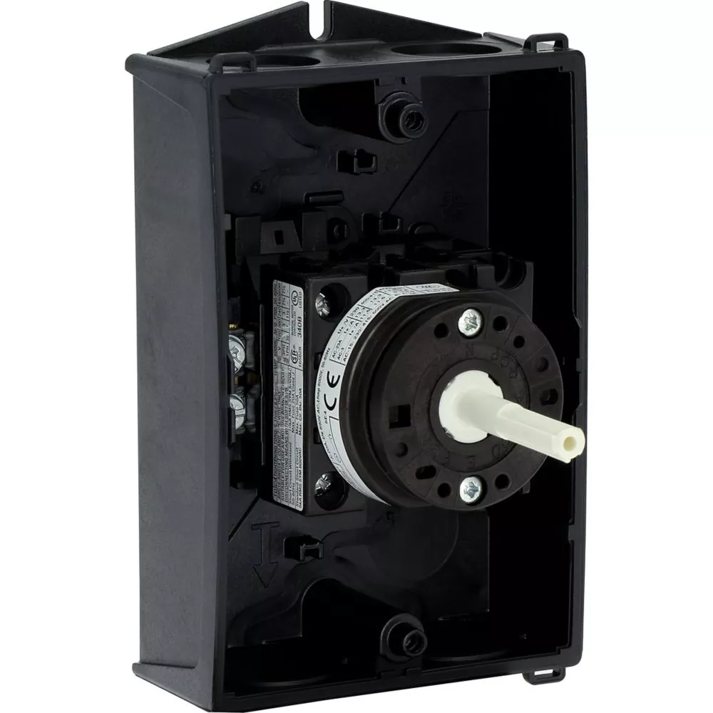 Wyłącznik główny, Zacisk śrubowy: Wyłącznik główny, wyłącznik serwisowy, Wyłącznik naprawczy, Odniesienie grupy części T0, Funkcja zatrzymania: Funkcja STOP, Z czarnym uchwytem obrotowym i pierścieniem blokującym, 3-biegunowy, Element blokujący: Możliwość zablokowania w położeniu 0 (Wył.), Stopień ochrony: IP65, Projekt: montaż powierzchniowy, Kąt przełączania: 90°, Moc znamionowa AC-23A, 50 - 60 Hz 400 V: P = 5,5 kW, Znamionowy prąd ciągły: Iu = 20 A, 2 zespoł montażowy, Normy: IEC/EN 60947, VDE 0660, IEC/EN 60204, Rozłącznik izolacyjny zgodnie z normą IEC/EN 60947-3