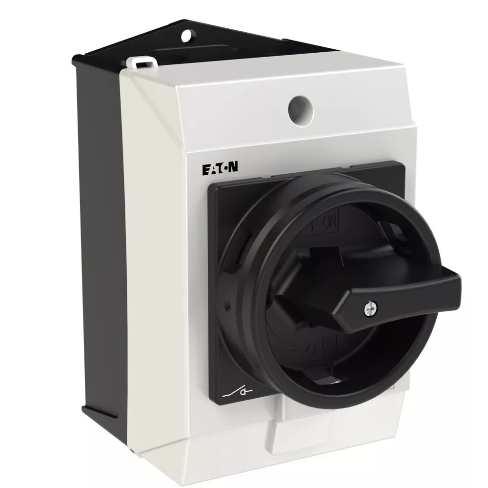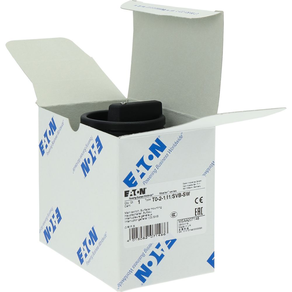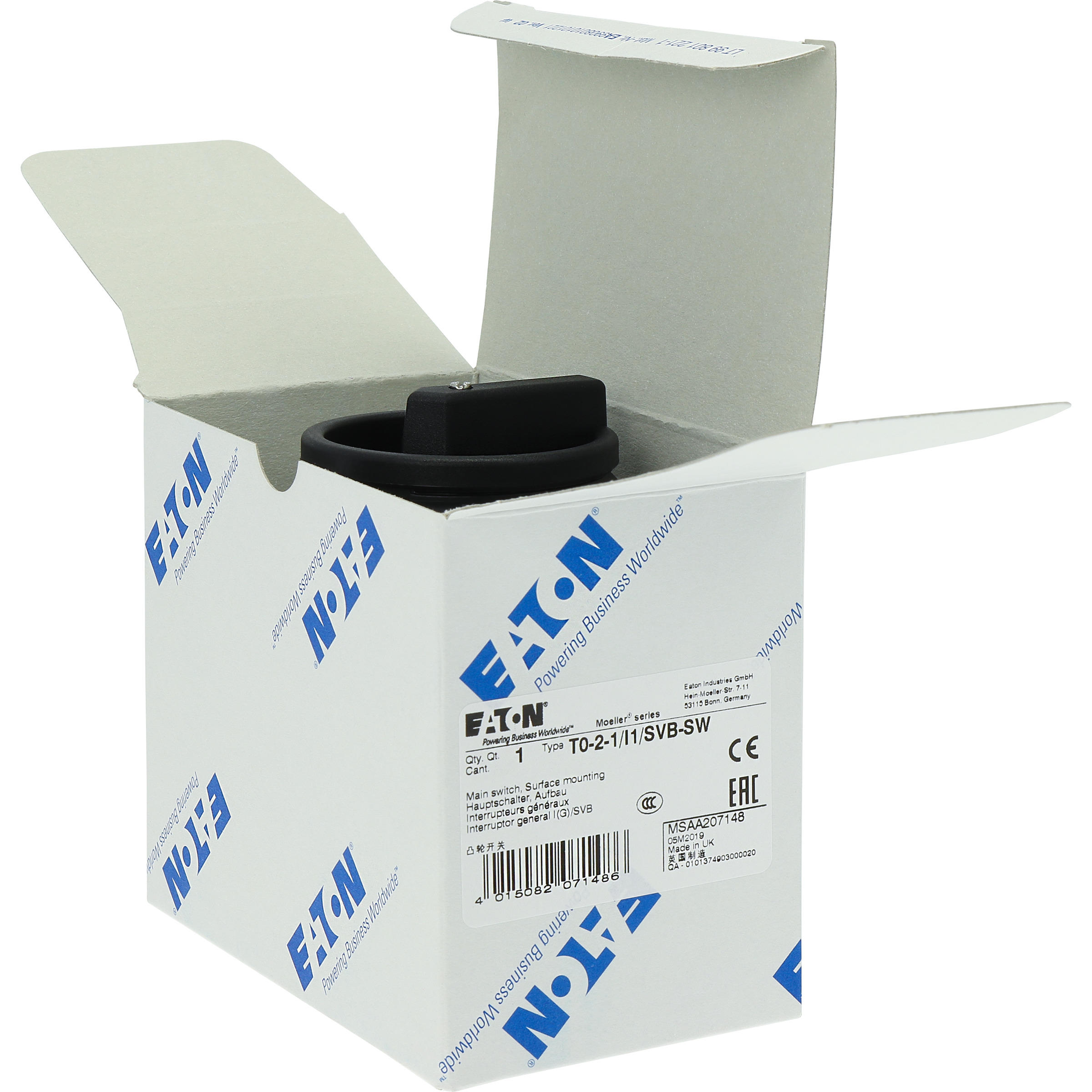 T0-2-1/I1/SVB-SW Przełącznik Zał.-Wył., 3 bieg., 20 A, 90 °, w obudowie IP65, pokrętło czarne z blokadą na kłódkę