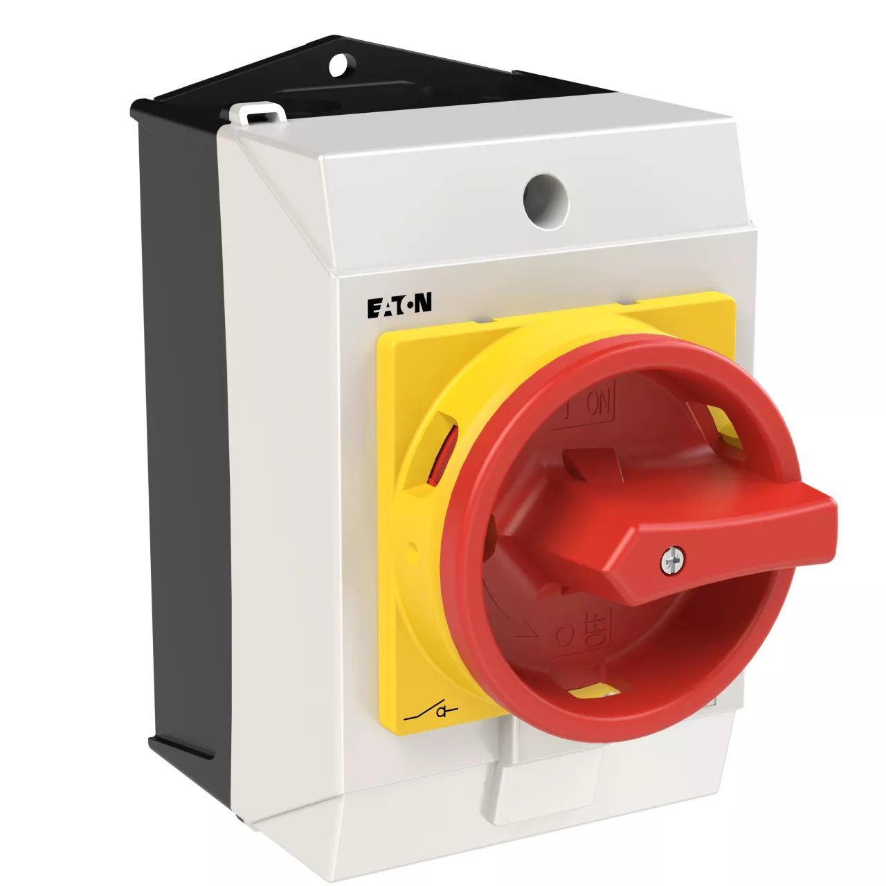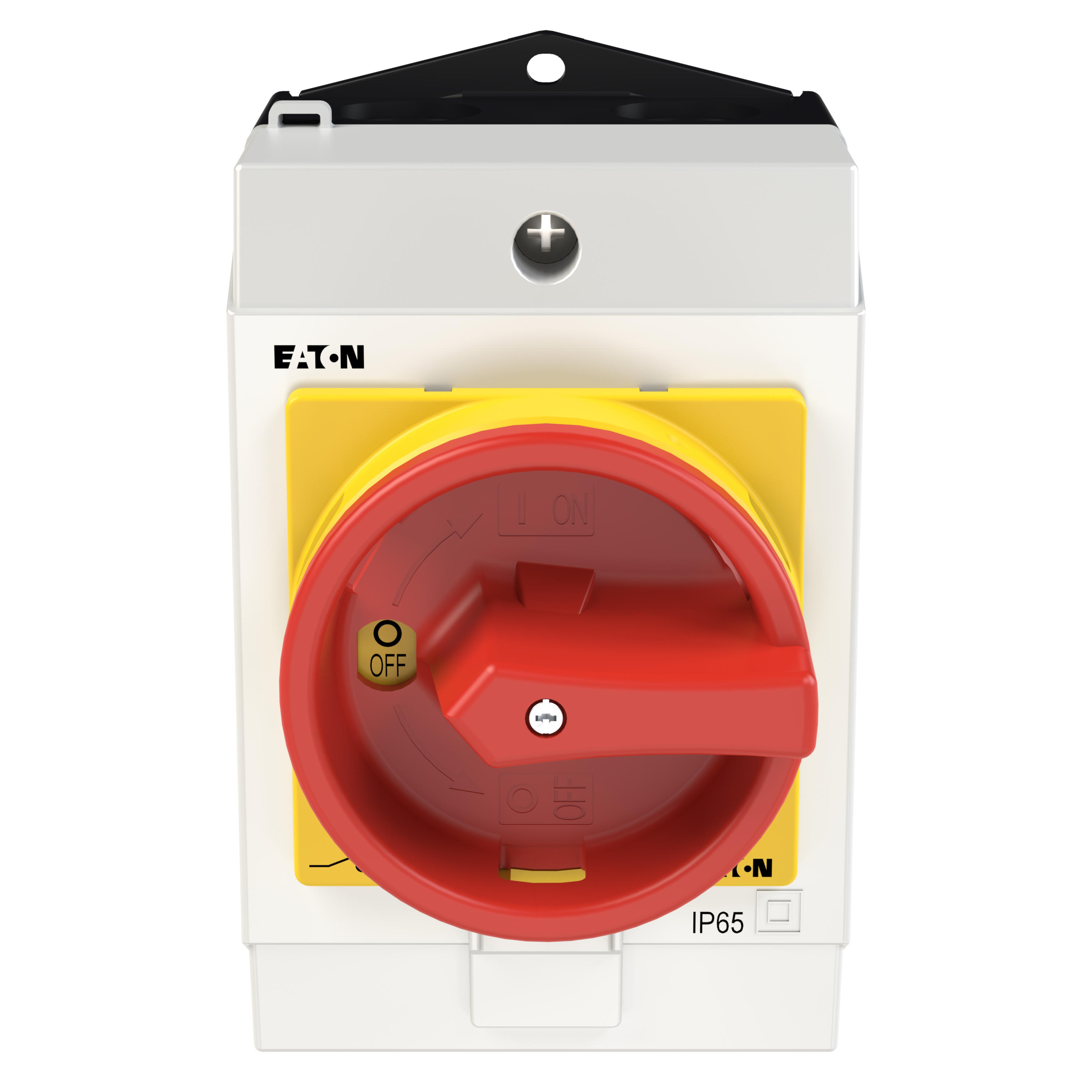 T0-2-15679/I1/SVB Przełącznik Zał.-Wył., 3 bieg. + 1 NO, 20 A, 90 °, w obudowie IP65, pokrętło czerwono-żółte z blokadą na kłódkę