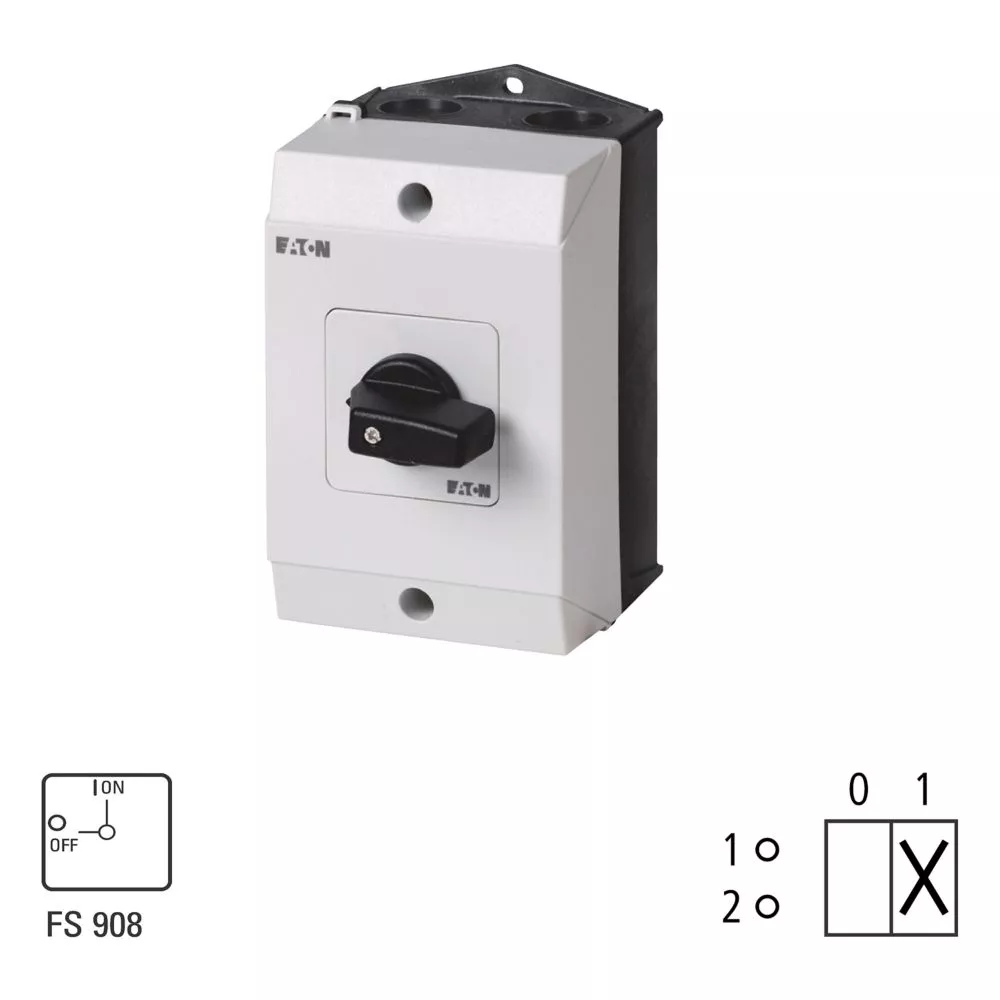 T3-1-8200/I2 Przełącznik Zał.-Wył., Styki: 2, 32A, tabliczka: 0-1, 90°, bez samopowrotu, w obudowie IP65, pokrętło czarne bez możliwości blokady