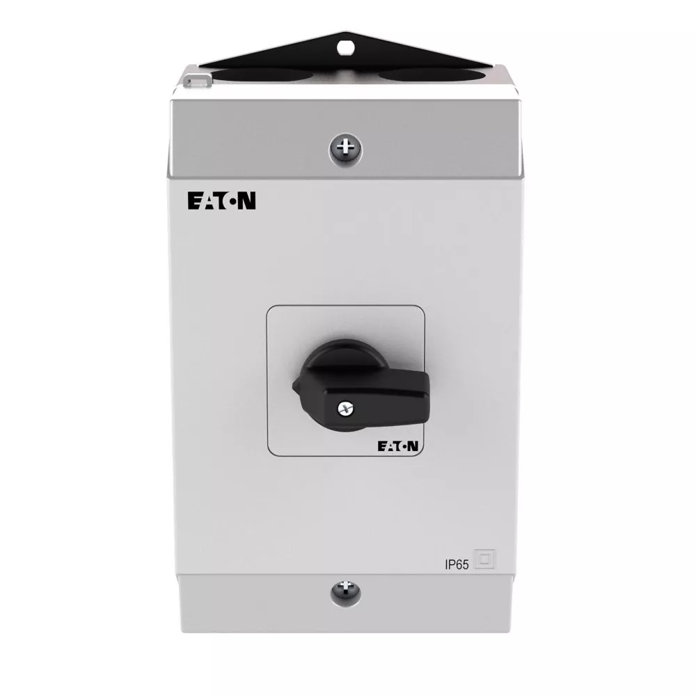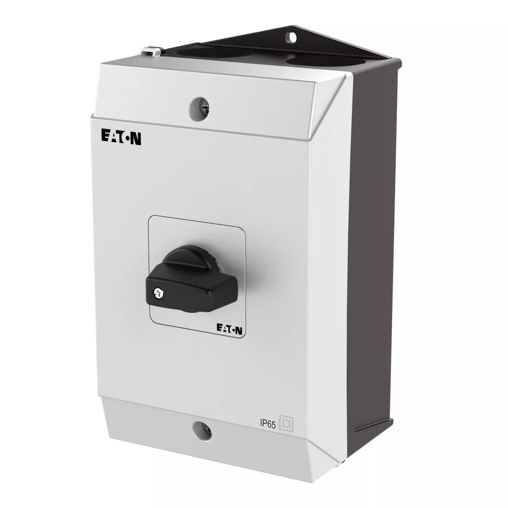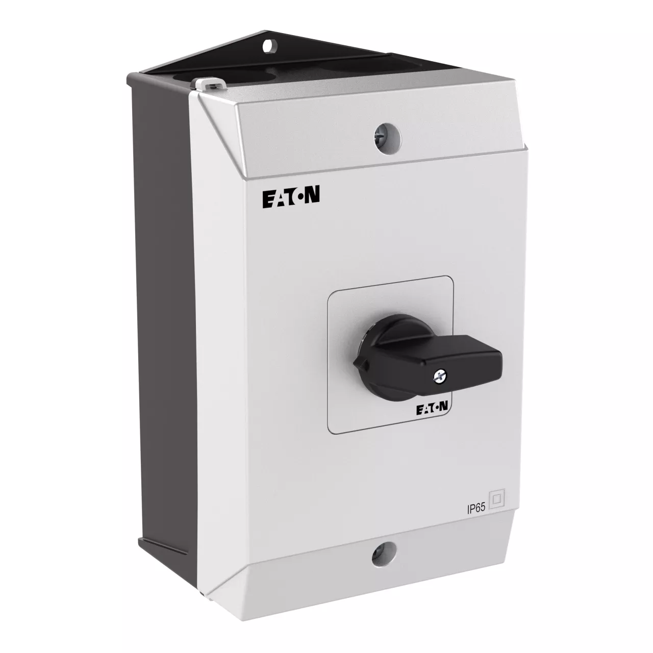 T3-2-8215/I2 Przełącznik zasilania, Styki: 4, 32 A, tabliczka: 201, 45 °, z samopowrotem, w obudowie IP65, pokrętło czarne bez możliwości blokady
