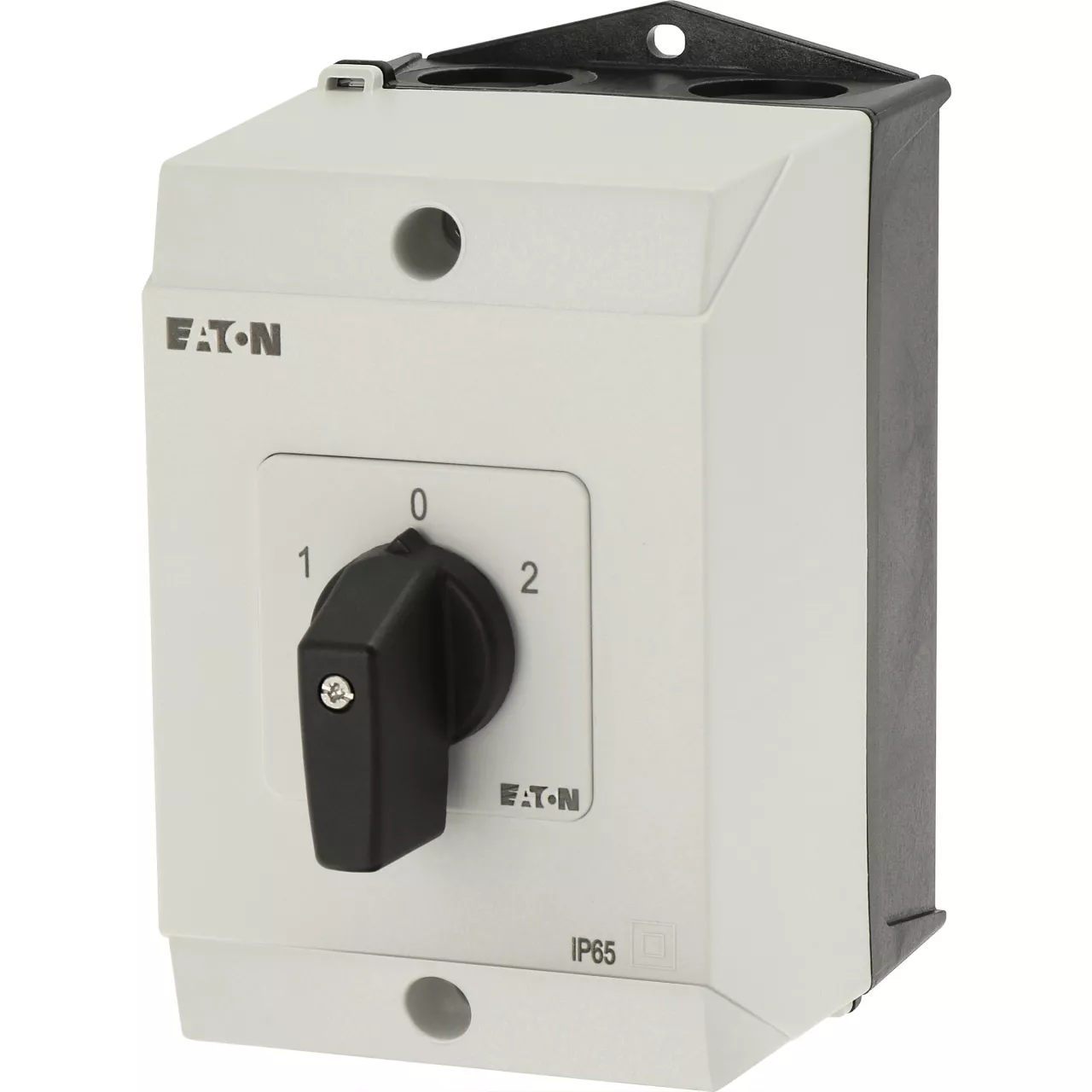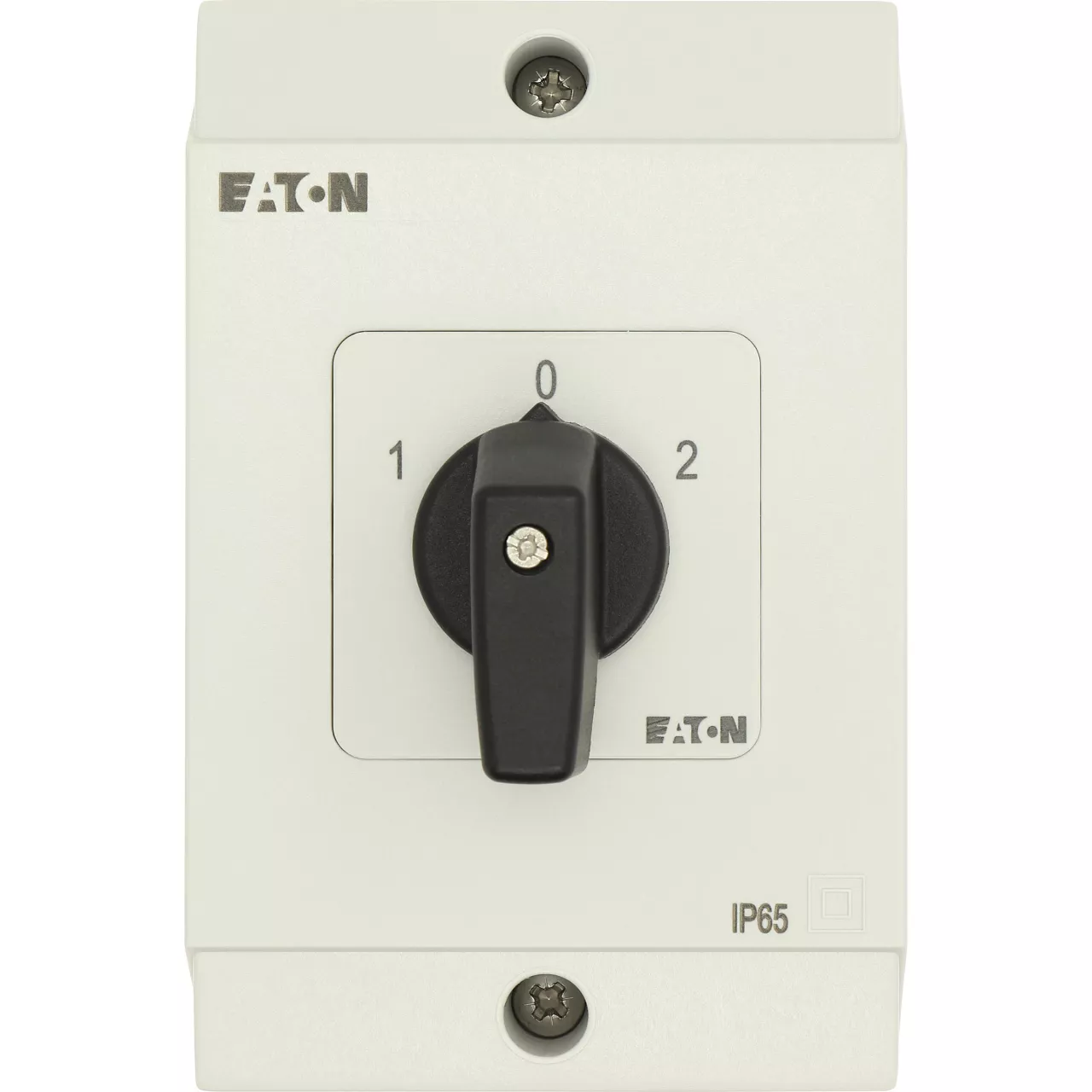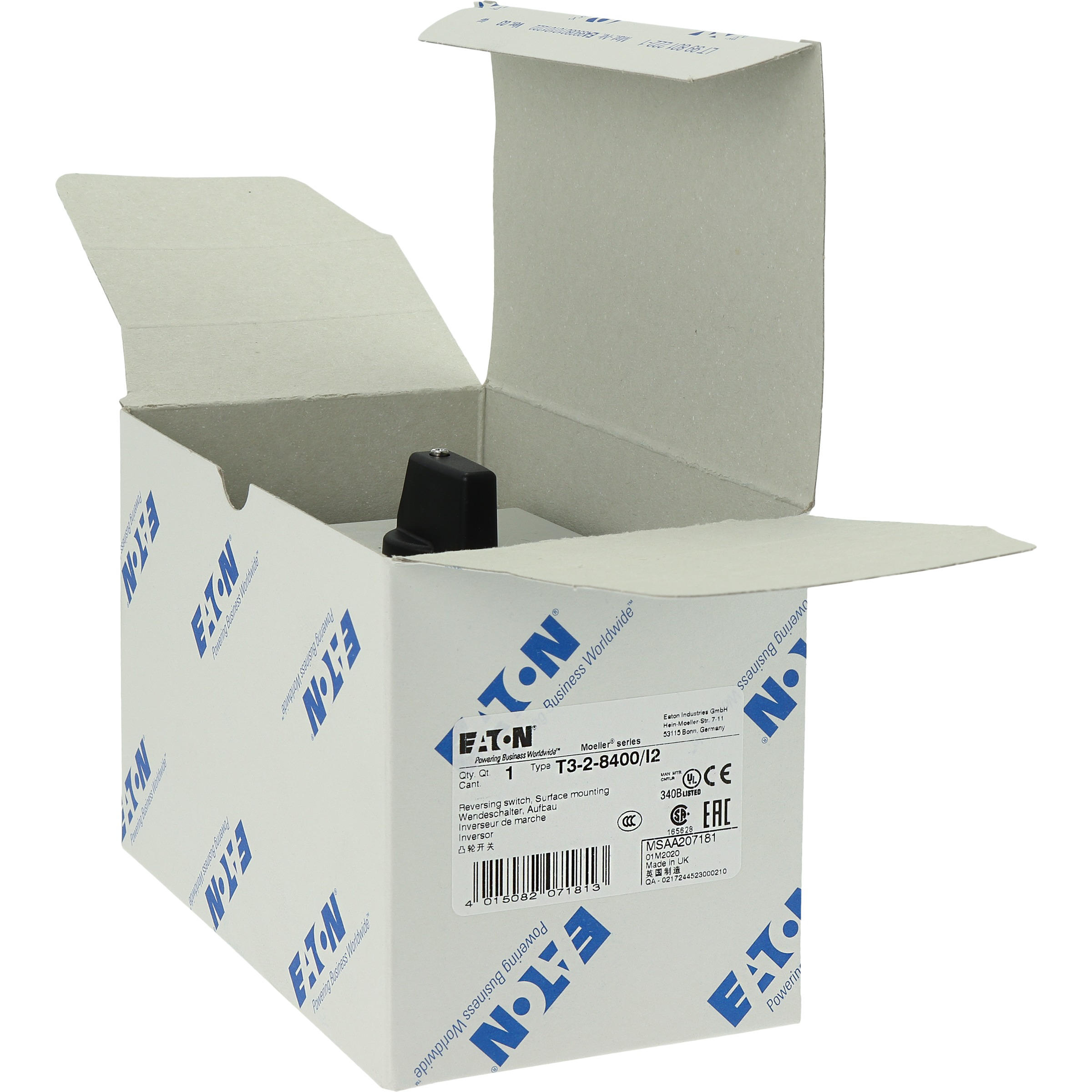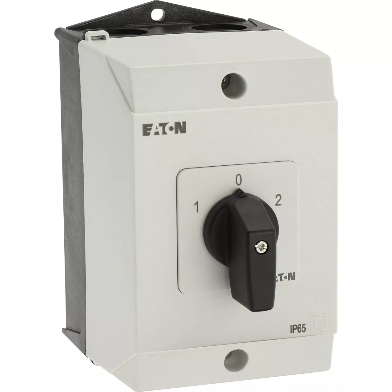 T3-2-8400/I2 Przełącznik nawrotny, Styki: 4, 32 A, tabliczka: 1-0-2, 45 °, bez samopowrotu, w obudowie IP65, pokrętło czarne bez możliwości blokady