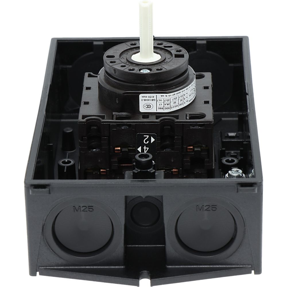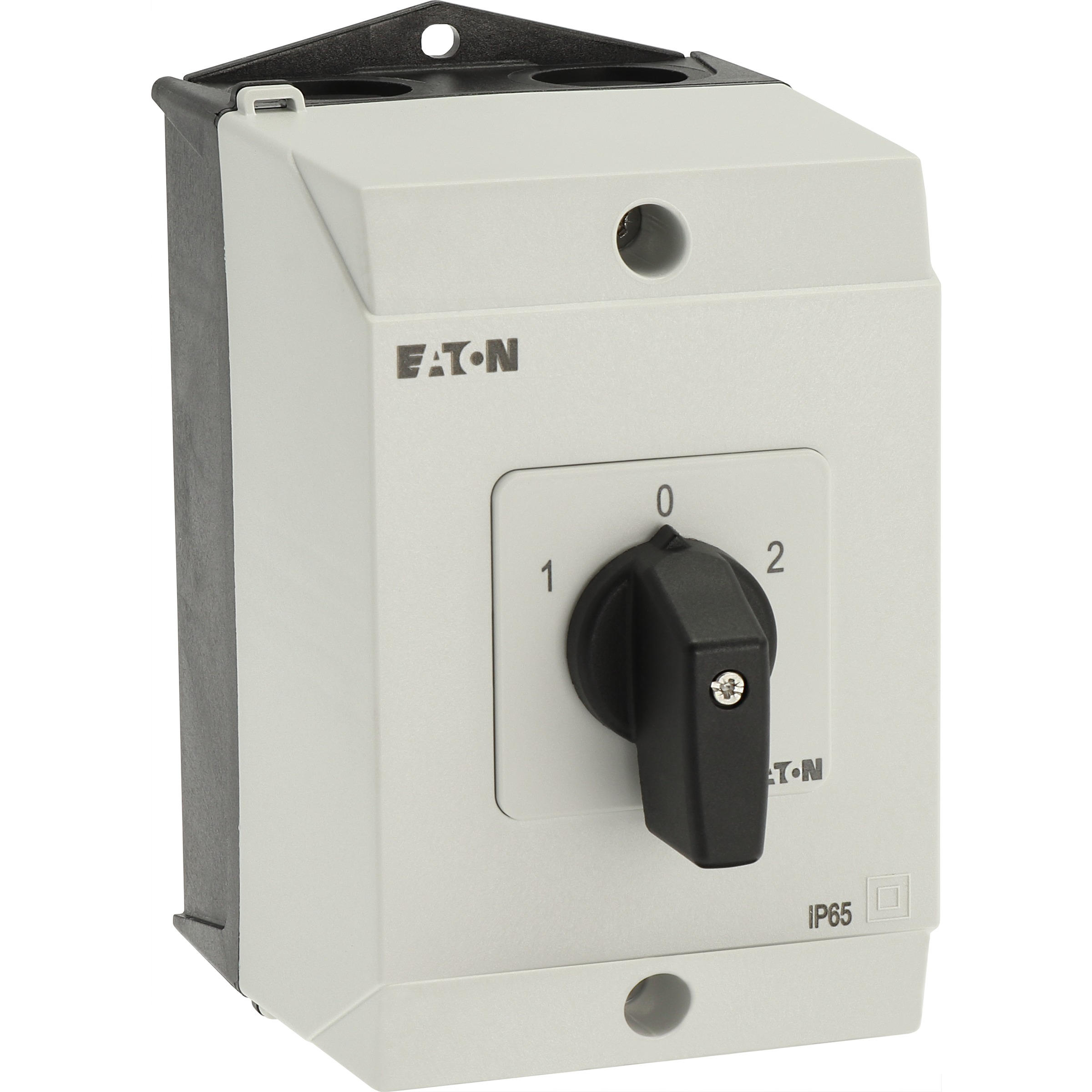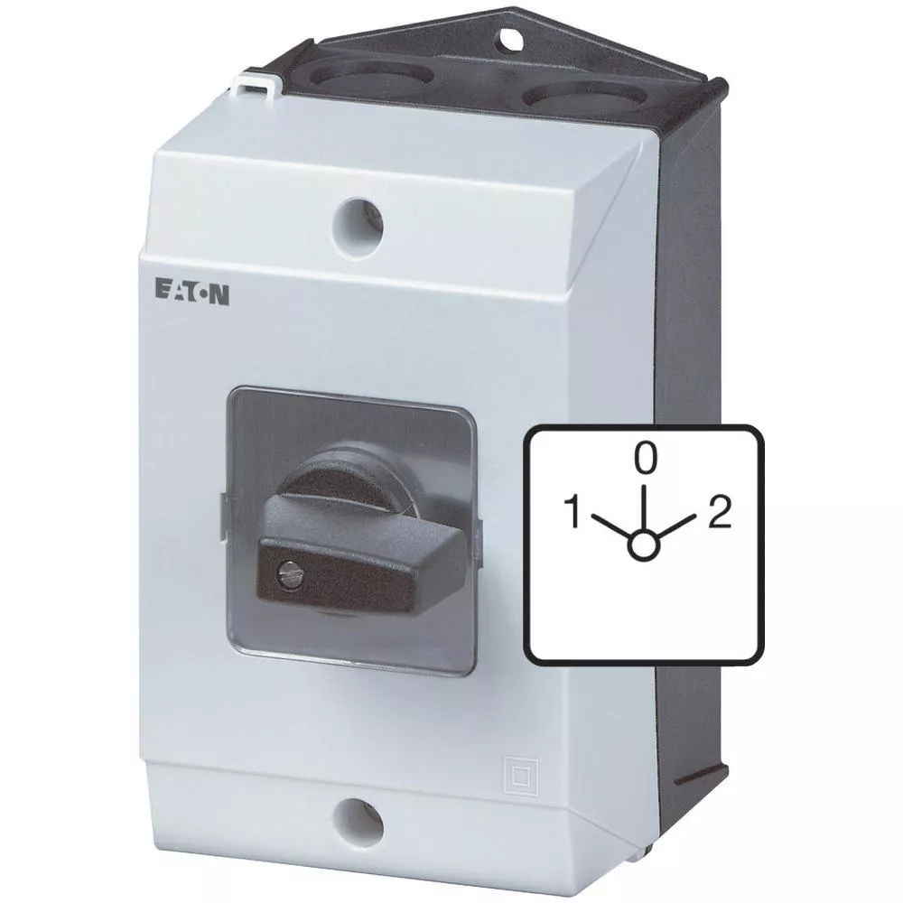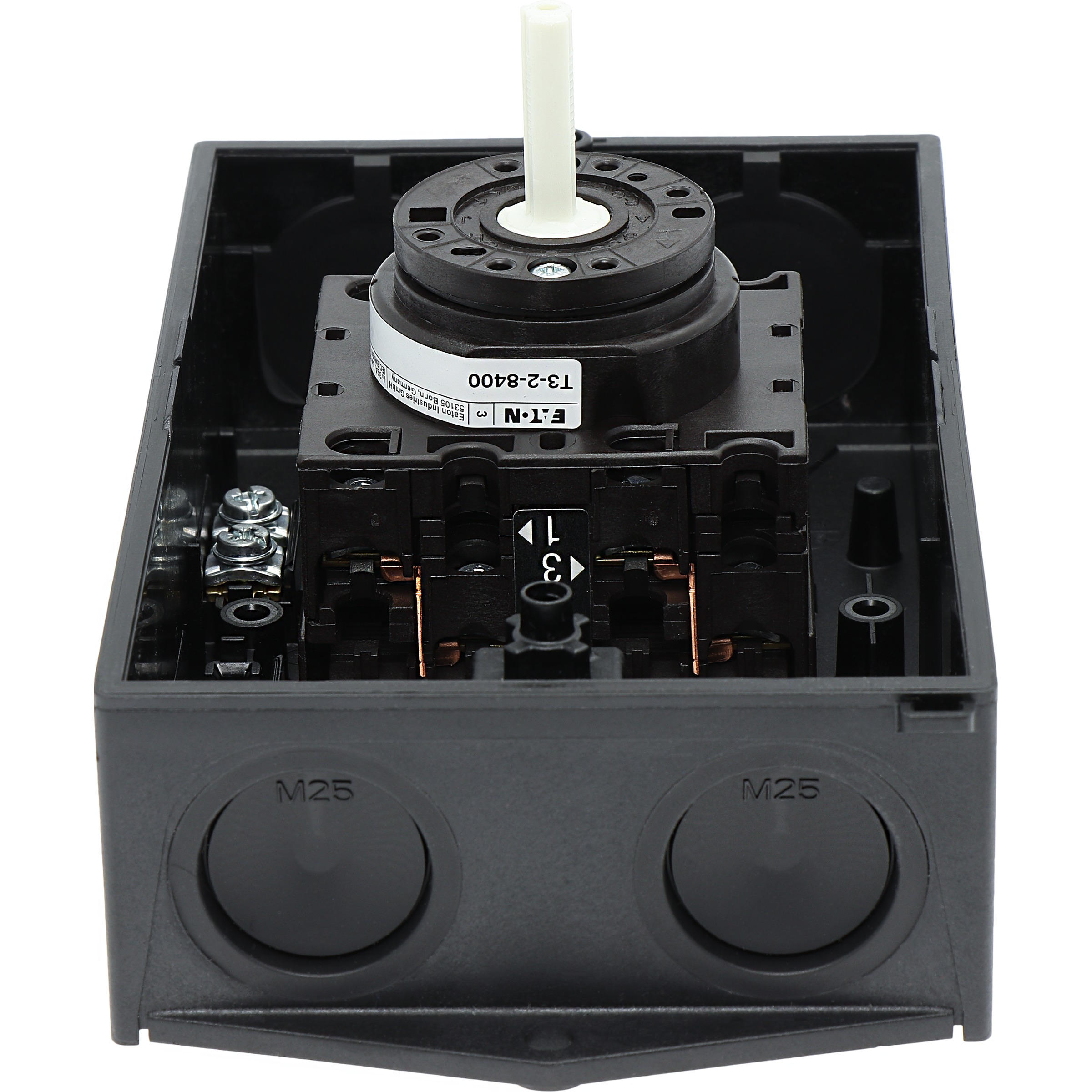 T3-2-8400/I2 Przełącznik nawrotny, Styki: 4, 32 A, tabliczka: 1-0-2, 45 °, bez samopowrotu, w obudowie IP65, pokrętło czarne bez możliwości blokady