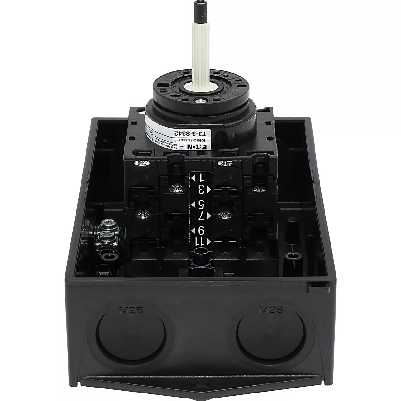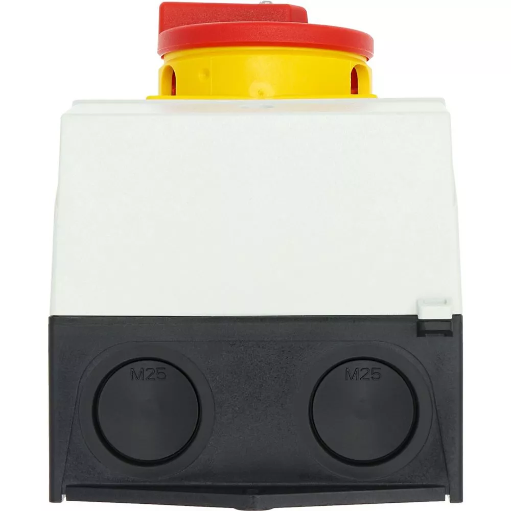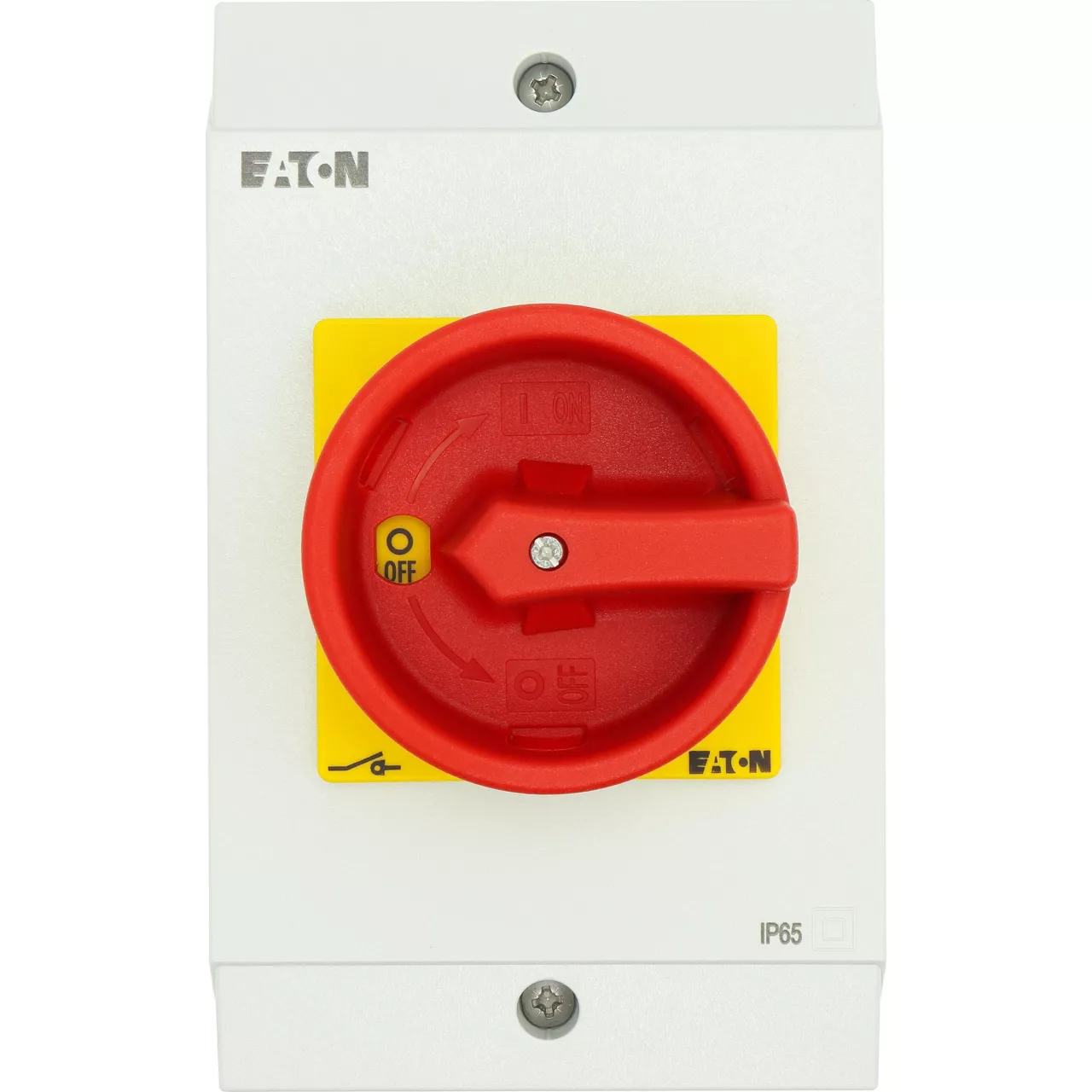 T3-3-8342/I2/SVB Przełącznik Zał.-Wył., 6 bieg., 32 A, 90 °, w obudowie IP65,pokrętło czerwono-żółte z blokadą na kłódkę