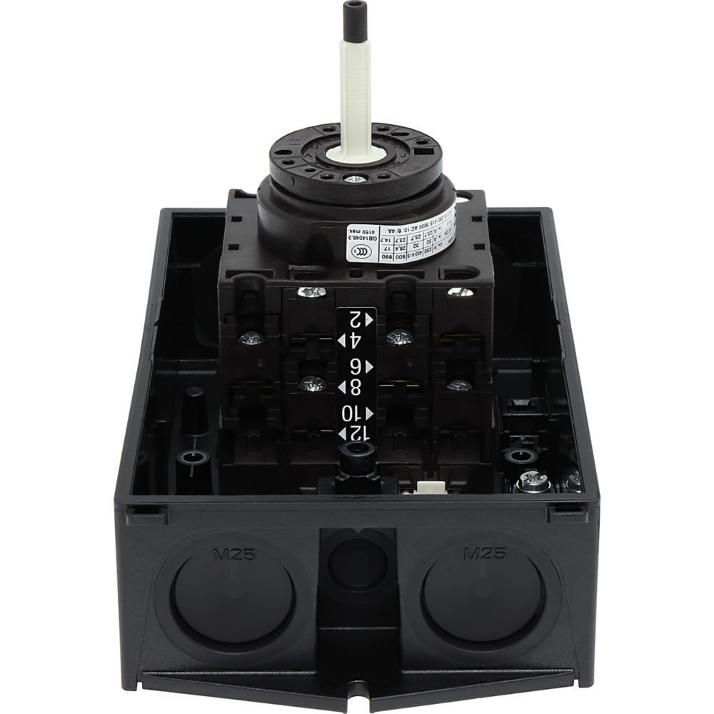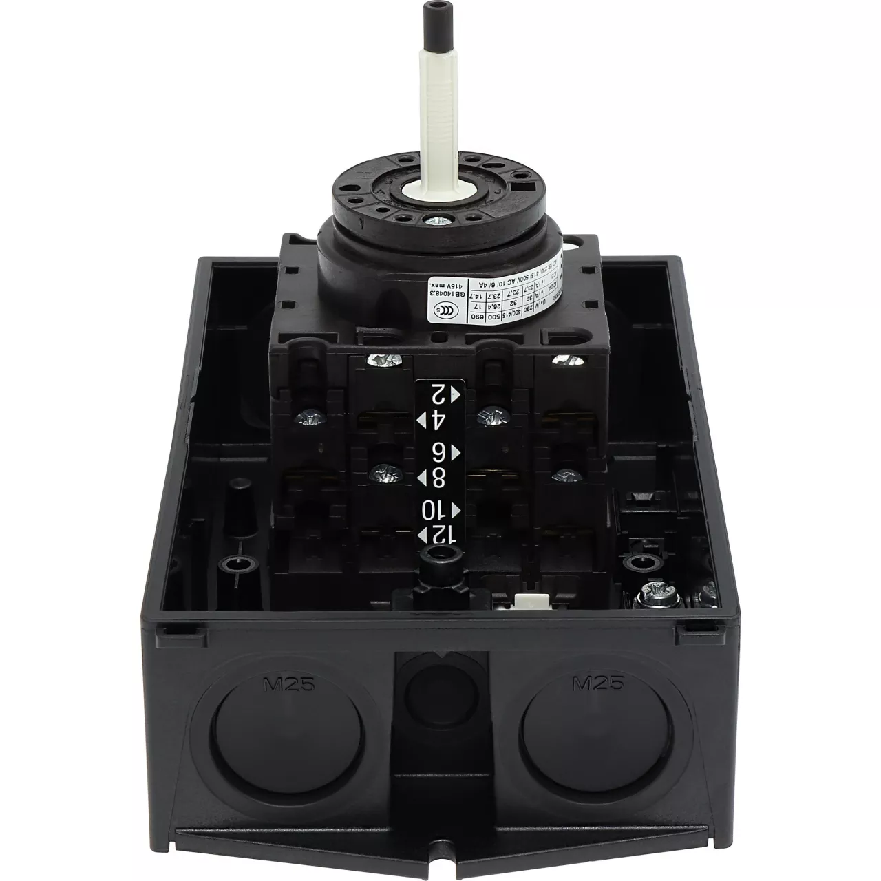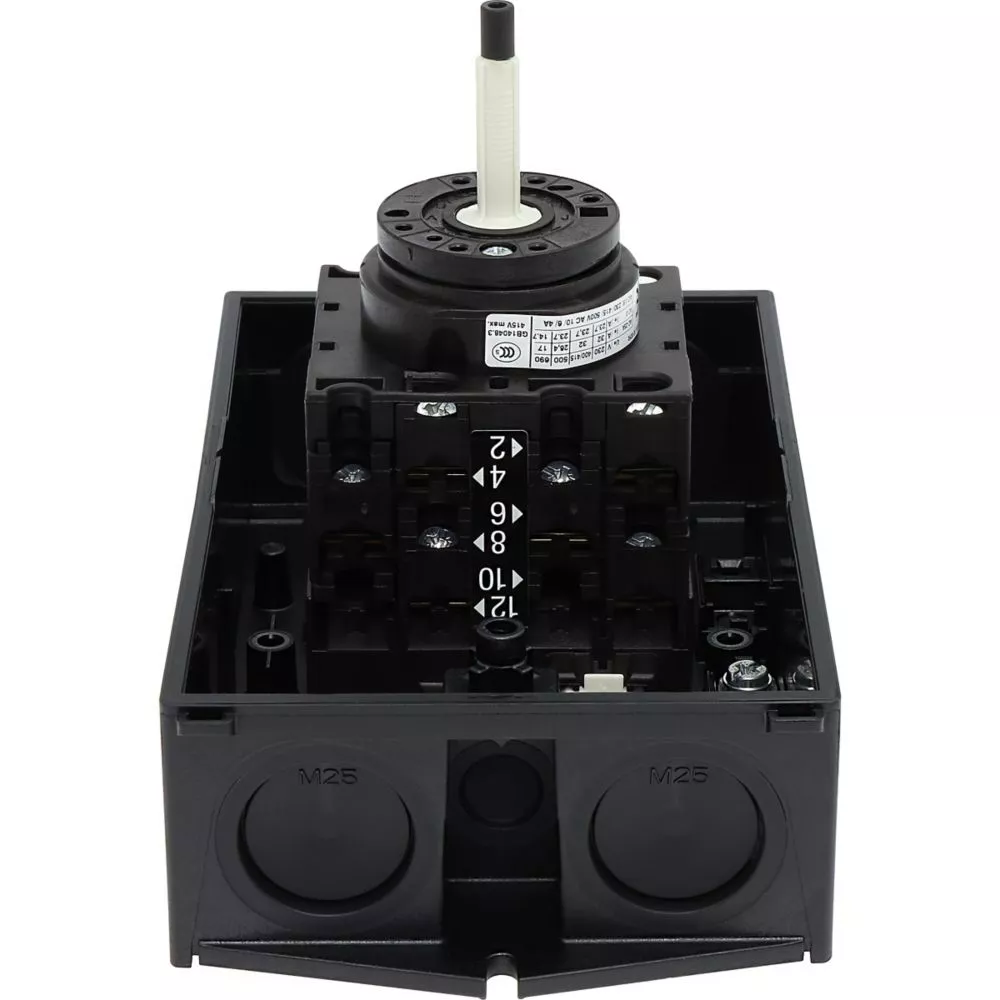 T3-3-8342/I2/SVB Przełącznik Zał.-Wył., 6 bieg., 32 A, 90 °, w obudowie IP65,pokrętło czerwono-żółte z blokadą na kłódkę