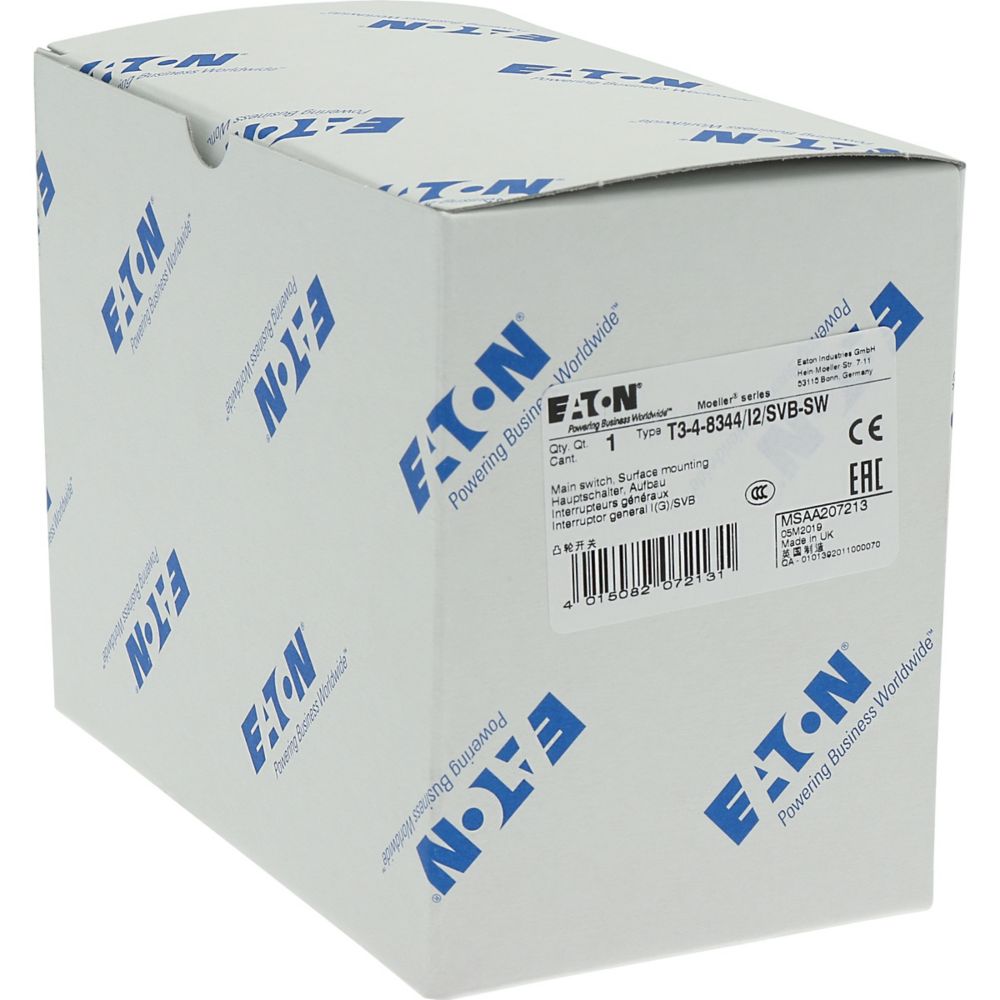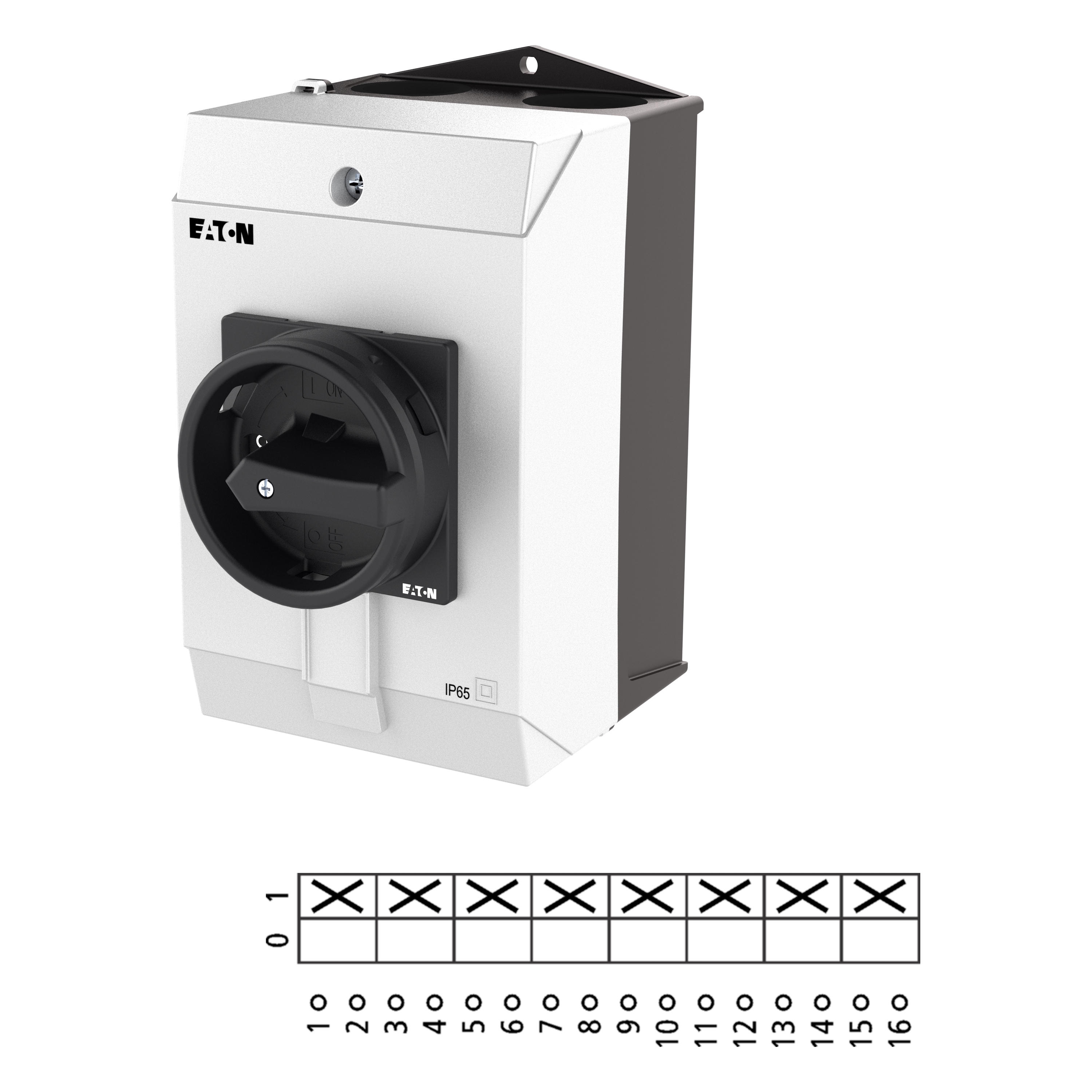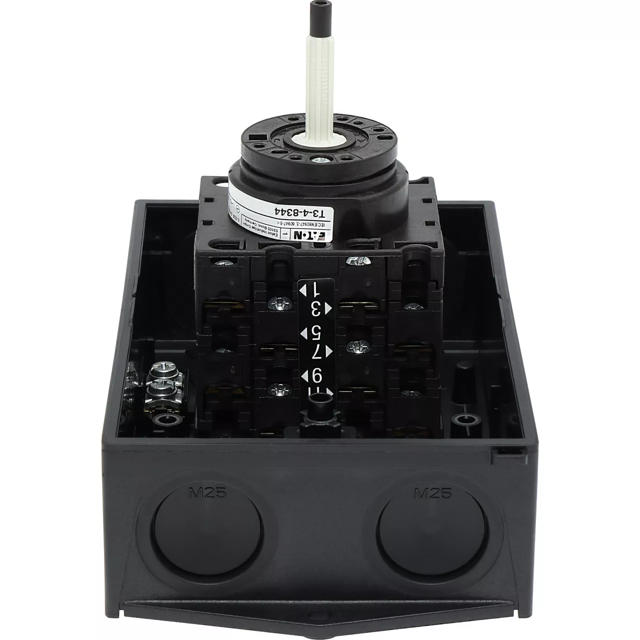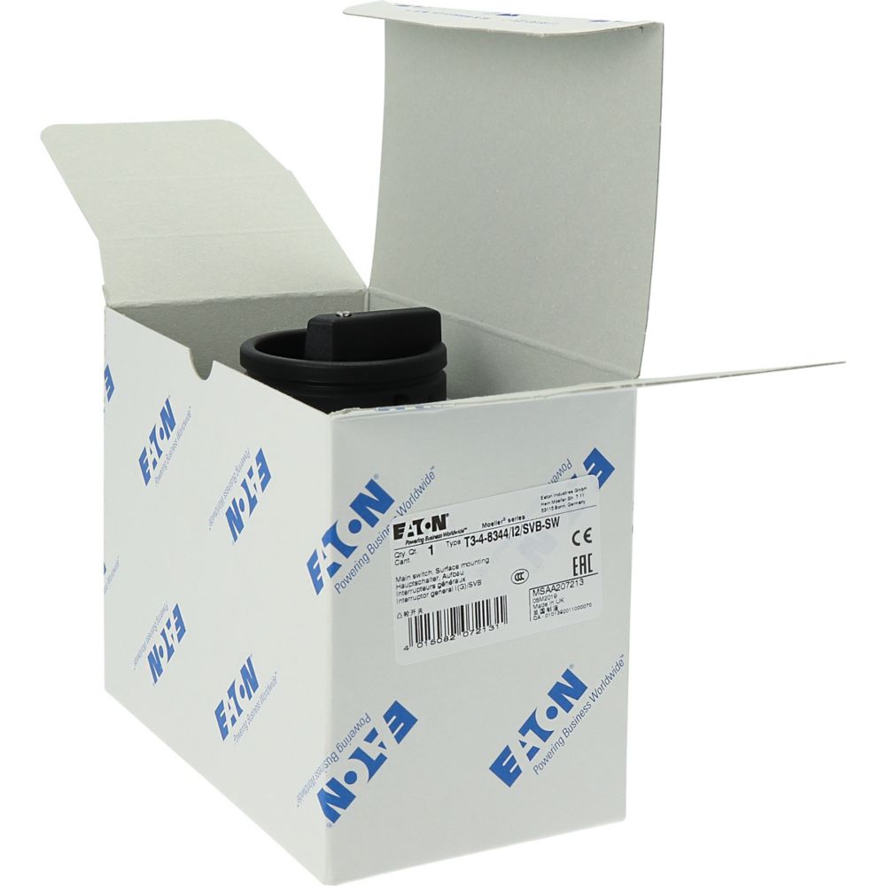 T3-4-8344/I2/SVB-SW Przełącznik Zał.-Wył., 8-bieg., 32 A, 90 °, w obudowie IP65, pokrętło czarne z blokadą na kłódkę