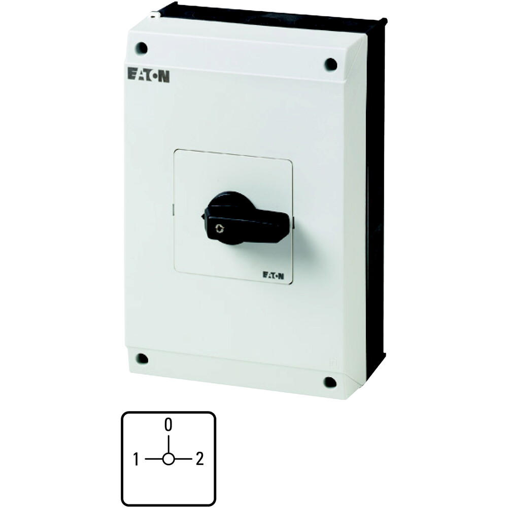 T5B-4-8294/I4 Przełącznik zasilania, Styki: 8, 63 A, tabliczka: 1-0-2, 90 °, bez samopowrotu, w obudowie IP65, pokrętło czarne bez możliwości blokady