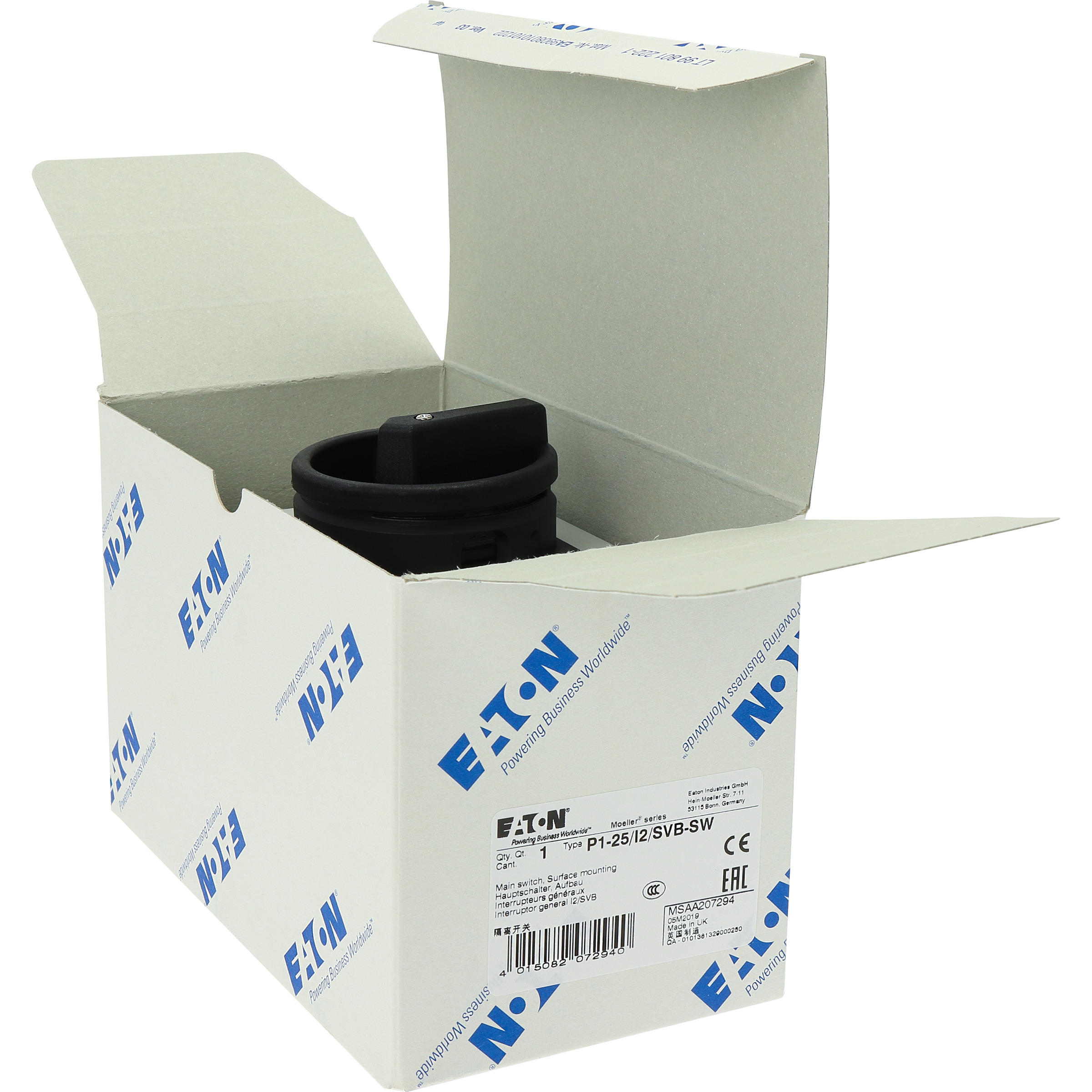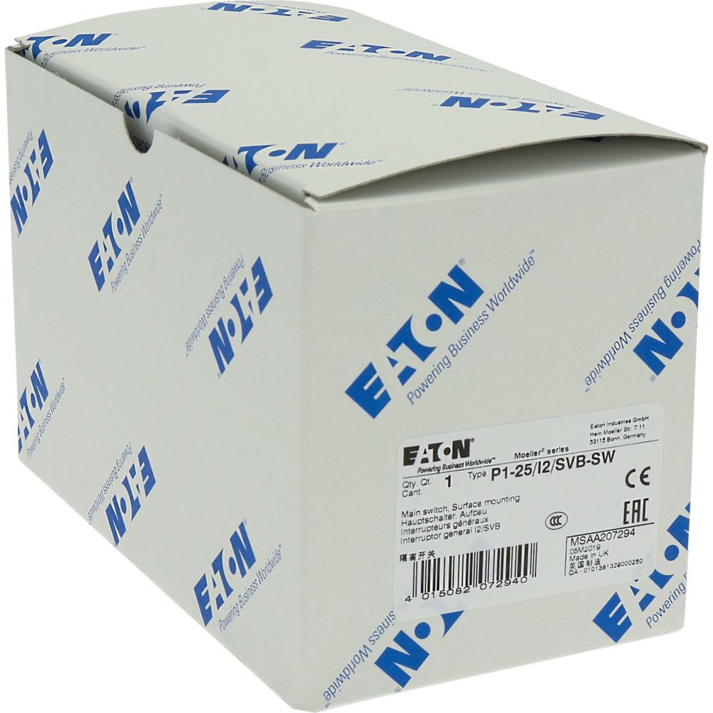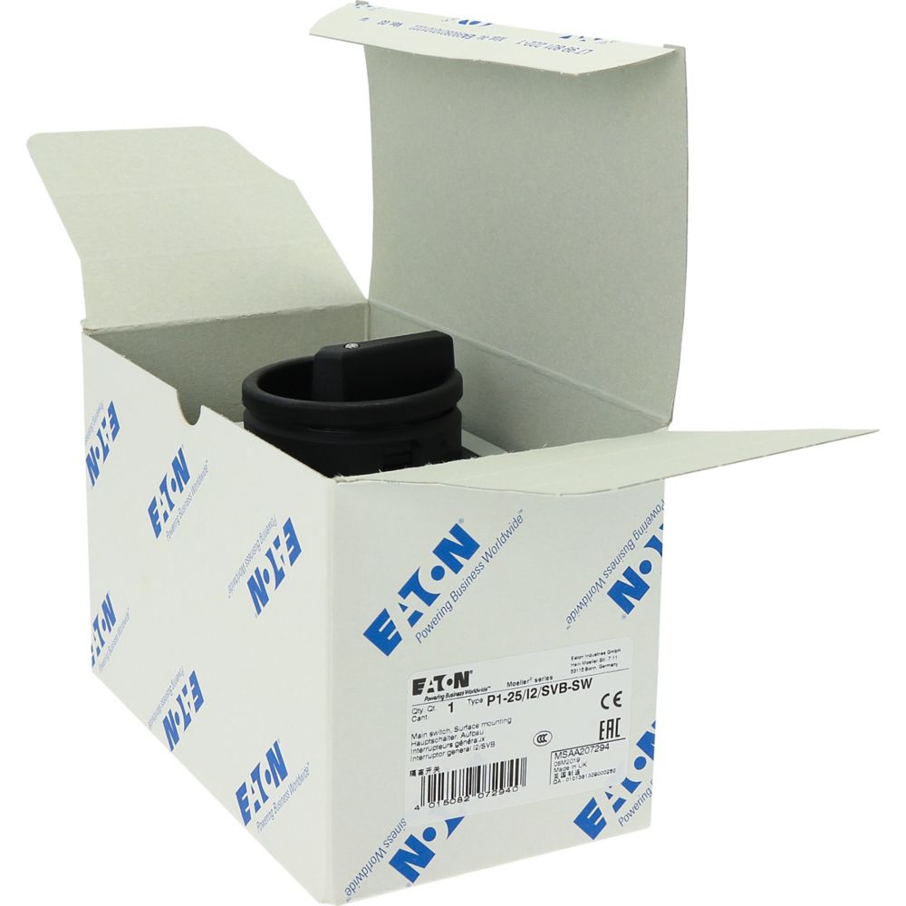 P1-25/I2/SVB-SW Rozłącznik główny, 3 bieg., 25 A, funkcja awaryjnego zatrzymania, blok. na kłódkę w pozycji Wył., w obudowie IP65, pokrętło czarne z blokadą na kłódkę