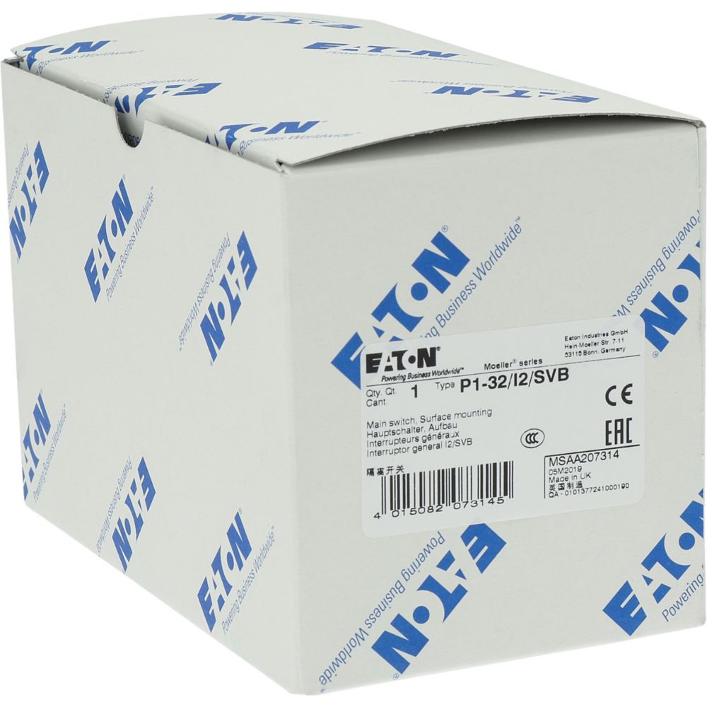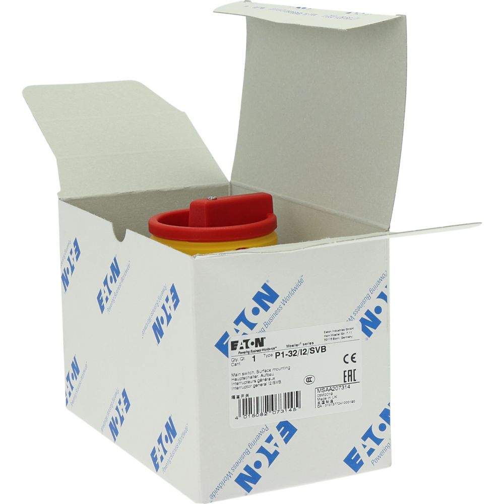 P1-32/I2/SVB Rozłącznik główny , 3 bieg., 32 A, w obudowie IP65, pokrętło czerwono-żółte z blokadą na kłódkę