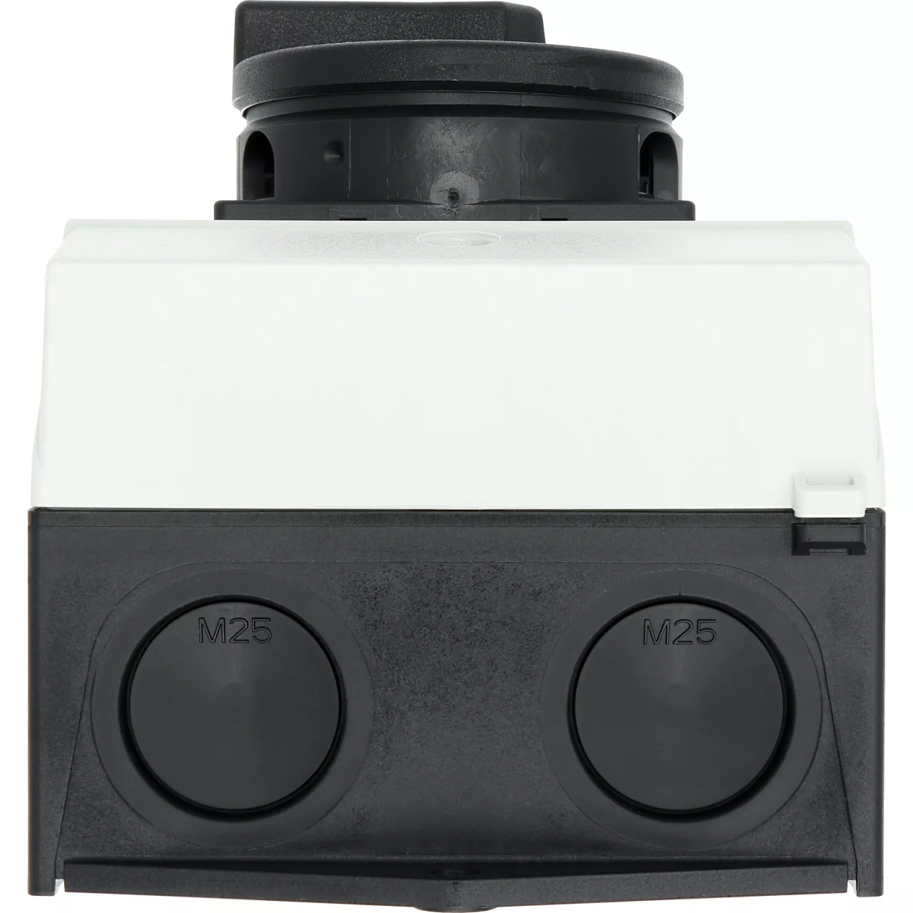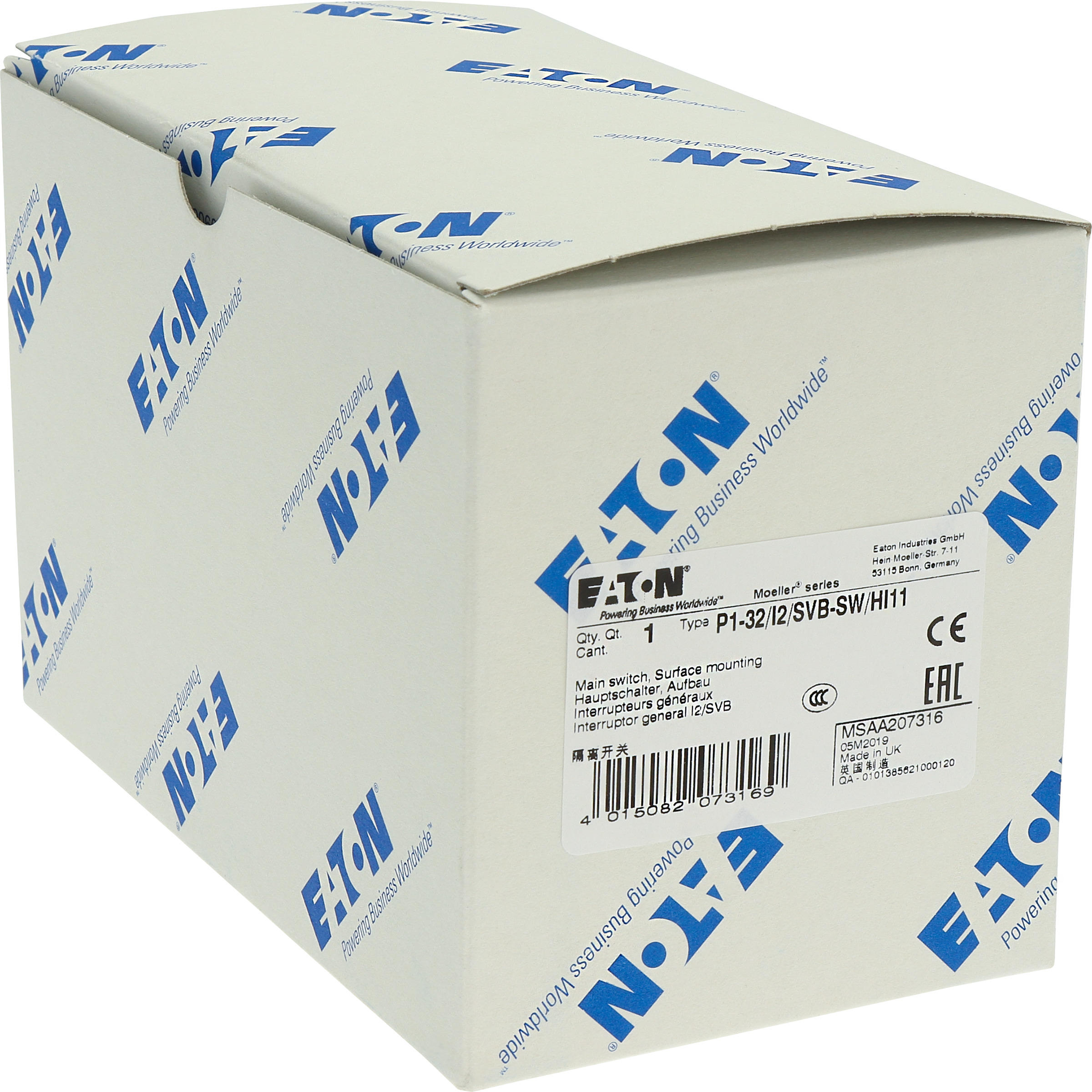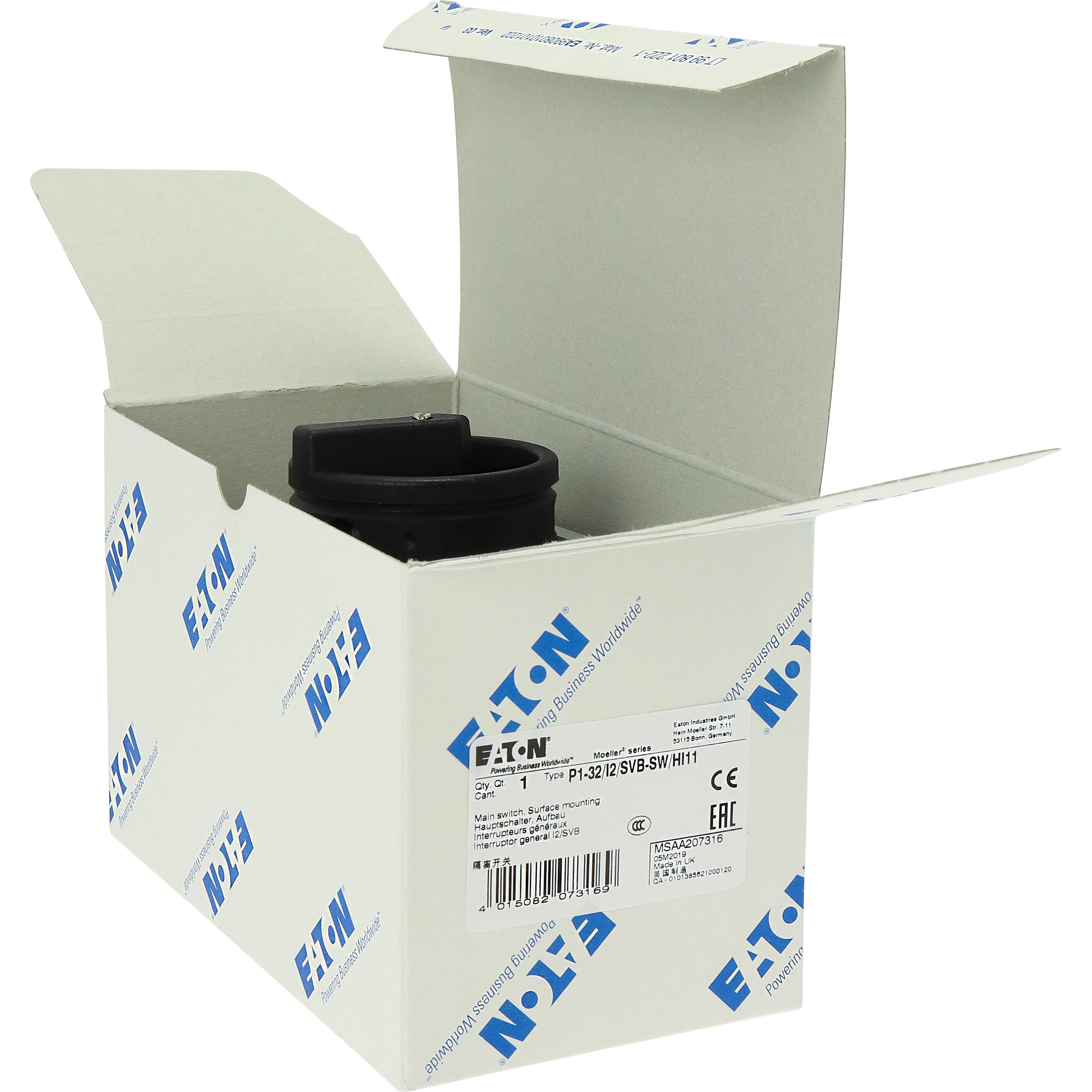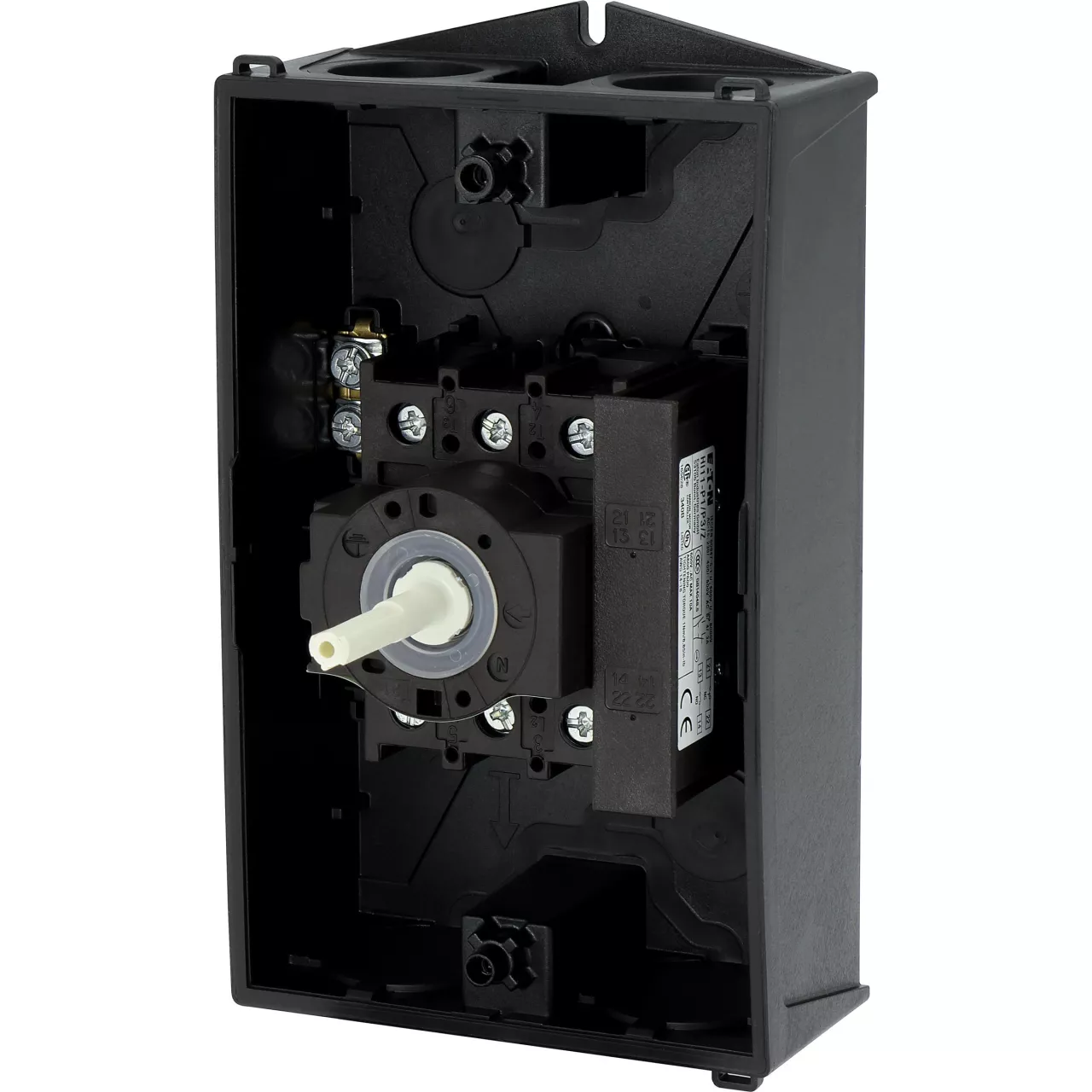P1-32/I2/SVB-SW/HI11 Przełącznik Zał.-Wył., 3 bieg.+1NO+1NC, 32 A, w obudowie IP65, pokrętło czarne z blokadą na kłódkę