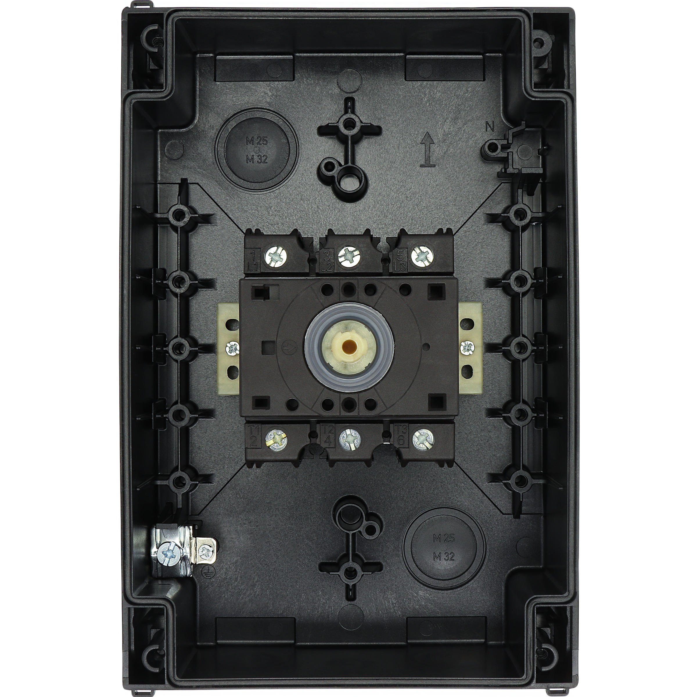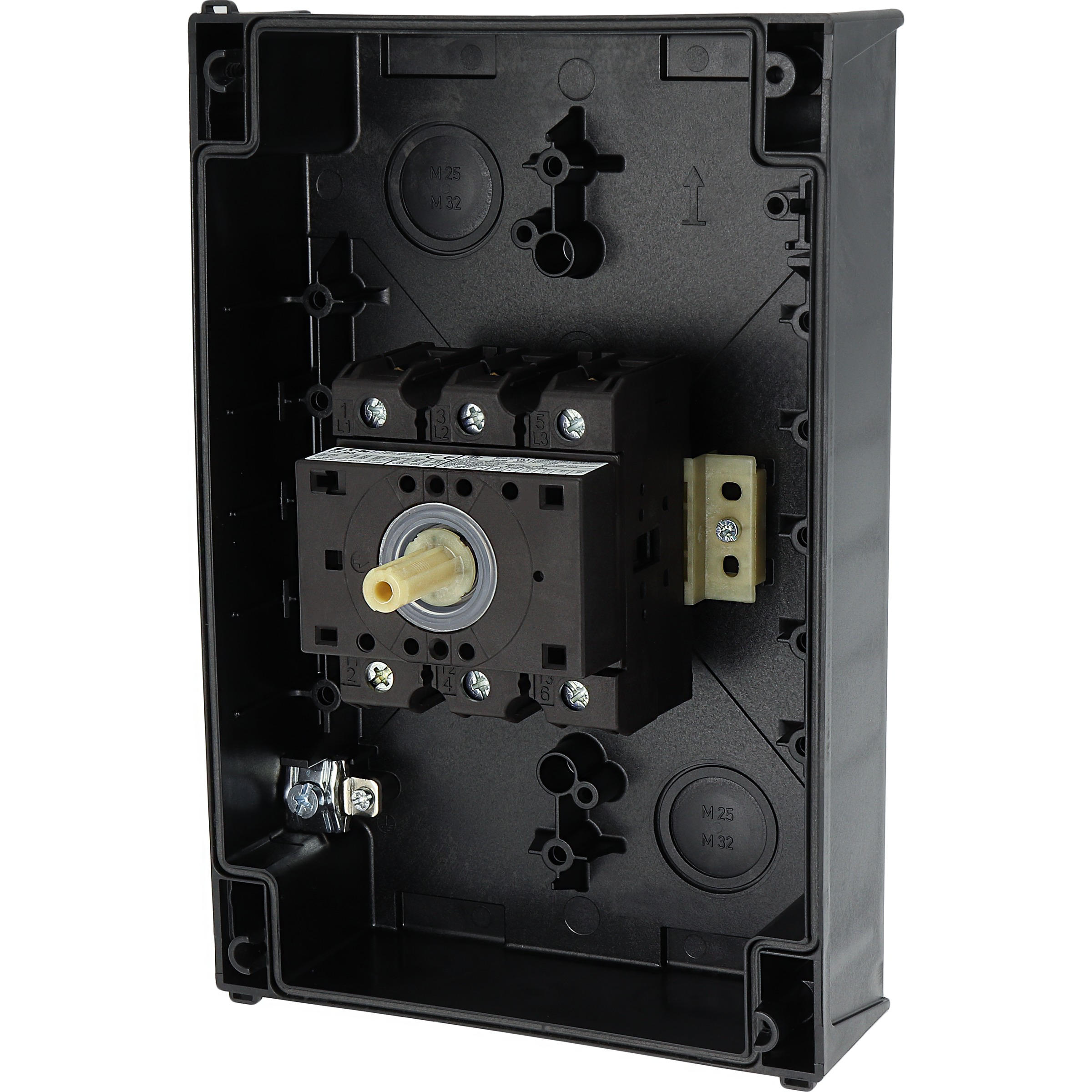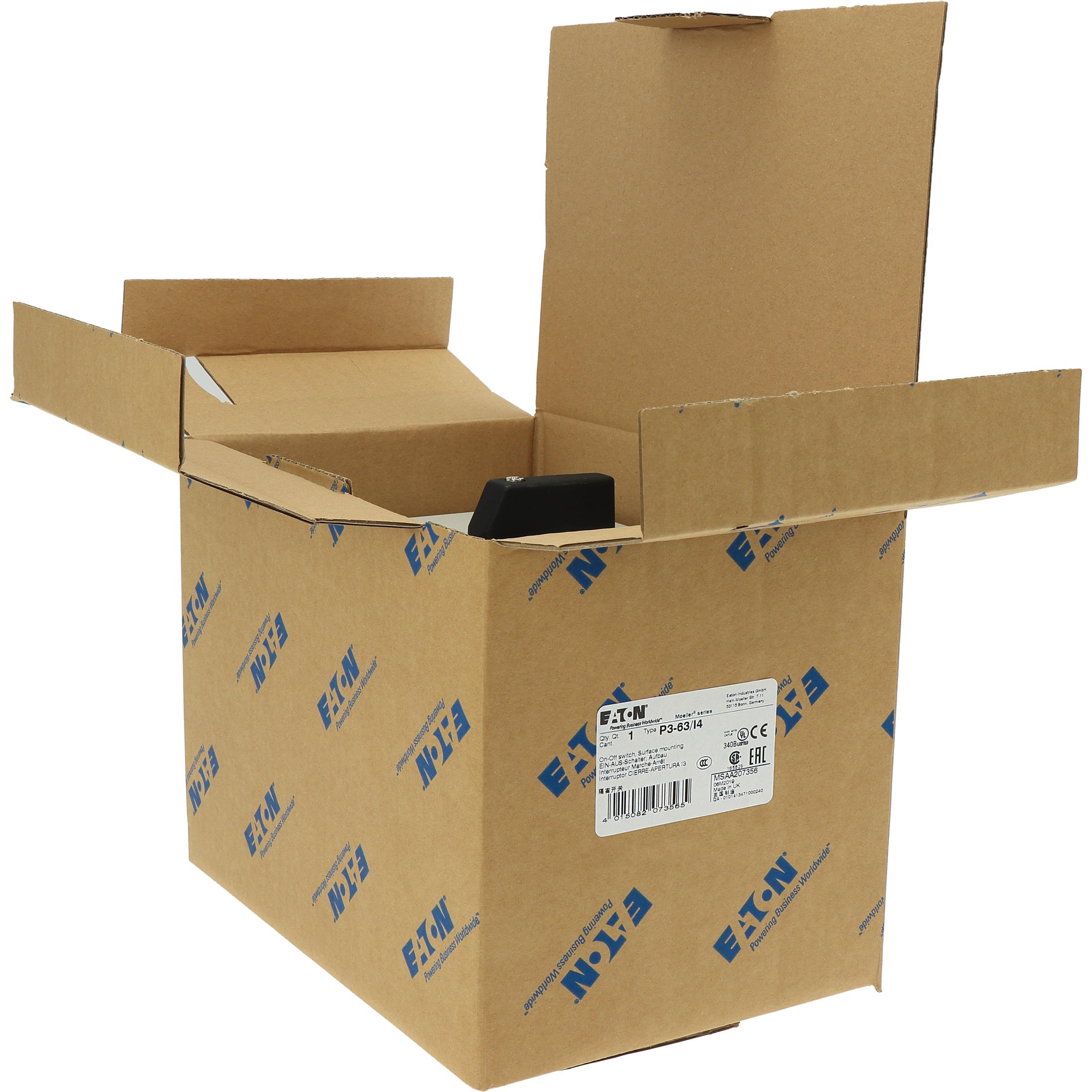 Przełącznik wł.-wył., Zacisk śrubowy: Przełącznik wł.-wył., Odniesienie do grupy części: P3, z czarnym pokrętłem z tabliczką czołową, Informacje dotyczące dostarczonego sprzętu: Styk pomocniczy lub przewód neutralny montowany przez użytkownika., 3-biegunowy, Stopień ochrony: IP65, Projekt: montaż powierzchniowy, Moc znamionowa AC-23A, 50 - 60 Hz 400 V: P = 30 kW, Znamionowy prąd ciągły: Iu = 63 A, Normy: IEC/EN 60947, VDE 0660, IEC/EN 60204, CSA, UL, Rozłącznik izolacyjny zgodnie z normą IEC/EN 60947-3