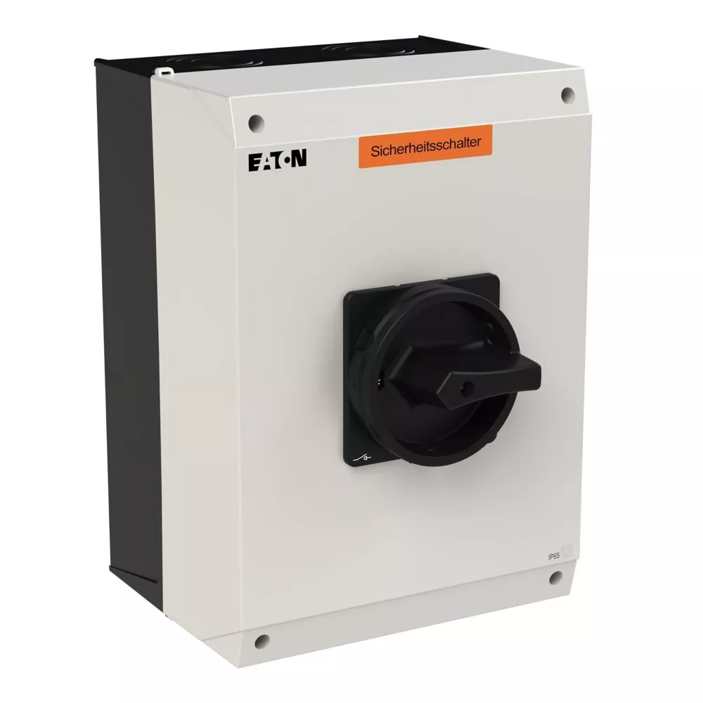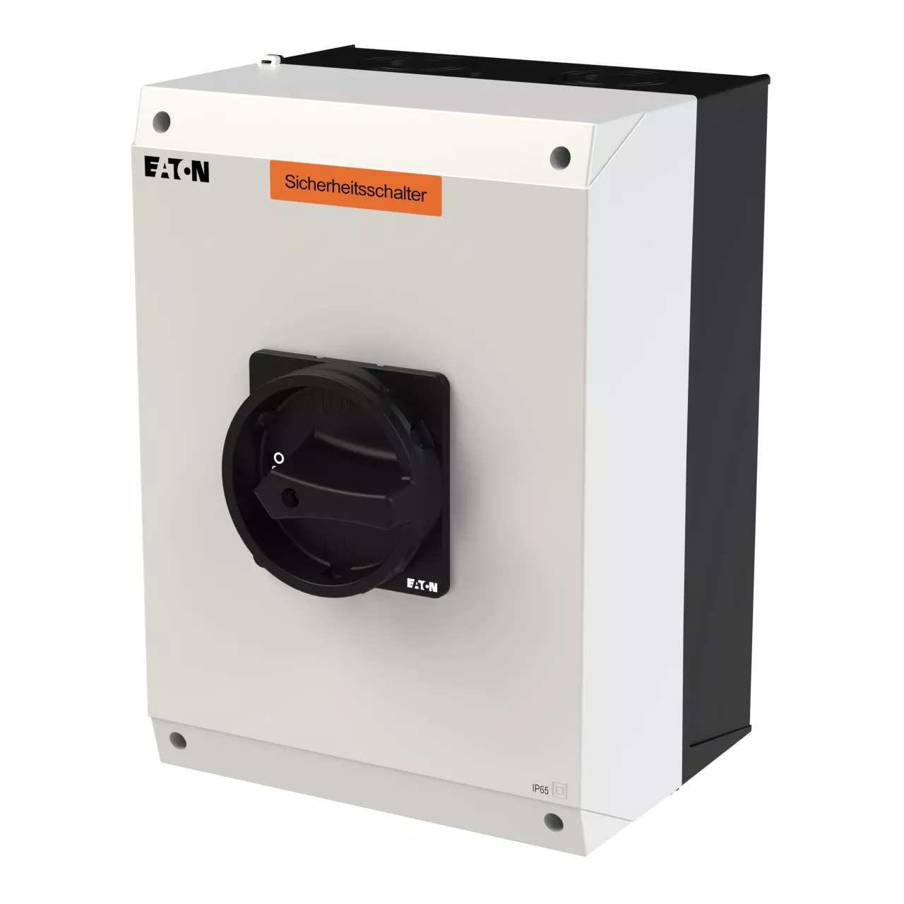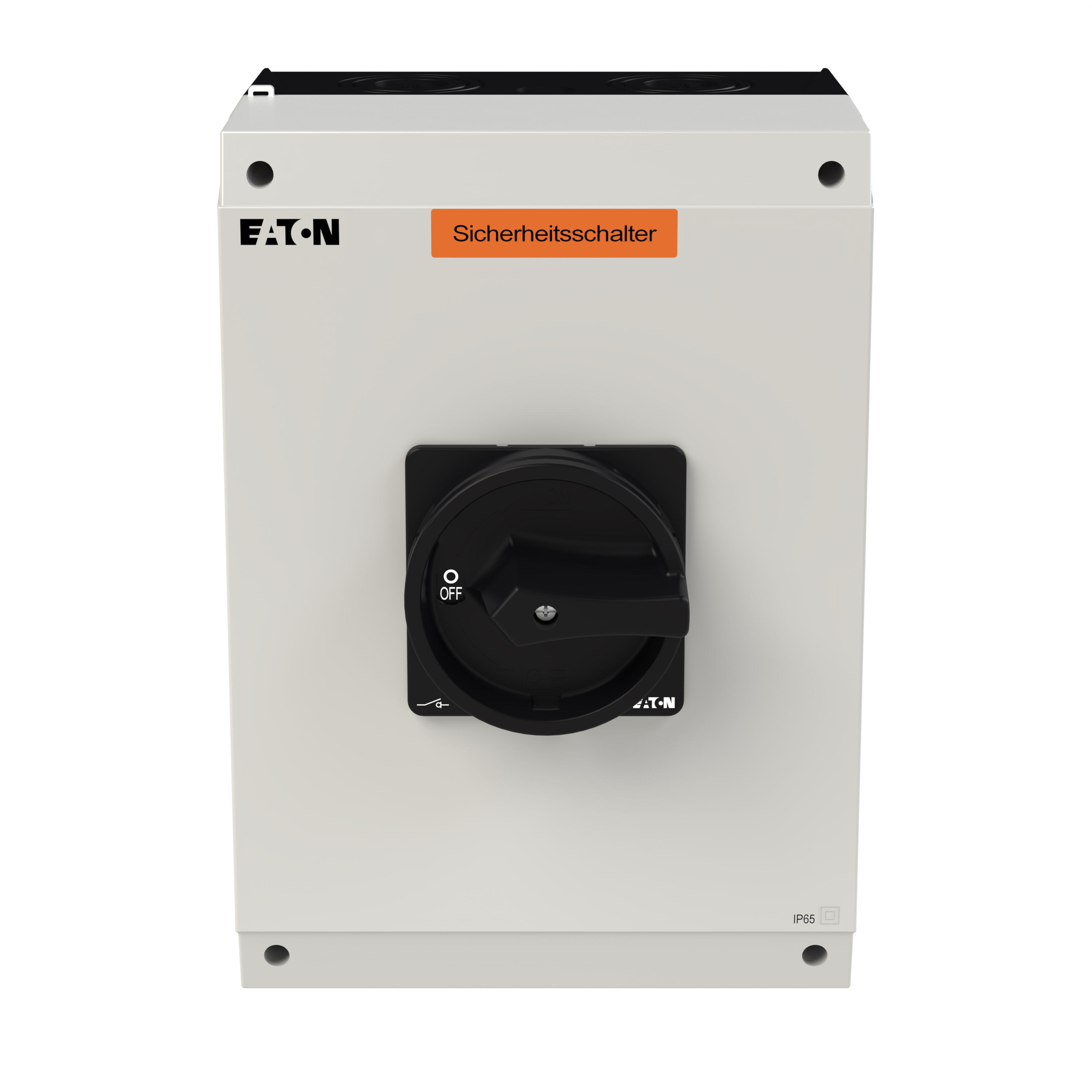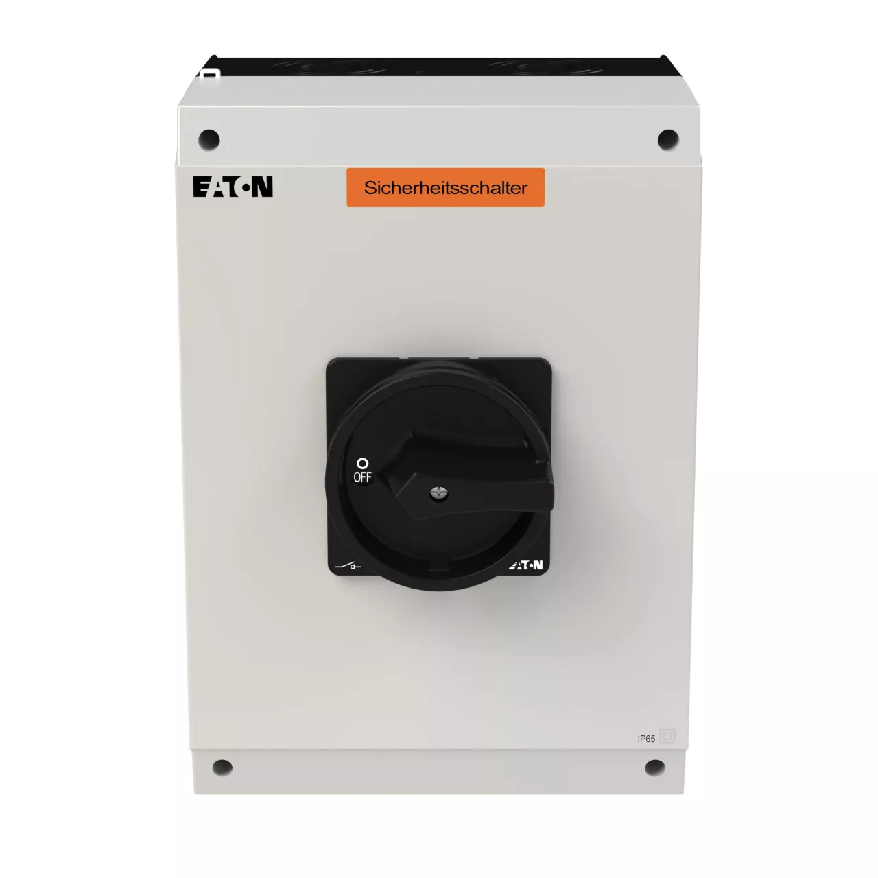P3-100/I5-SI-SW Rozłącznik bezpieczeństwa, 3 bieg., 100 A, funkcja awaryjnego zatrzymania, Blok. w pozycji 0 z osłoną blokady, z tabliczką ostrzegawczą "rozłącznik bezpieczeństwa", w obudowie IP65, pokrętło czarne z blokadą na kłódkę