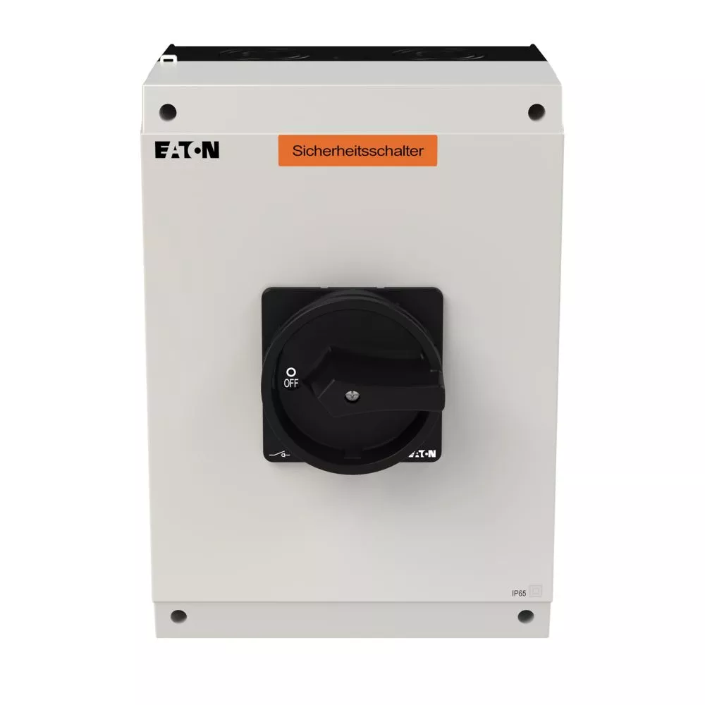 P3-100/I5-SI/N-SW Rozłącznik bezpieczeństwa, 3 bieg.+N, 100 A, funkcja awaryjnego zatrzymania, Blok. w pozycji 0 z osłoną blokady, z tabliczką ostrzegawczą "rozłącznik bezpieczeństwa", w obudowie IP65, pokrętło czarne z blokadą na kłódkę