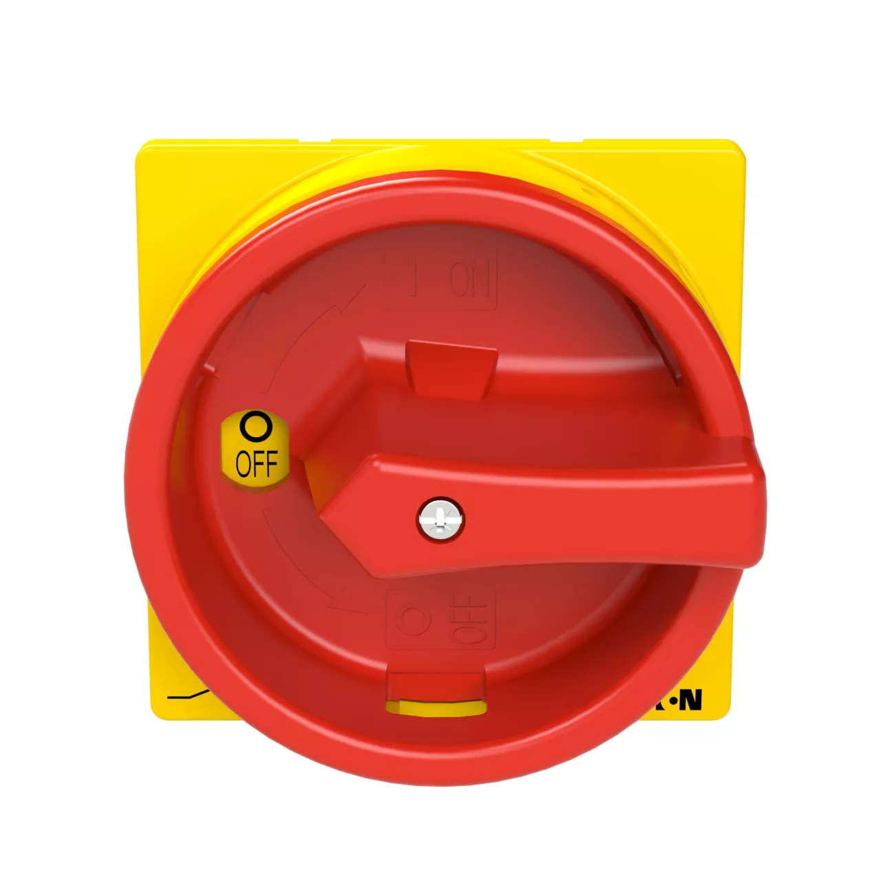 T0-2-8900/EA/SVB Przełącznik Zał.-Wył., 3 bieg. + N, 20 A, 90 °, montaż natablicowy, pokrętło czerwono-żółte z blokadą na kłódkę
