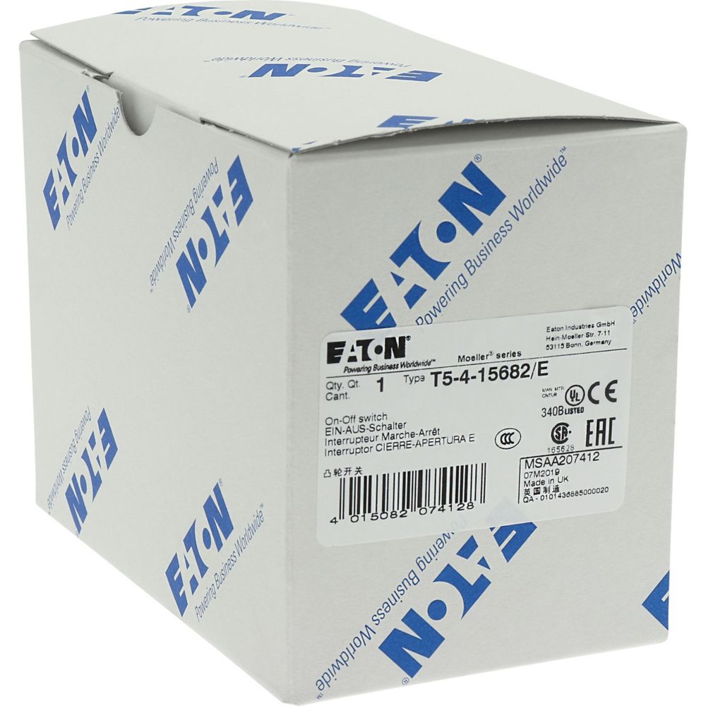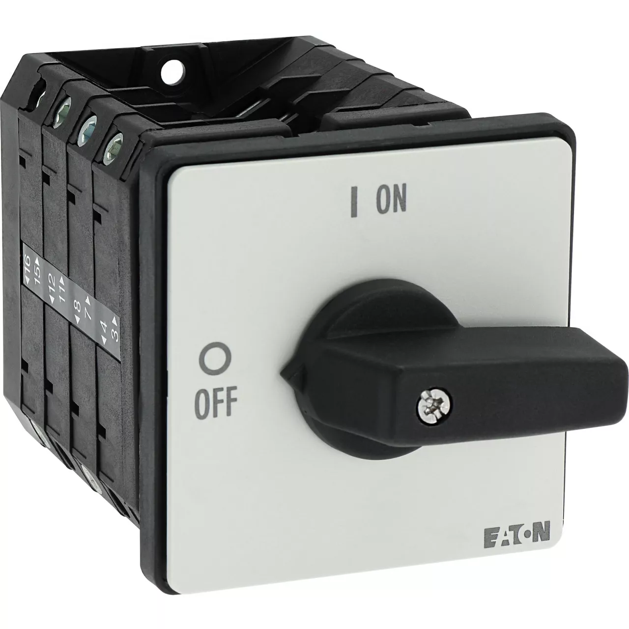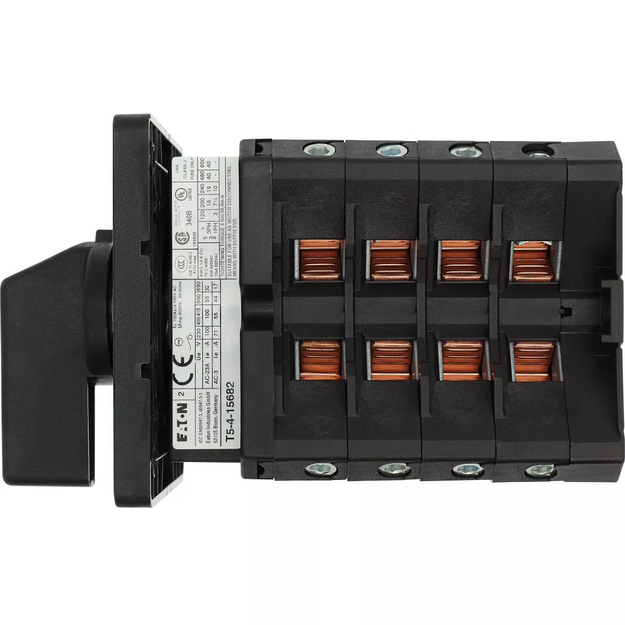 T5-4-15682/E Przełącznik Zał.-Wył., 6 bieg. + 1 NO + 1 NC, 100 A, 90 °, montaż natablicowy, pokrętło czarne bez możliwości blokady
