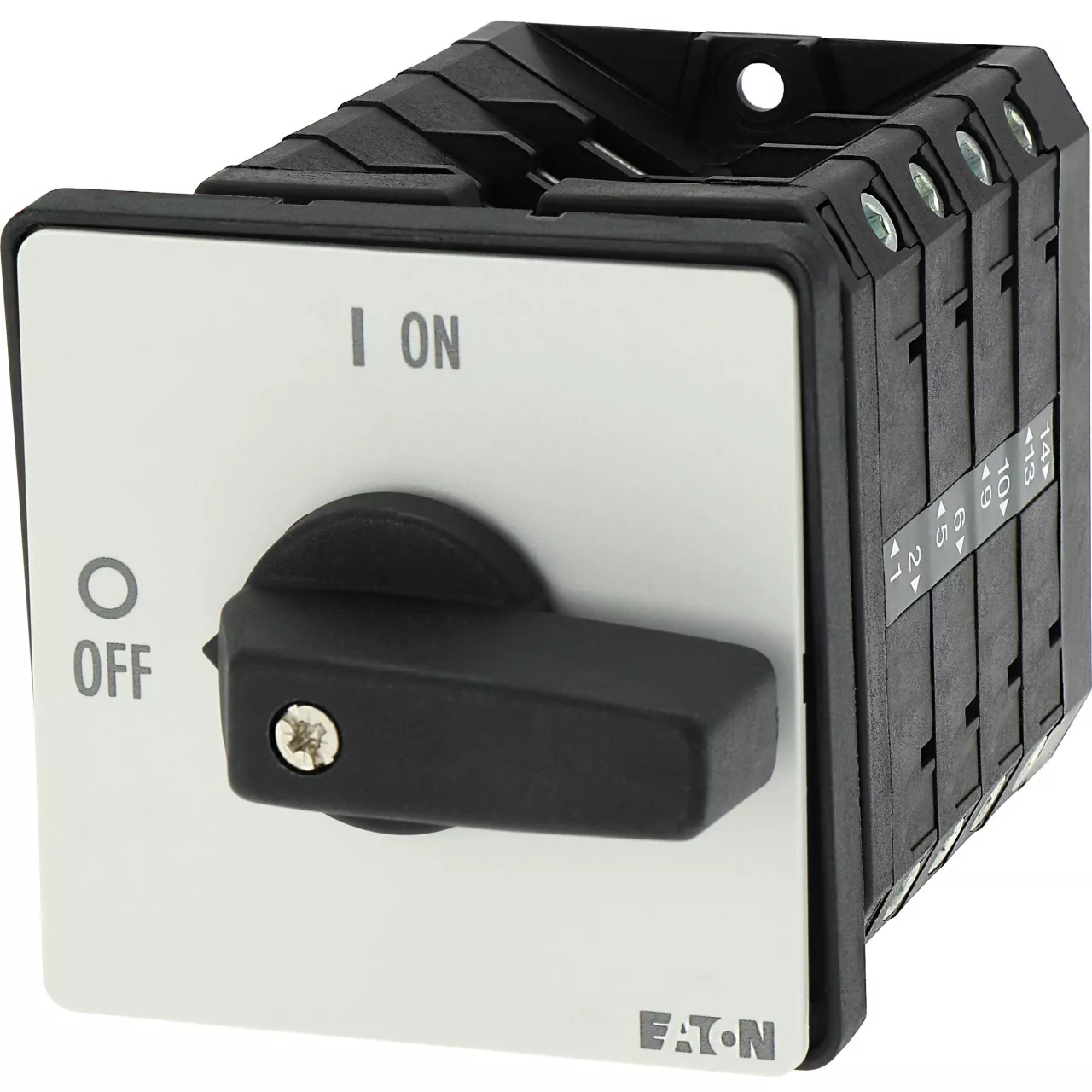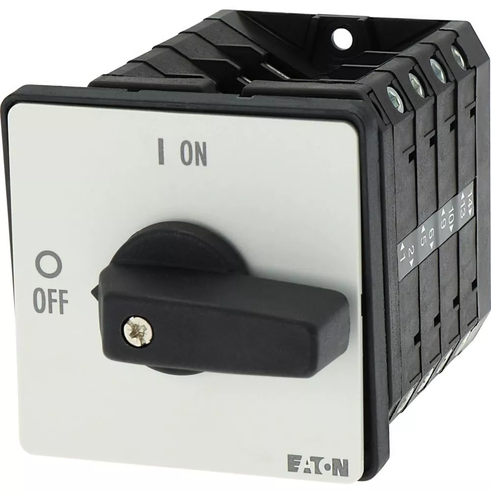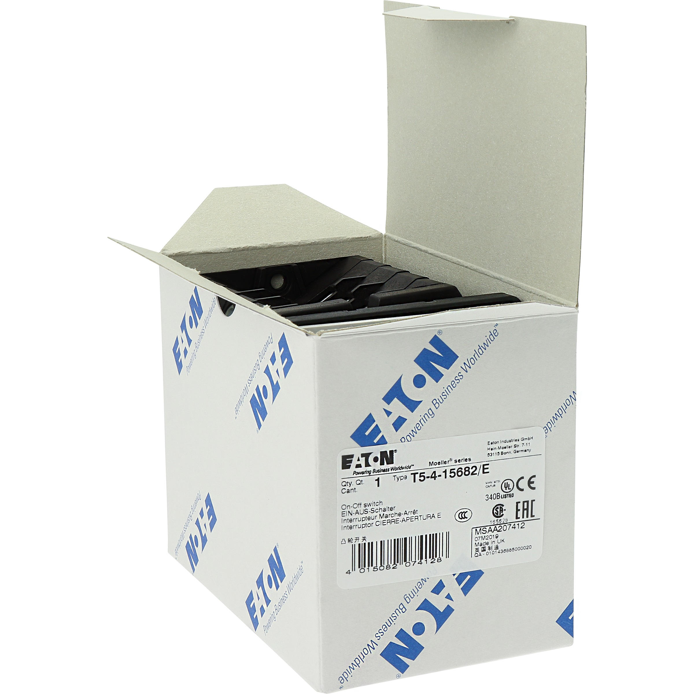 T5-4-15682/E Przełącznik Zał.-Wył., 6 bieg. + 1 NO + 1 NC, 100 A, 90 °, montaż natablicowy, pokrętło czarne bez możliwości blokady