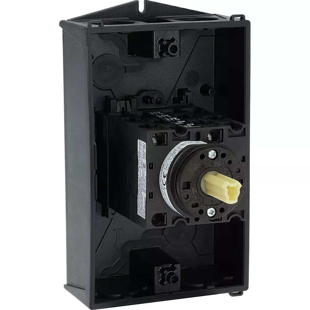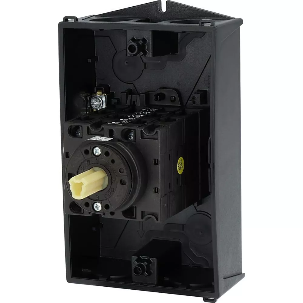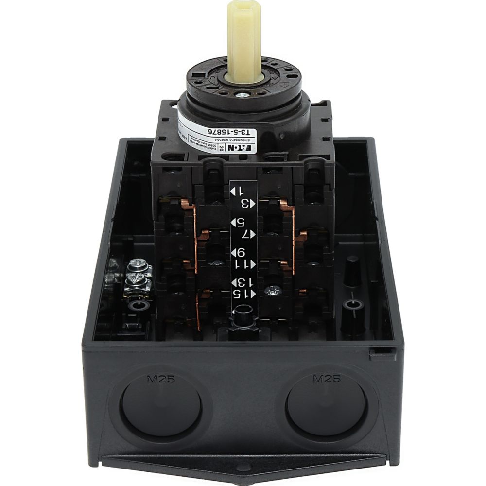 T3-5-15876/I2 Przełącznik nawrotny gwiazda-trójkąt, Styki: 10, 32 A, tabliczka: D-Y-0-Y-D, 60 °, bez samopowrotu, w obudowie IP65, pokrętło czarne bez możliwości blokady