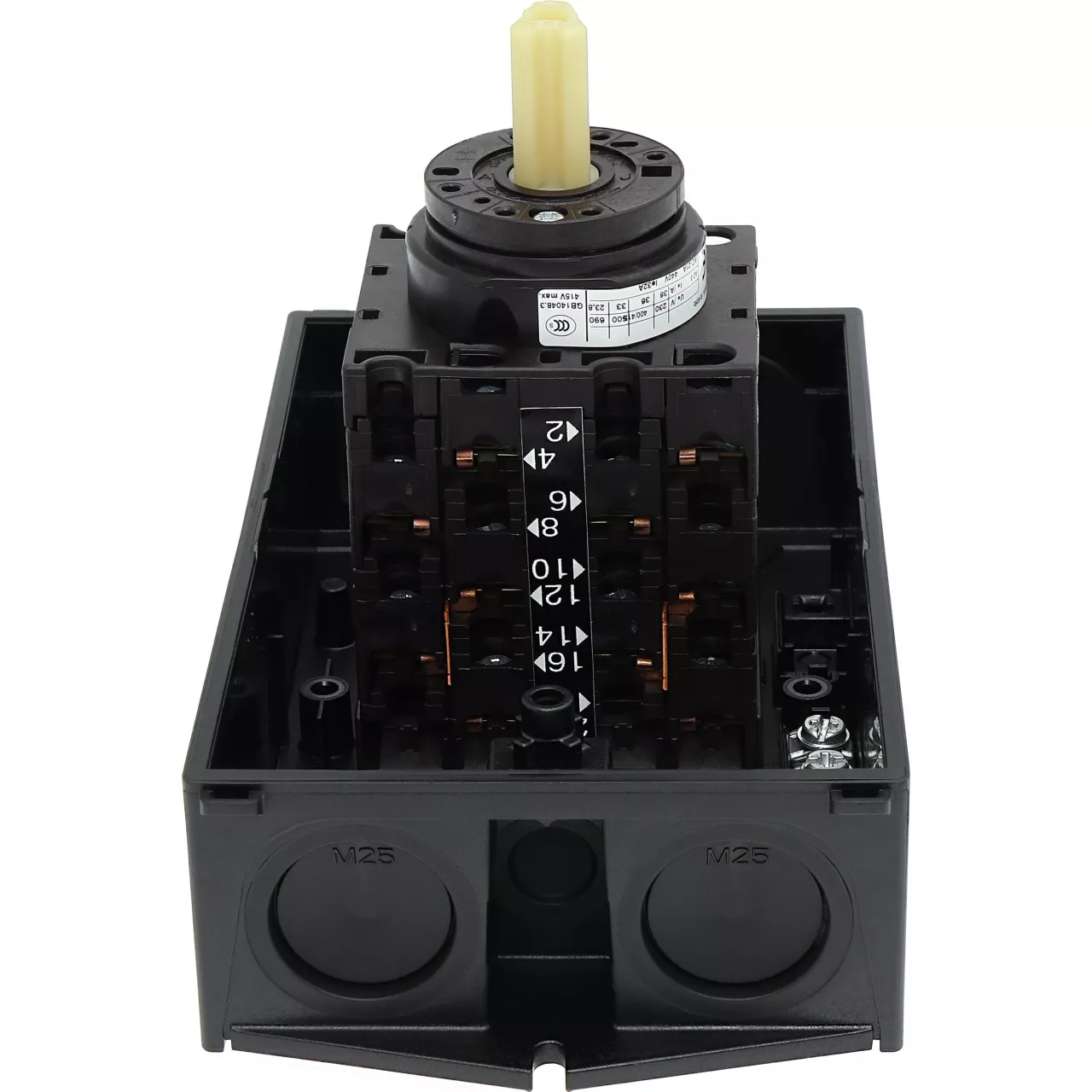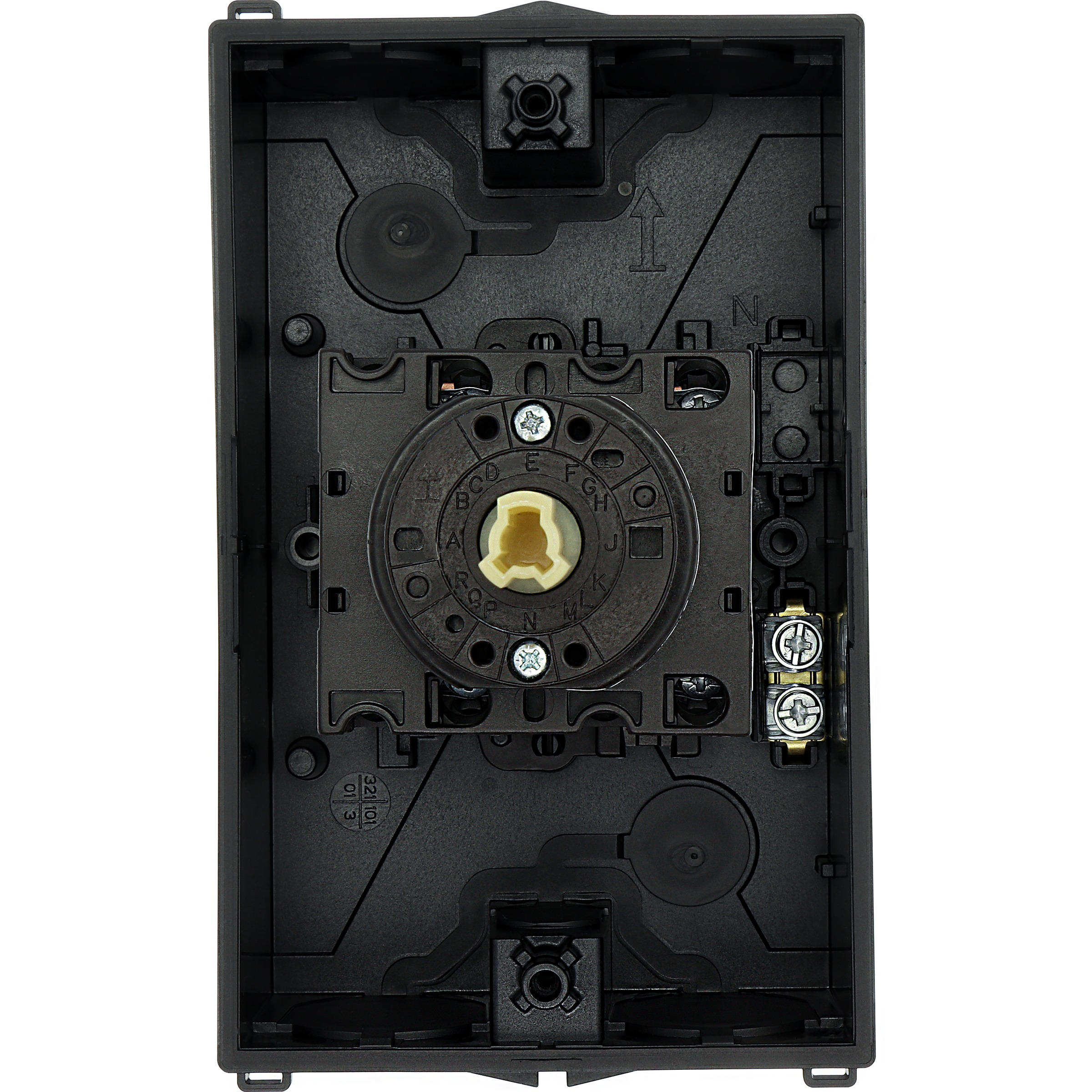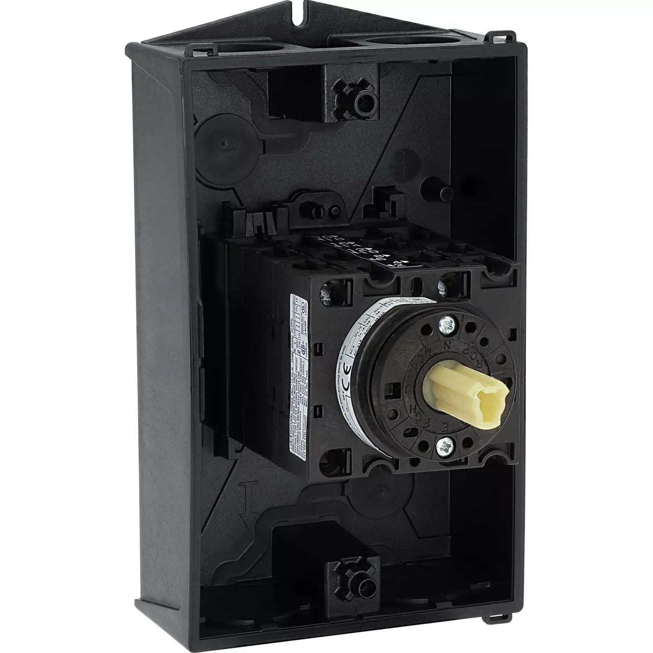 T3-5-15876/I2 Przełącznik nawrotny gwiazda-trójkąt, Styki: 10, 32 A, tabliczka: D-Y-0-Y-D, 60 °, bez samopowrotu, w obudowie IP65, pokrętło czarne bez możliwości blokady