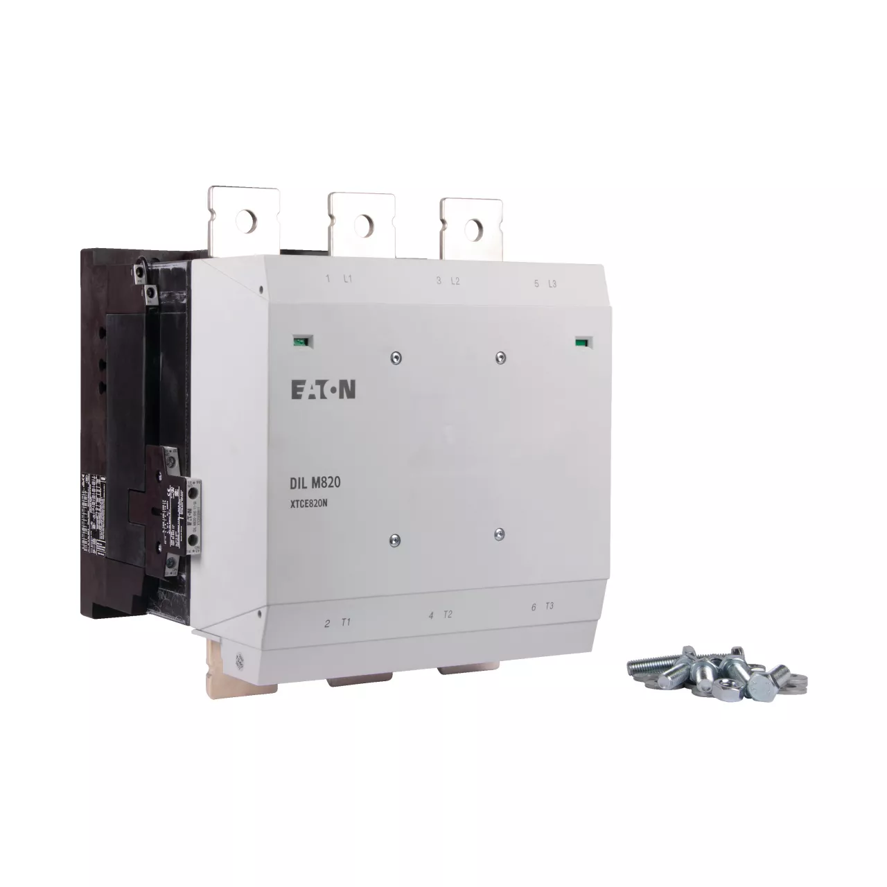 Magneetschakelaar, Toepassing: Magneetschakelaars voor motoren, Comfortapparaten van meer dan 170 A, Gebruikscategorie: AC-1: niet-inductieve of licht inductieve belastingen, weerstand ovens, NAC-3: Normale AC-inductiemotoren: starten, uitschakelen tijdens bedrijf, AC-4: Normale AC-inductiemotoren: starten, insteken, omkeren, tippen, Aansluittechniek: Schroefaansluiting, Nominale bedrijfsstroom AC-3 380 V 400 V: Ie= 820 A, Nominale bedrijfsstroom AC-1 Conventionele thermische stroom in vrije lucht, 3-polig, 50 - 60 Hz Open bij 40 °C: Ith =Ie= 1225 A, Nominale bedrijfsstroom AC-1 Conventionele thermische stroom in vrije lucht, 1-polig open: Ith = 2500 A
