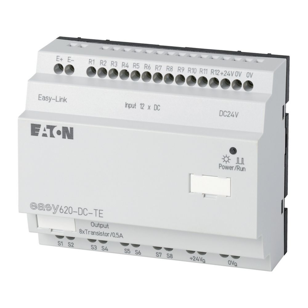 Rozszerzenie wejścia/wyjścia, Znamionowe napięcie robocze 24 V DC, 12 wejść cyfrowych 24 V DC, 8 wyjść tranzystorowych 24 V DC, możliwość używania za pomocą easyLink z easy700, easy800, MFD-CP8/CP10, EC4P, EC4E, ES4P