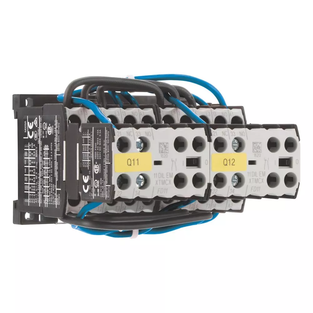 Kombinacja styczników nawrotnych, Zastosowanie: Kombinacje styczników do silników rozruchowych z dwoma kierunkami obrotów, Akcesoria: Rozruszniki nawrotne DIUL, Kategoria użytkowa: NAC-3: Standardowe silniki indukcyjne AC: rozruch, wyłączanie w trakcie pracy, AC-4: Standardowe silniki indukcyjne AC: rozruch, wtykanie, odwracanie, praca spowolniona, Znamionowy prąd roboczy AC-3, 380 V 400 V: Ie= 9 A, Maks. moc znamionowa dla trójfazowych silników, 50 - 60 Hz AC-3 220 V 230 V: P= 2,2 kW, 380 V 400 V: P= 4 kW, 660 V 690 V: P = 4 kW, Napięcie sterujące: 24 V DC, Napięcie AC/DC: Praca DC, Uwagi: Odpowiednie również dla silników o klasie sprawności IE3.