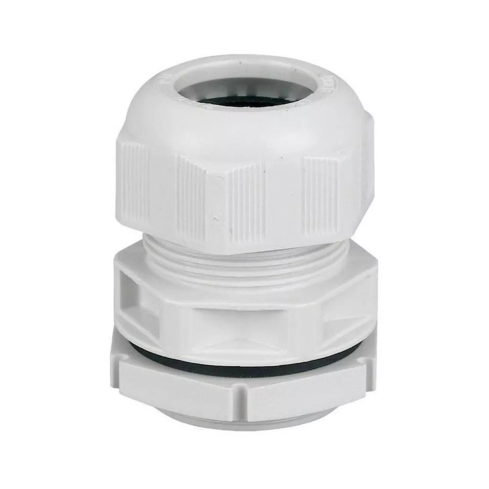 Dławik kablowy, przepust kablowy = M63, wymiary wytłoczenia = 63,5 mm, użytkowy NYM/NYY, 4-żyłowy = NYM 4 x 35 mm², stopień ochrony IP68 do 5 szyn (30 min), poliamid, bezhalogenowy, RAL 7035, z nakrętką łożyskową i wbudowanym odciążeniem, klasa palności V2 zgodnie z UL94