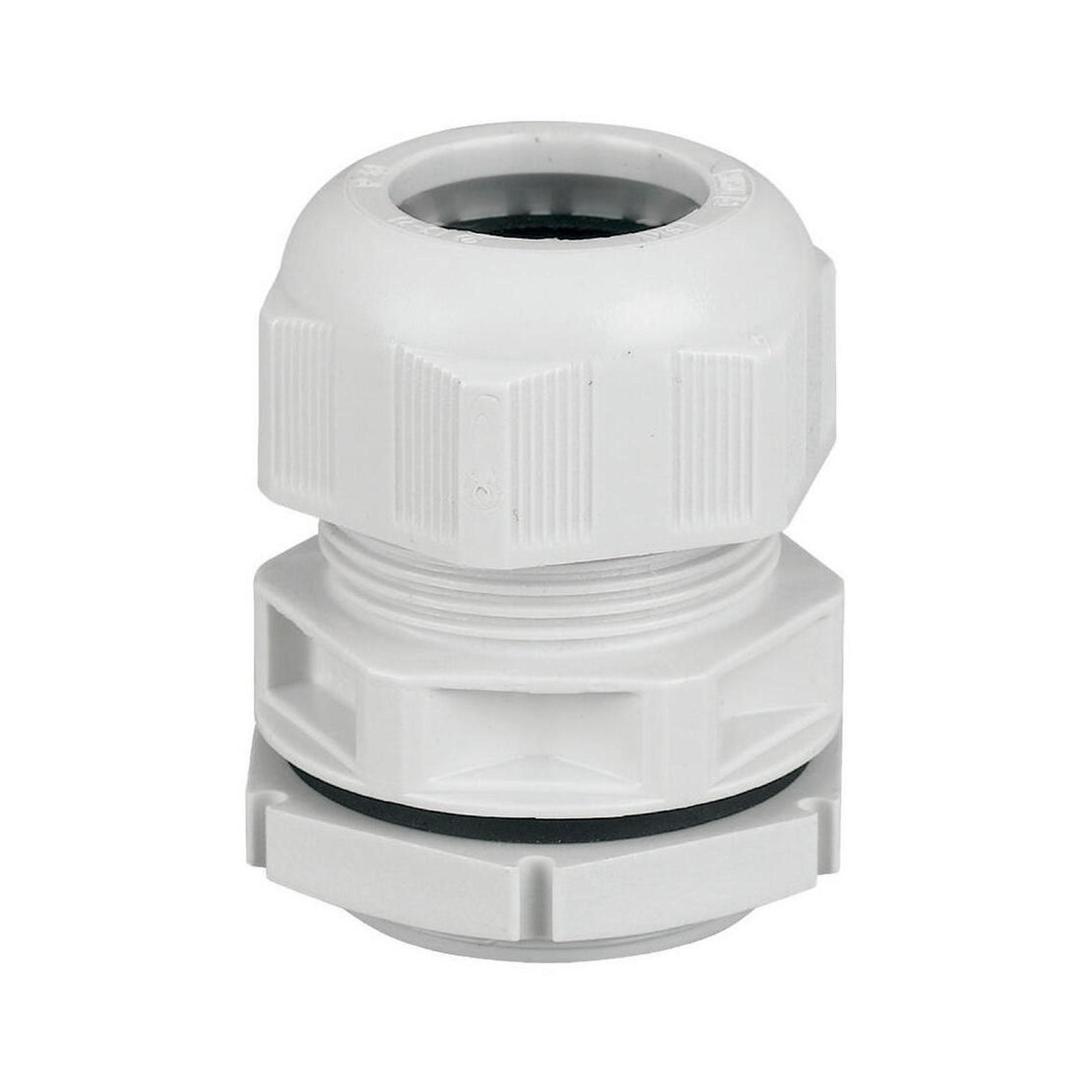 Dławik kablowy, przepust kablowy = M12, wymiary wiercenia = 12,5 mm, użytkowy NYM/NYY, 4-żyłowy=H03VV-F3x0,75, NYM 1x2,5mm² , stopień ochrony IP68 do 5 szyn (30 min), poliamid, bezhalogenowy, RAL 7035, z nakrętką zabezpieczającą i wbudowanym odciążeniem, klasa palności V2 zgodnie z UL94