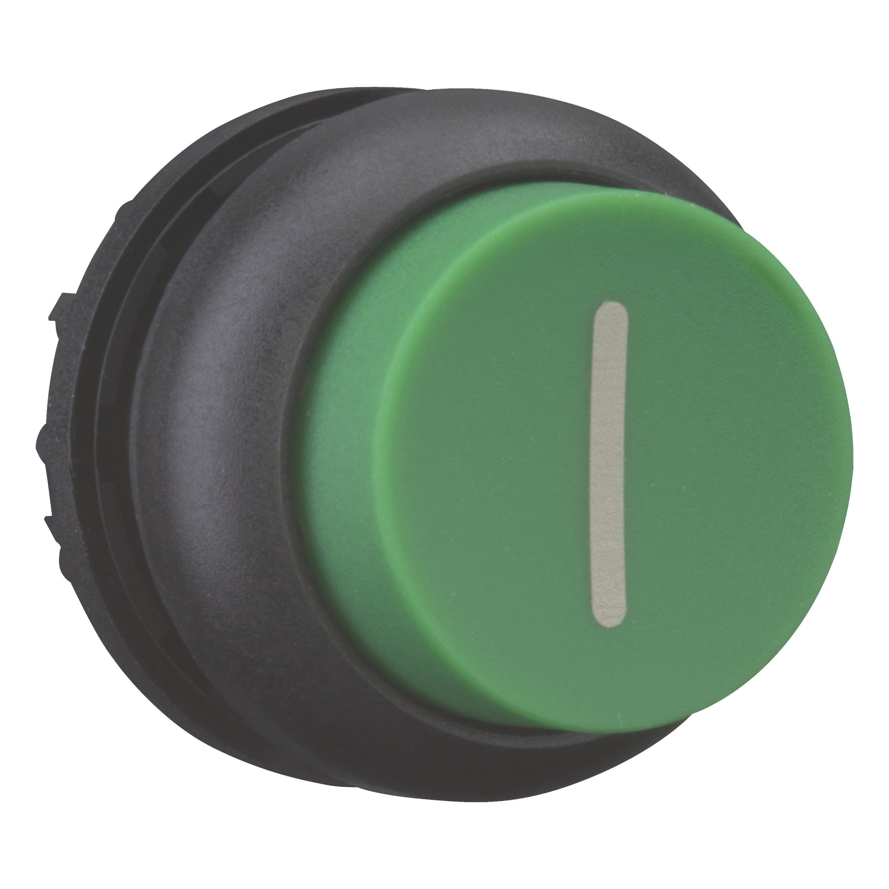 Przycisk, Zacisk śrubowy: RMQ-Titan, Urządzenie pojedyncze, Projekt: Wystające, bez samopowrotu, wkładka przycisku: zielony, Wkładka przycisku podpisana, Stopień ochrony: IP66, IP67, IP69K, Pierścień czołowy: czarny, Podłączanie do SmartWire-DT: tak, z przyłączami SWD-RMQ, Wymiary przedniej części: 22 x 22, Instrukcje: Funkcję zatrzymania / powracania przycisku można zmienić na urządzeniu, Normy: IEC/EN 60947, VDE 0660