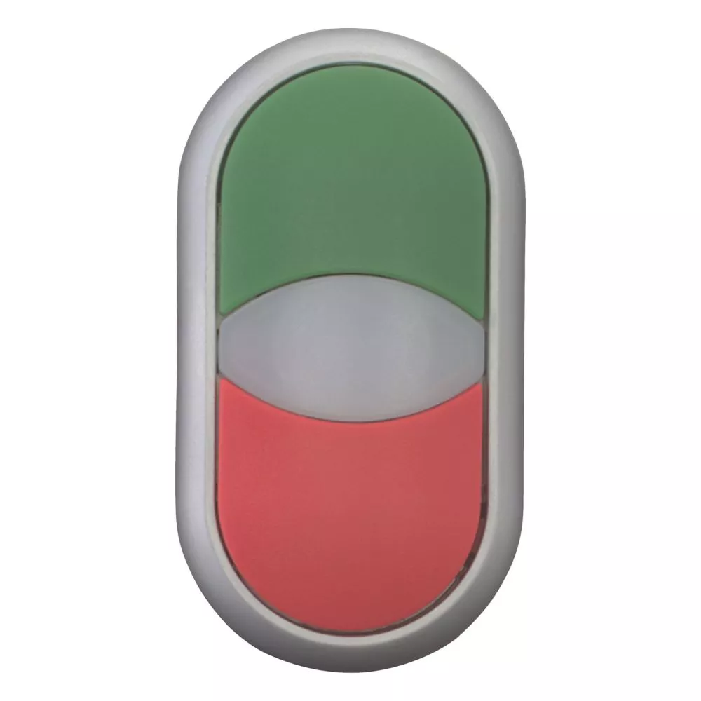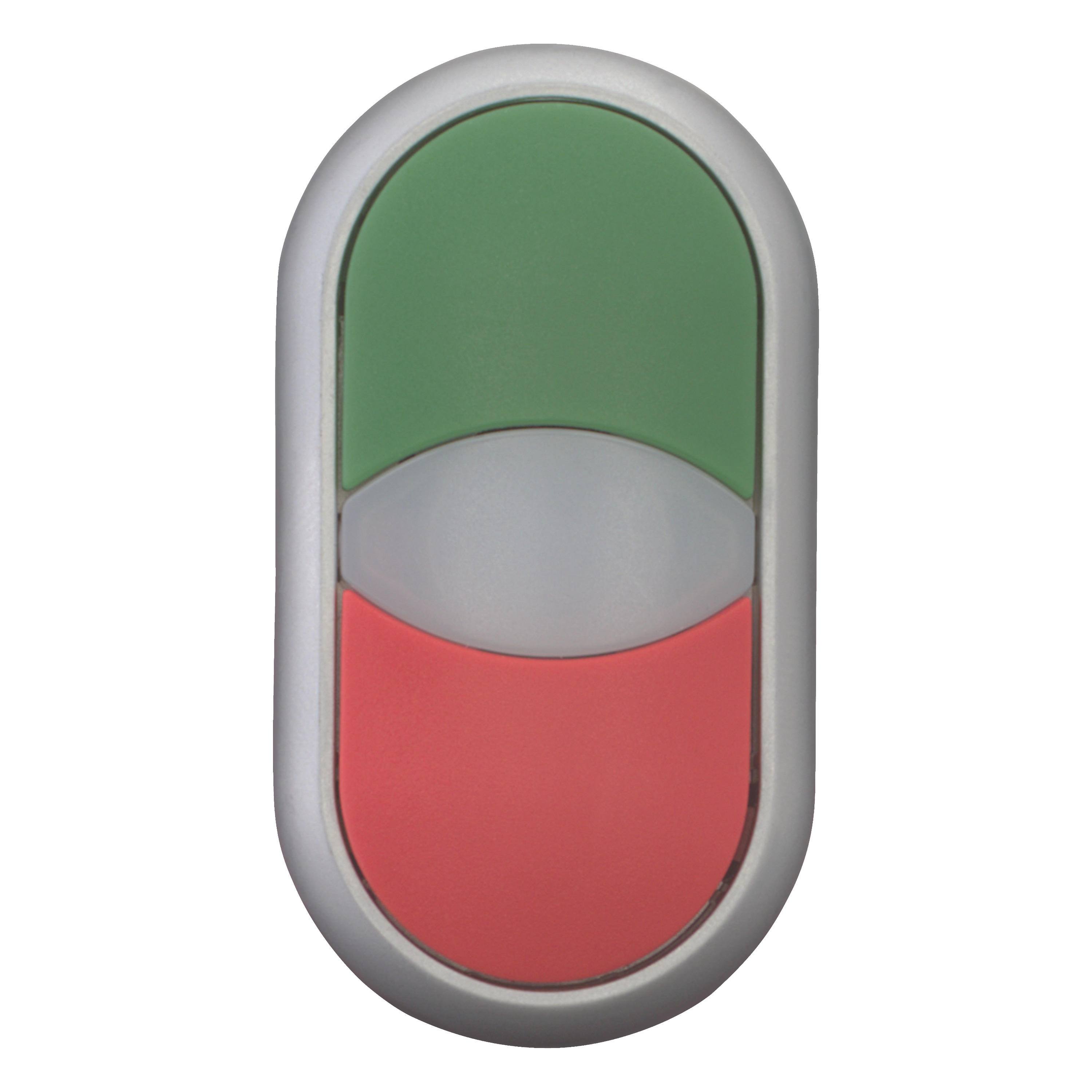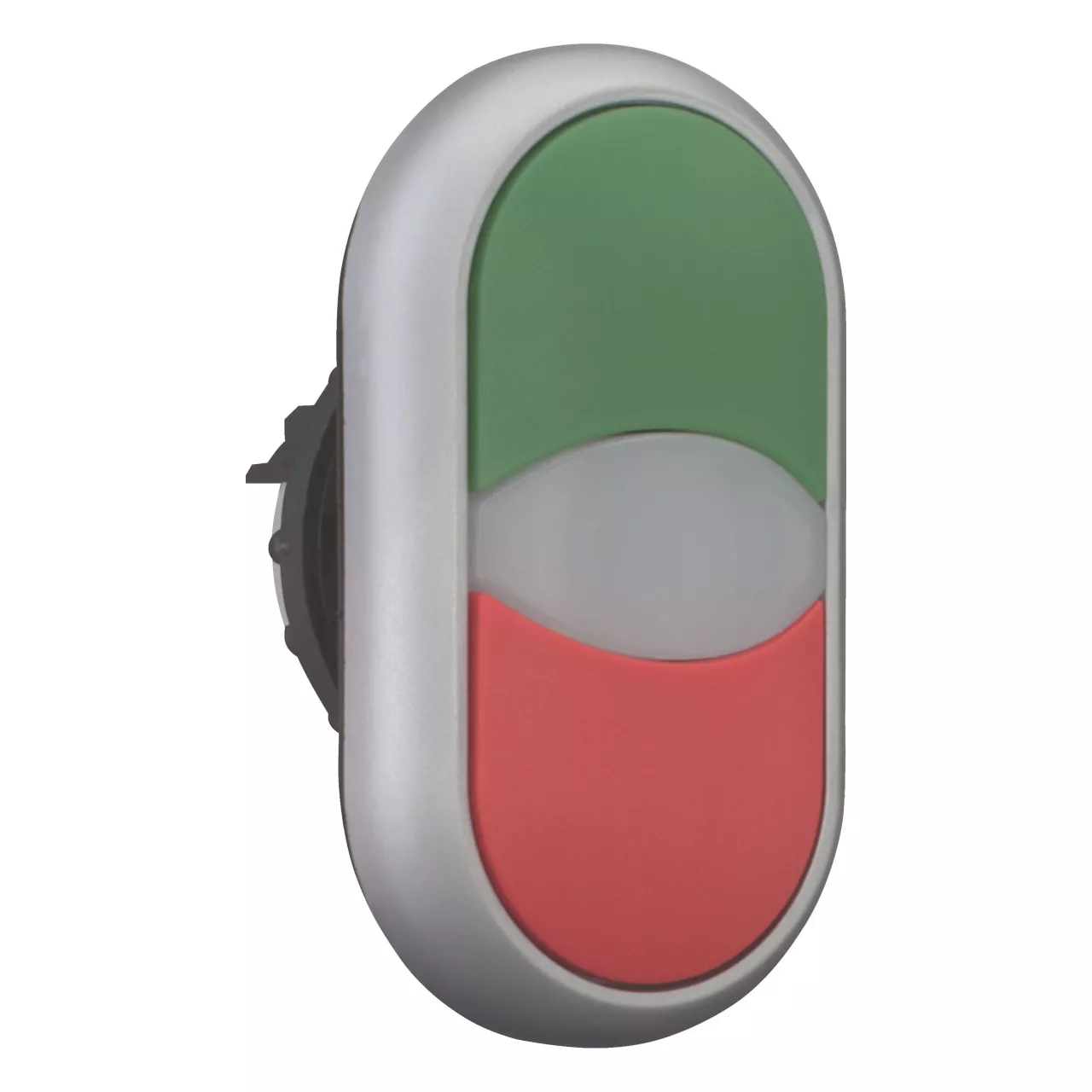 Przycisk podwójny, Zacisk śrubowy: RMQ-Titan, Urządzenie pojedyncze, Projekt: Elementy uruchamiające i lampki sygnalizacyjne niezlicowane, z samopowrotem, Opis: Biała soczewka, wkładka przycisku: zielony, czerwony, Wkładka przycisku Pusta, Stopień ochrony: IP66, Pierścień czołowy: tytan, Podłączanie do SmartWire-DT: tak, z przyłączami SWD-RMQ, Wymiary przedniej części: 29,7 x 54,7, Normy: IEC/EN 60947, VDE 0660
